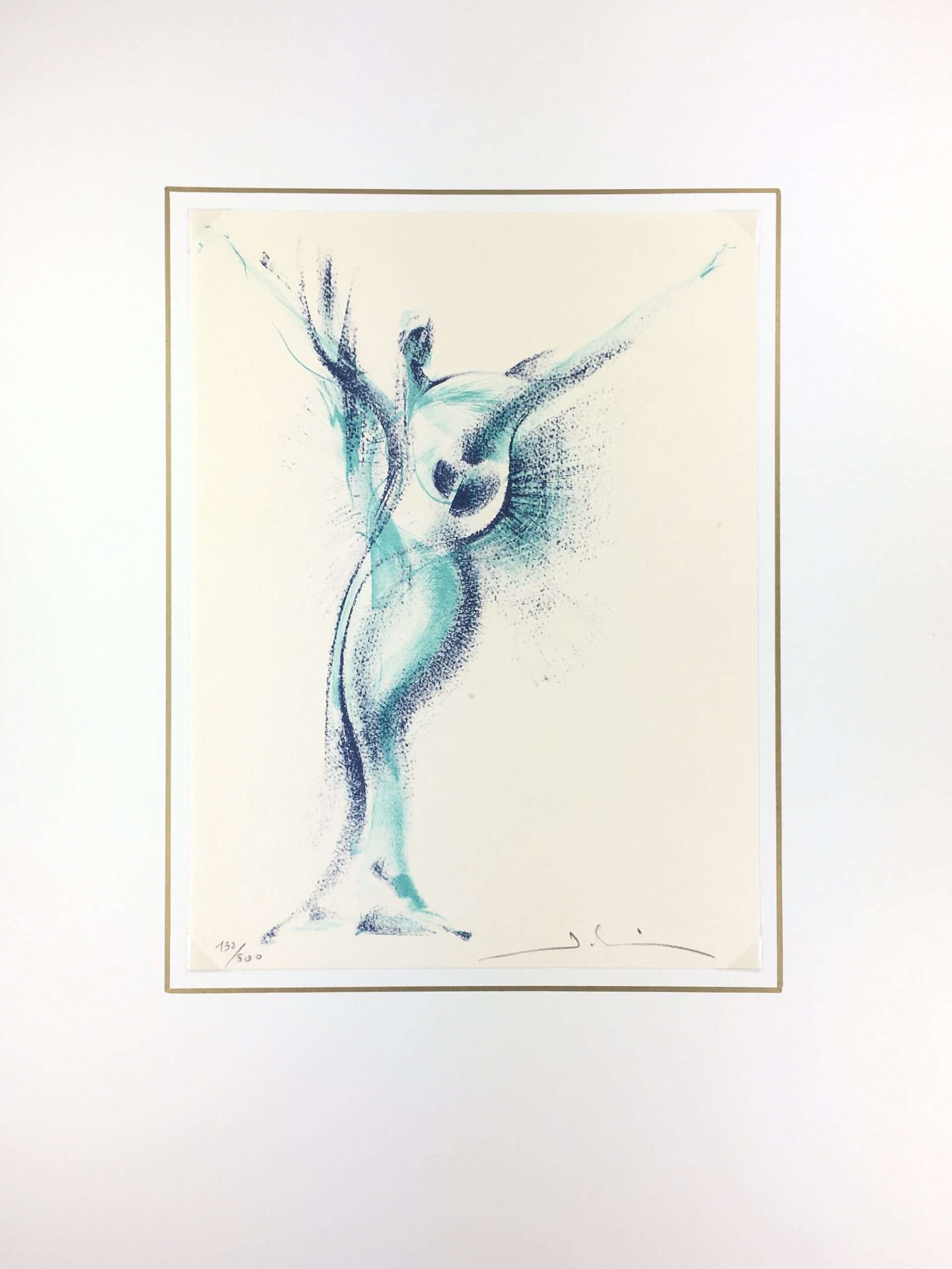 Original Art on paper displayed on a white mat with a gold border. Mat fits a standard-size frame. Archival plastic sleeve and Certificate of Authenticity included. Original Art, 10.5″W x 14″H; mat, 18″W x 24″H.