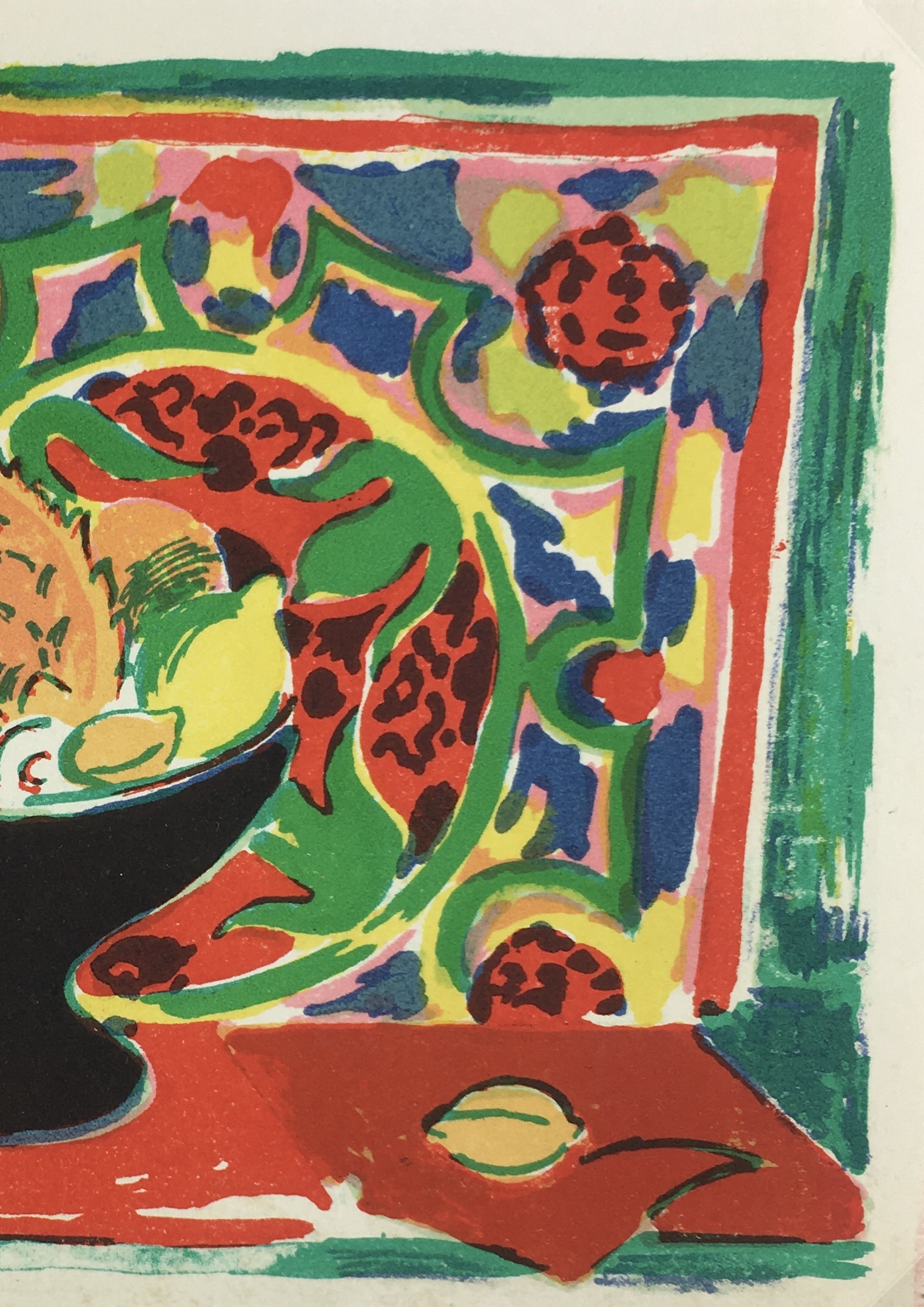 Original Art on paper displayed on a white mat with a gold border. Mat fits a standard-size frame. Archival plastic sleeve and Certificate of Authenticity included. Original Art, 8″W x 6.25″H; mat, 16″W x 20″H.