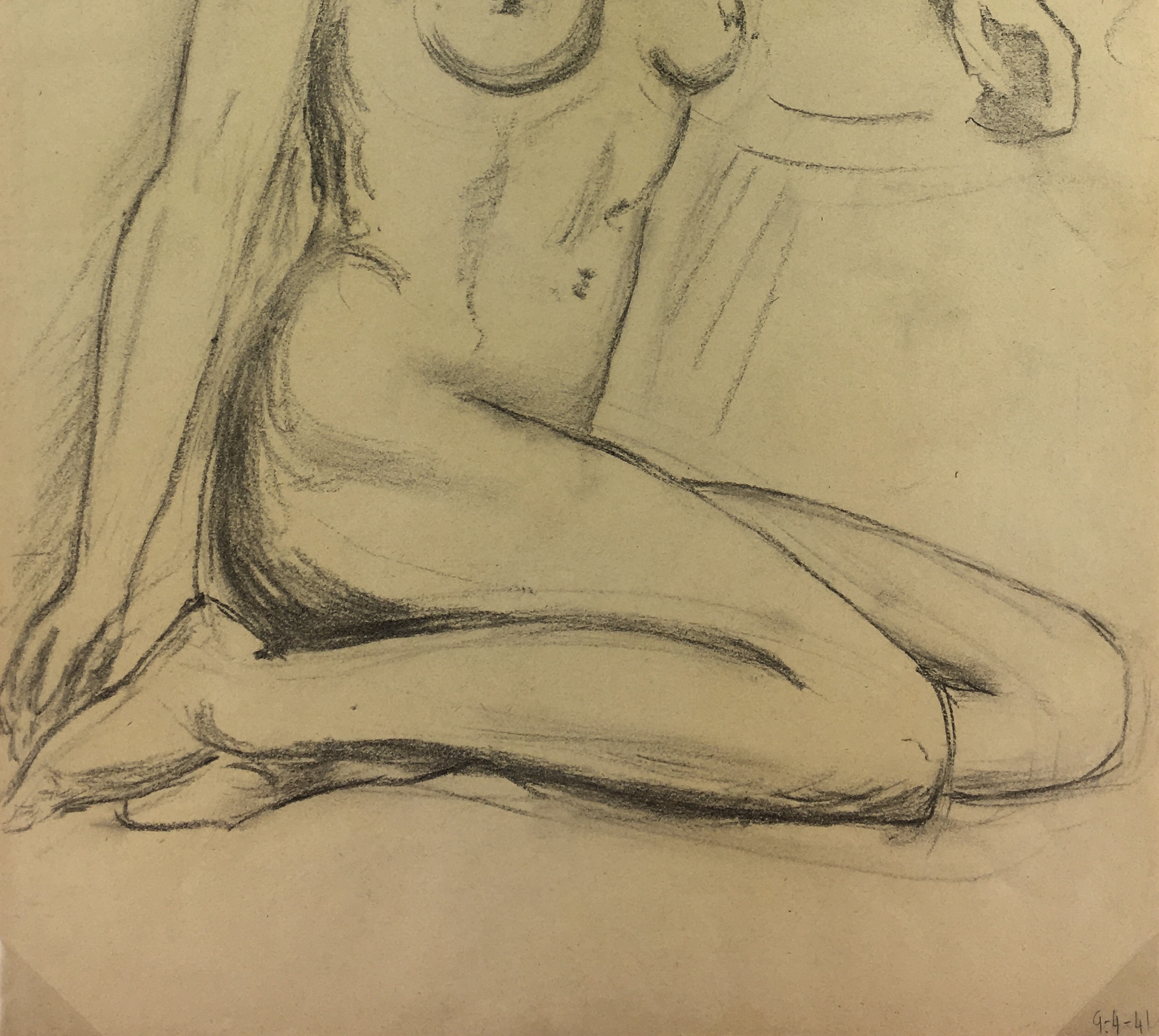 Original Art on paper displayed on a white mat with a gold border. Mat fits a standard-size frame. Archival plastic sleeve and Certificate of Authenticity included. Original Art, 12″W x 18″H; mat, 18″W x 24″H.