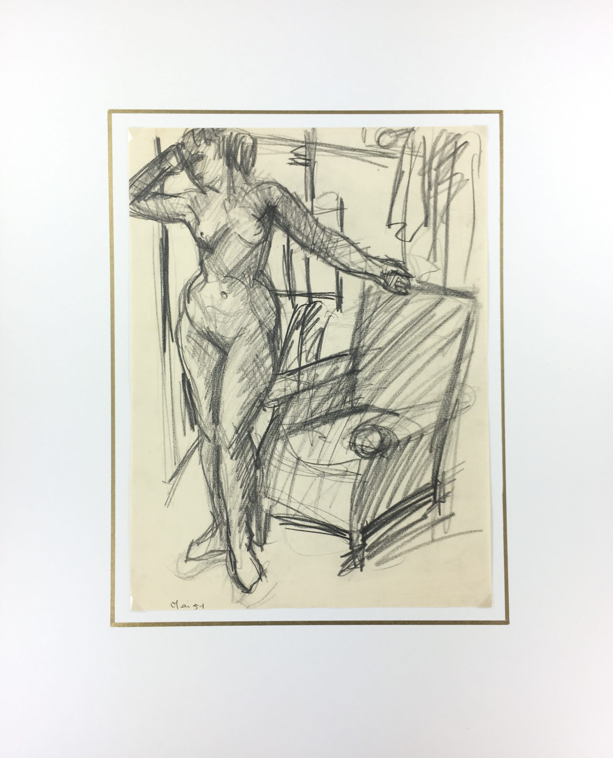 Original Art on paper displayed on a white mat with a gold border. Mat fits a standard-size frame. Archival plastic sleeve and Certificate of Authenticity included. Original Art, 9″W x 12.5″H; mat, 16″W x 20″H.