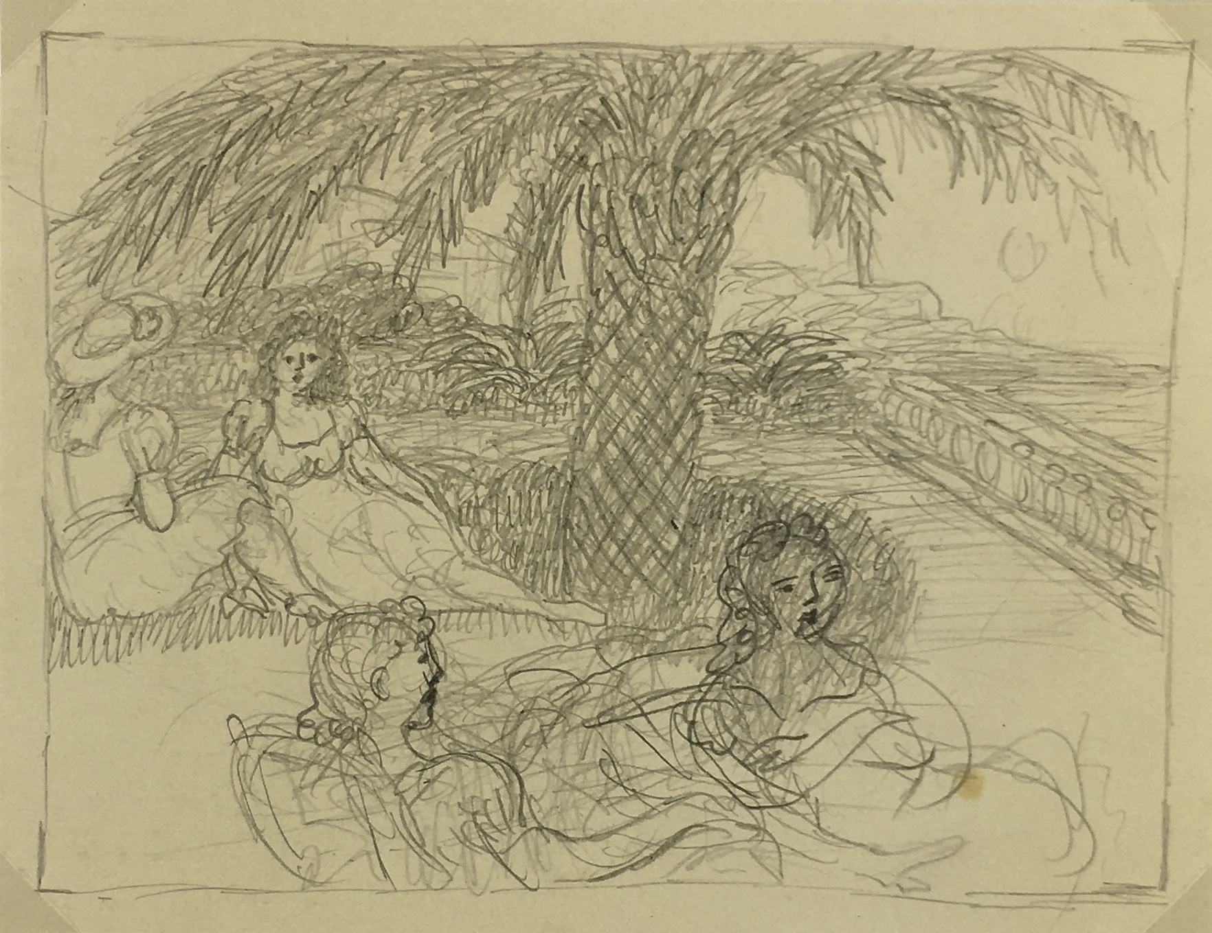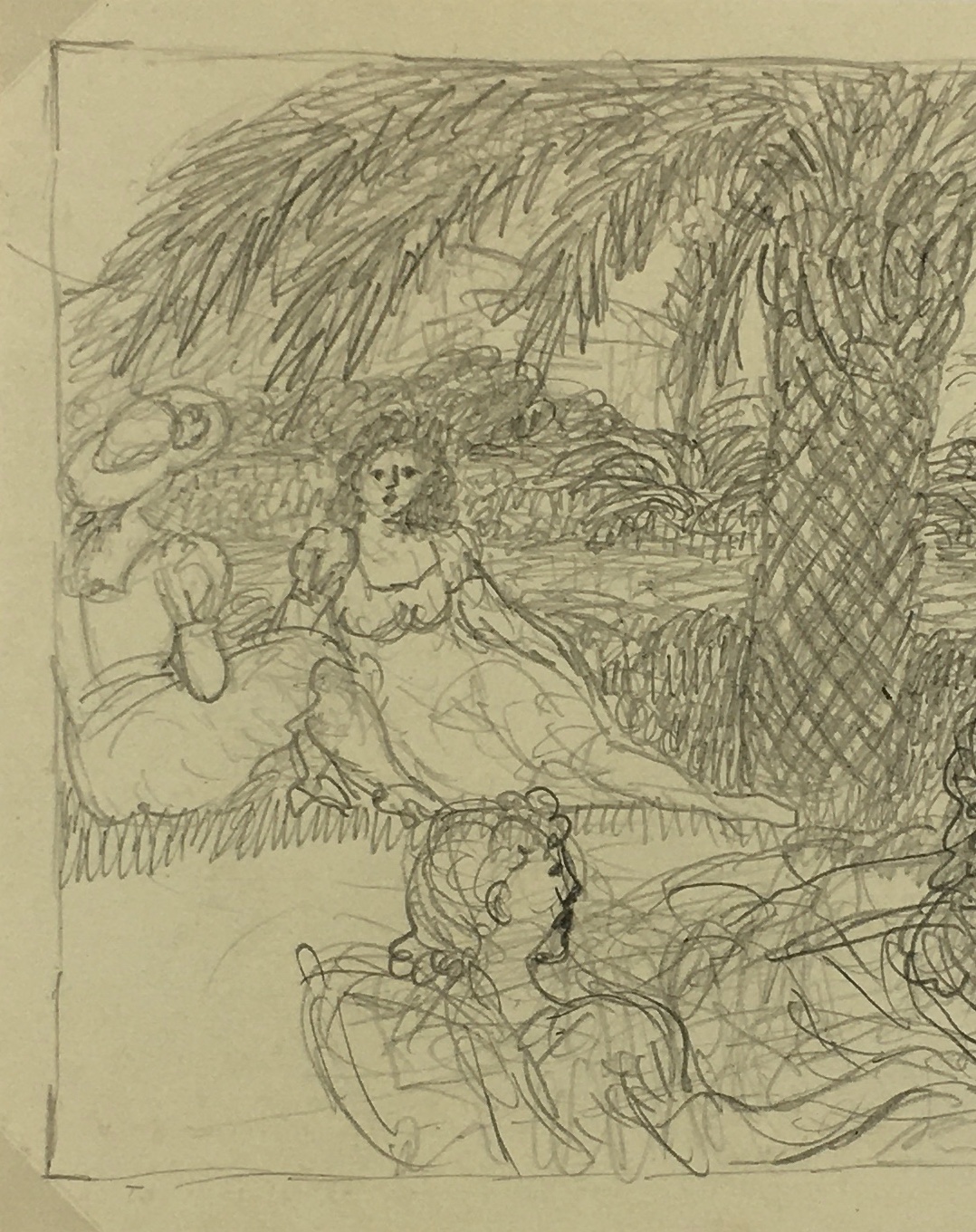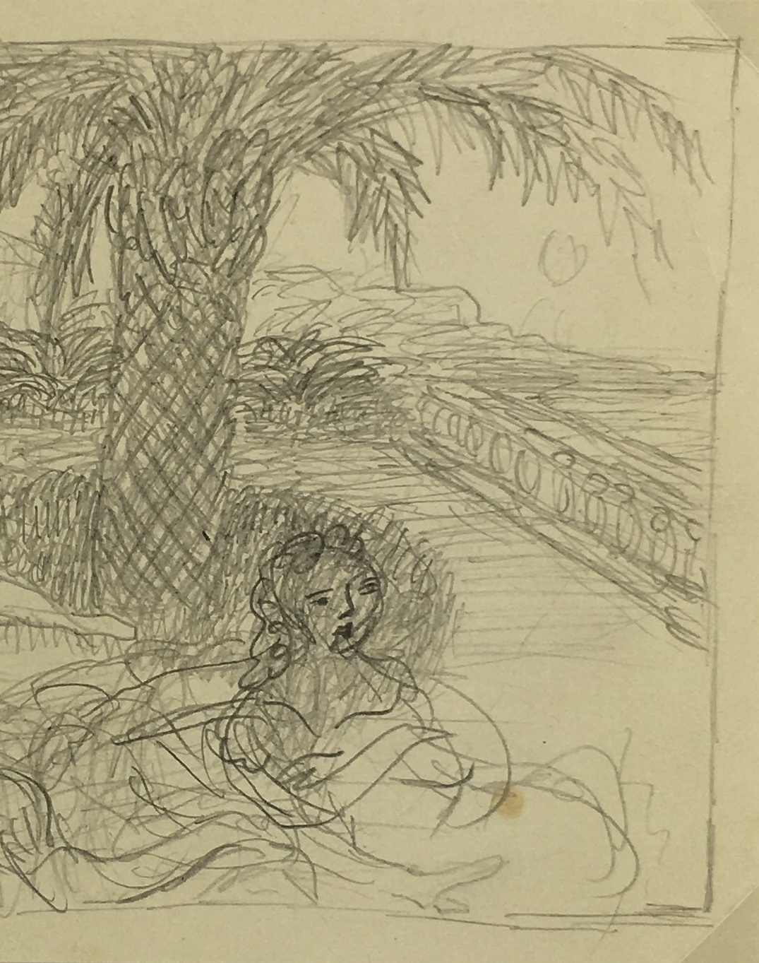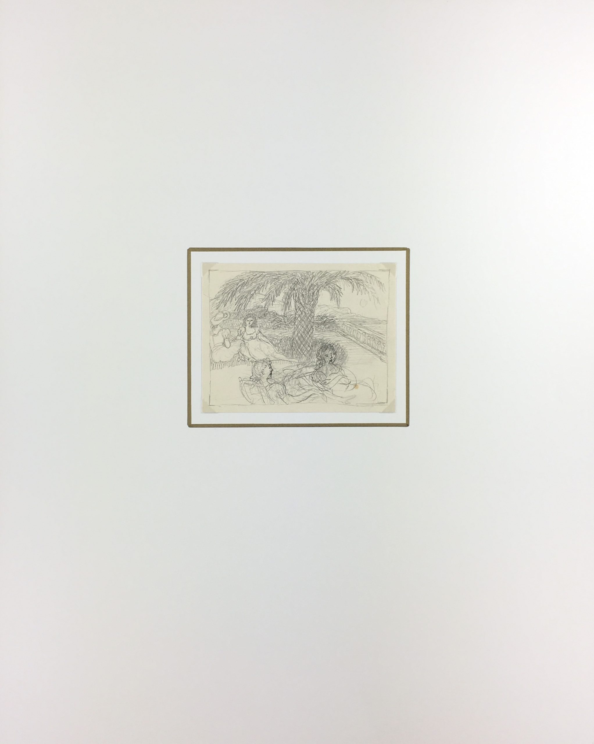 Original Art on paper displayed on a white mat with a gold border. Mat fits a standard-size frame. Archival plastic sleeve and Certificate of Authenticity included. Original Art, 5.25″W x 4″H; mat, 16″W x 20″H.