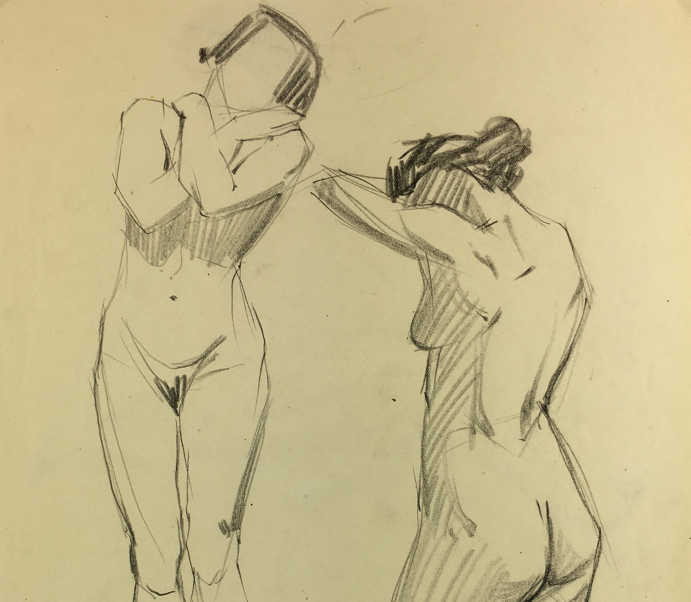 Original Art on paper displayed on a white mat with a gold border. Mat fits a standard-size frame. Archival plastic sleeve and Certificate of Authenticity included. Original Art, 9.75″W x 15.75″H; mat, 18″W x 24″H.