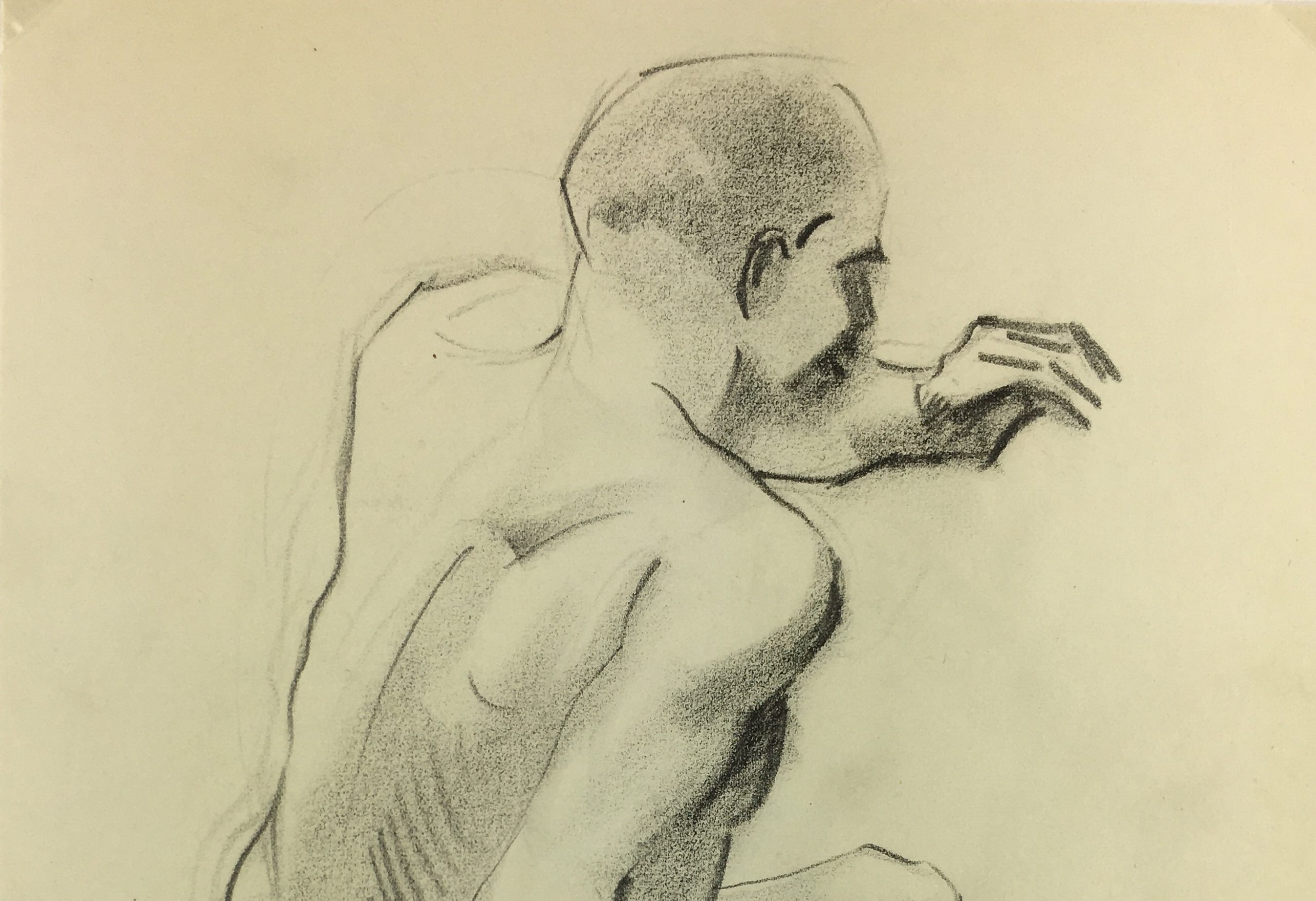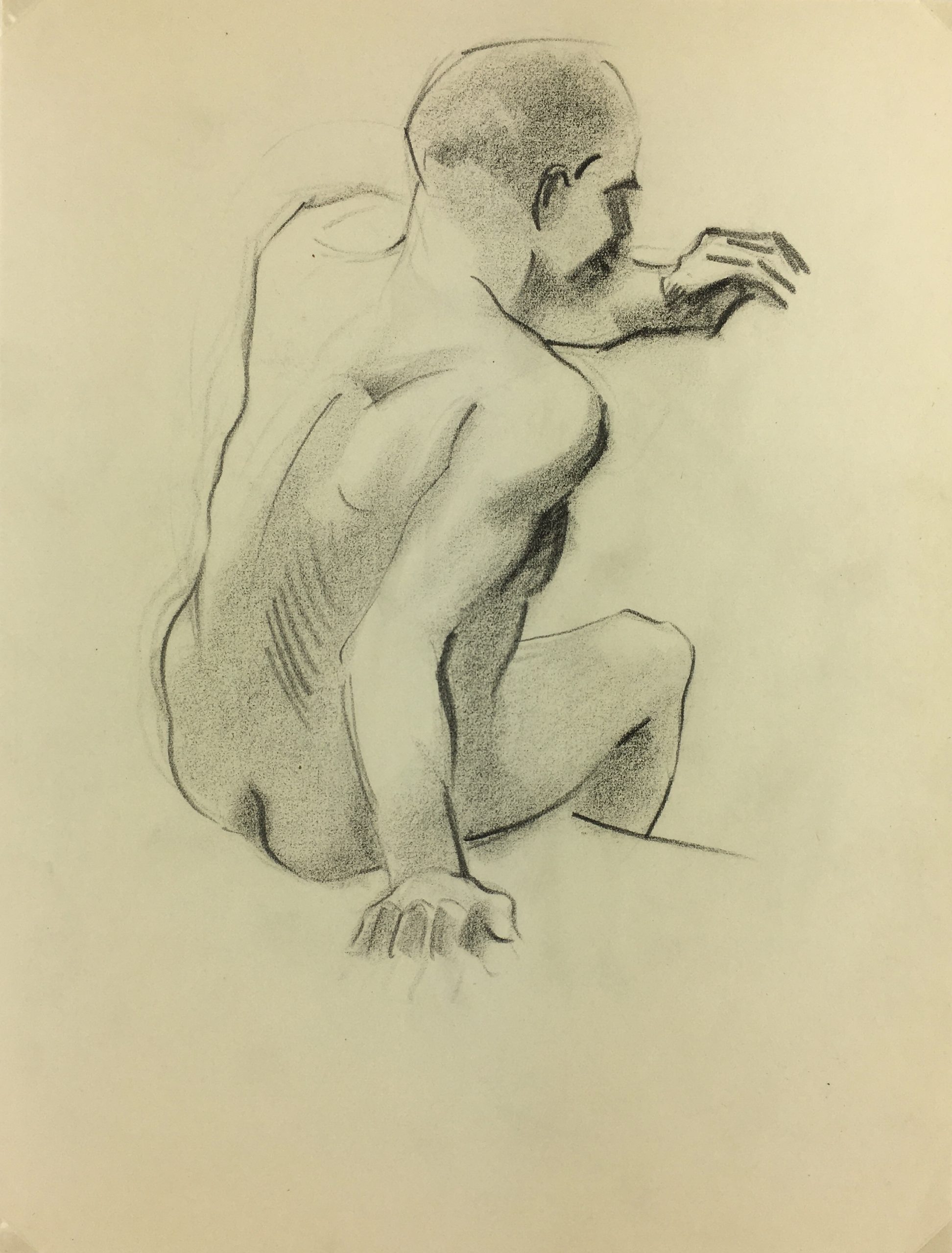 Nudes Original Art – Nude Drawing, J. Ernst, c.1940