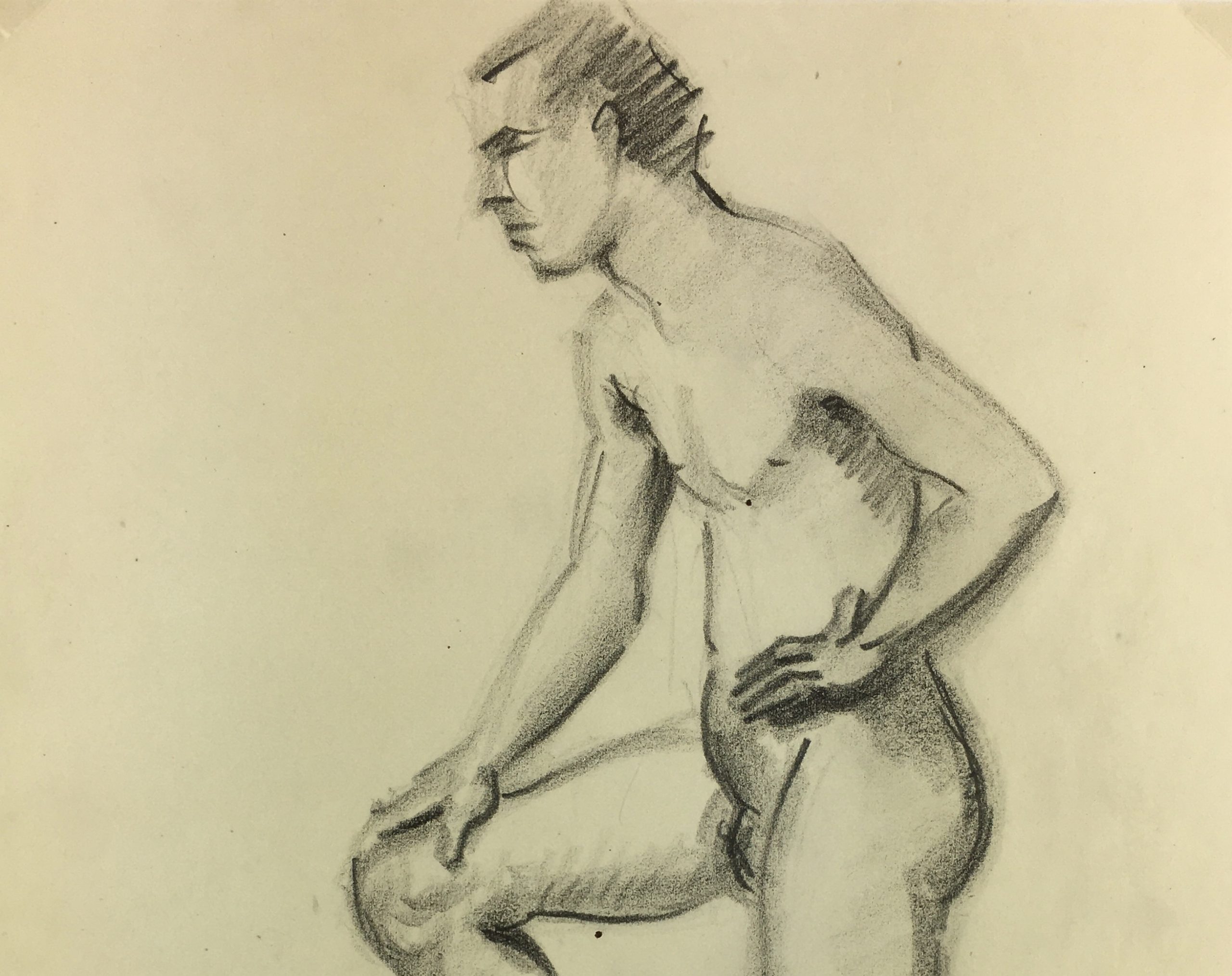 Nudes Original Art – Nude Drawing, J. Ernst, c.1940