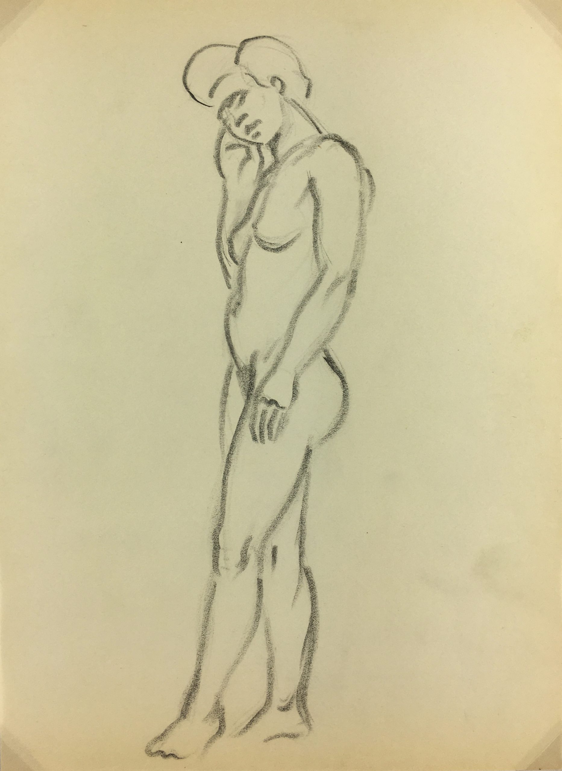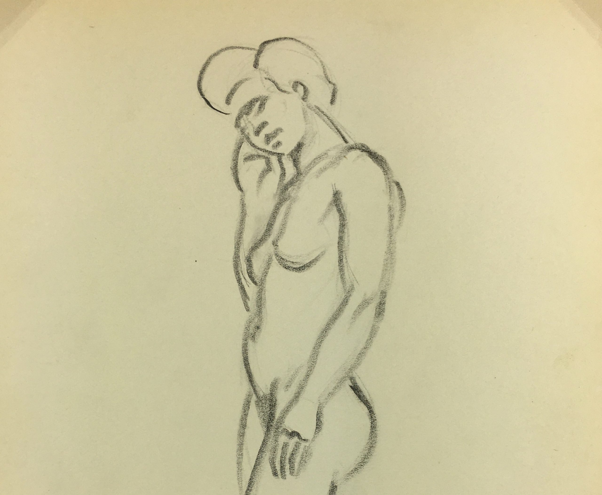 Nudes Original Art – Nude Drawing, J. Ernst, c.1940