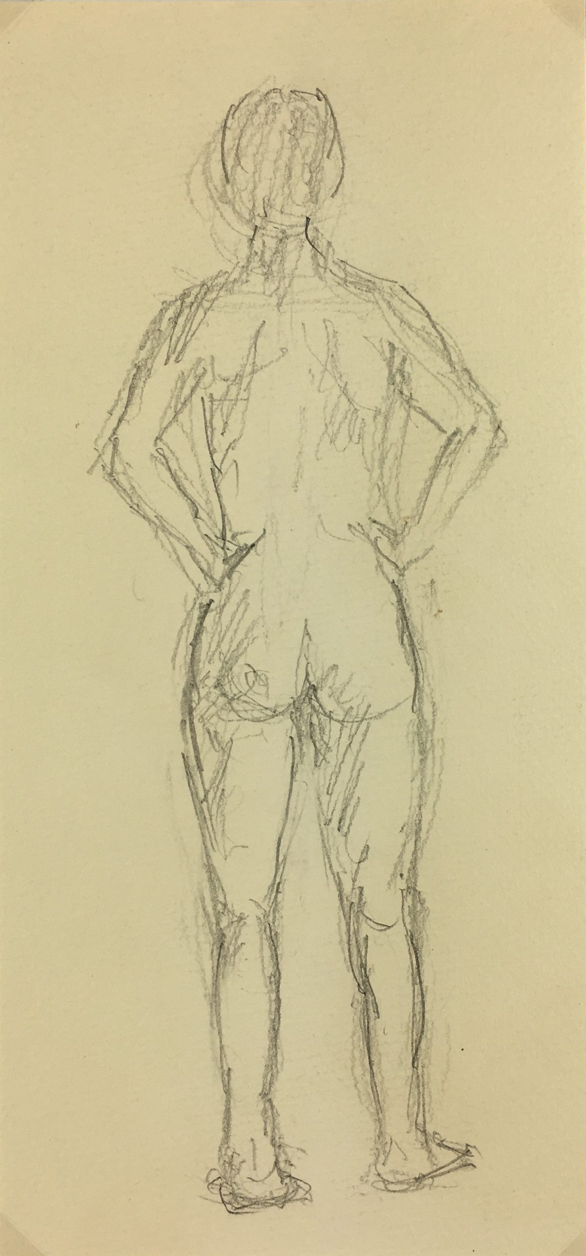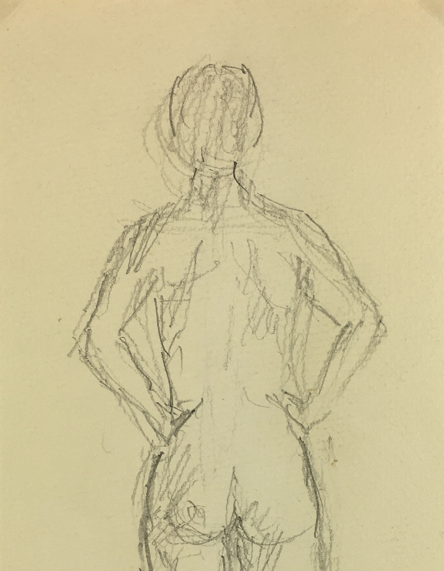Nudes Original Art – Nude Drawing, R. Bailly, 1988