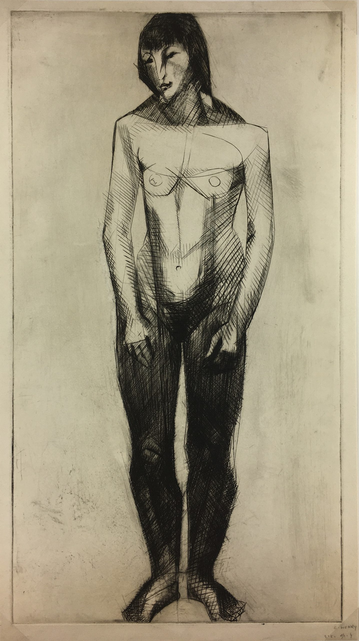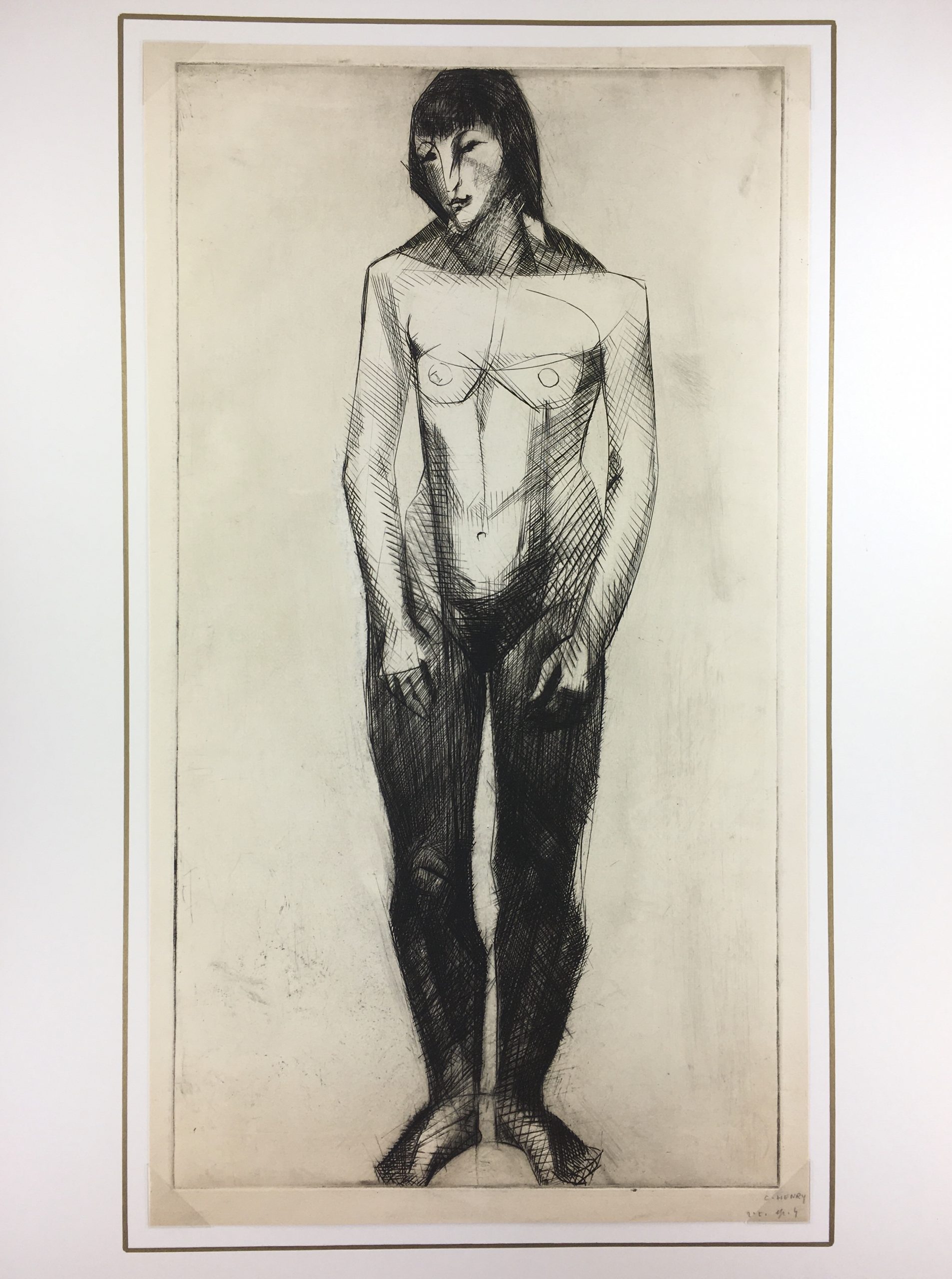Original Art on paper displayed on a white mat with a gold border. Mat fits a standard-size frame. Archival plastic sleeve and Certificate of Authenticity included. Original Art, 12.25″W x 22″H; mat, 18″W x 24″H.