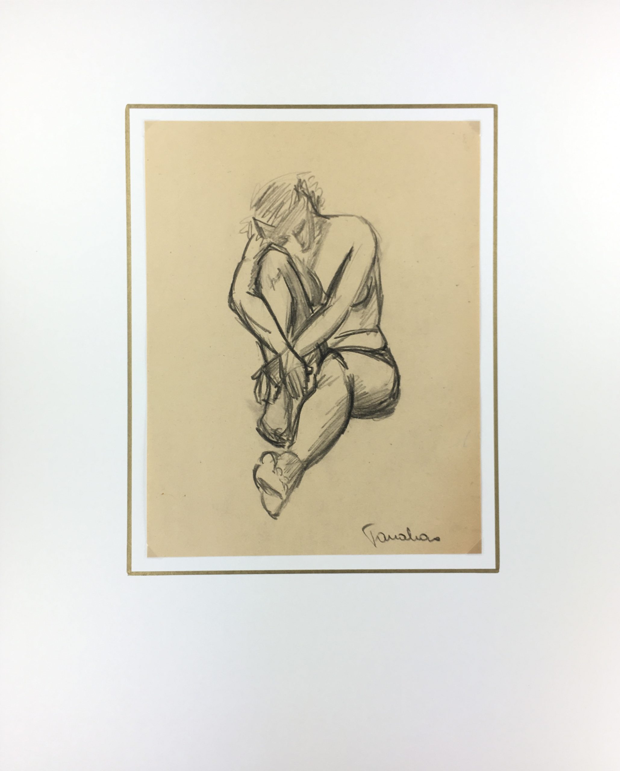 Original Art on paper displayed on a white mat with a gold border. Mat fits a standard-size frame. Archival plastic sleeve and Certificate of Authenticity included. Original Art, 8.5″W x 11″H; mat, 16″W x 20″H.