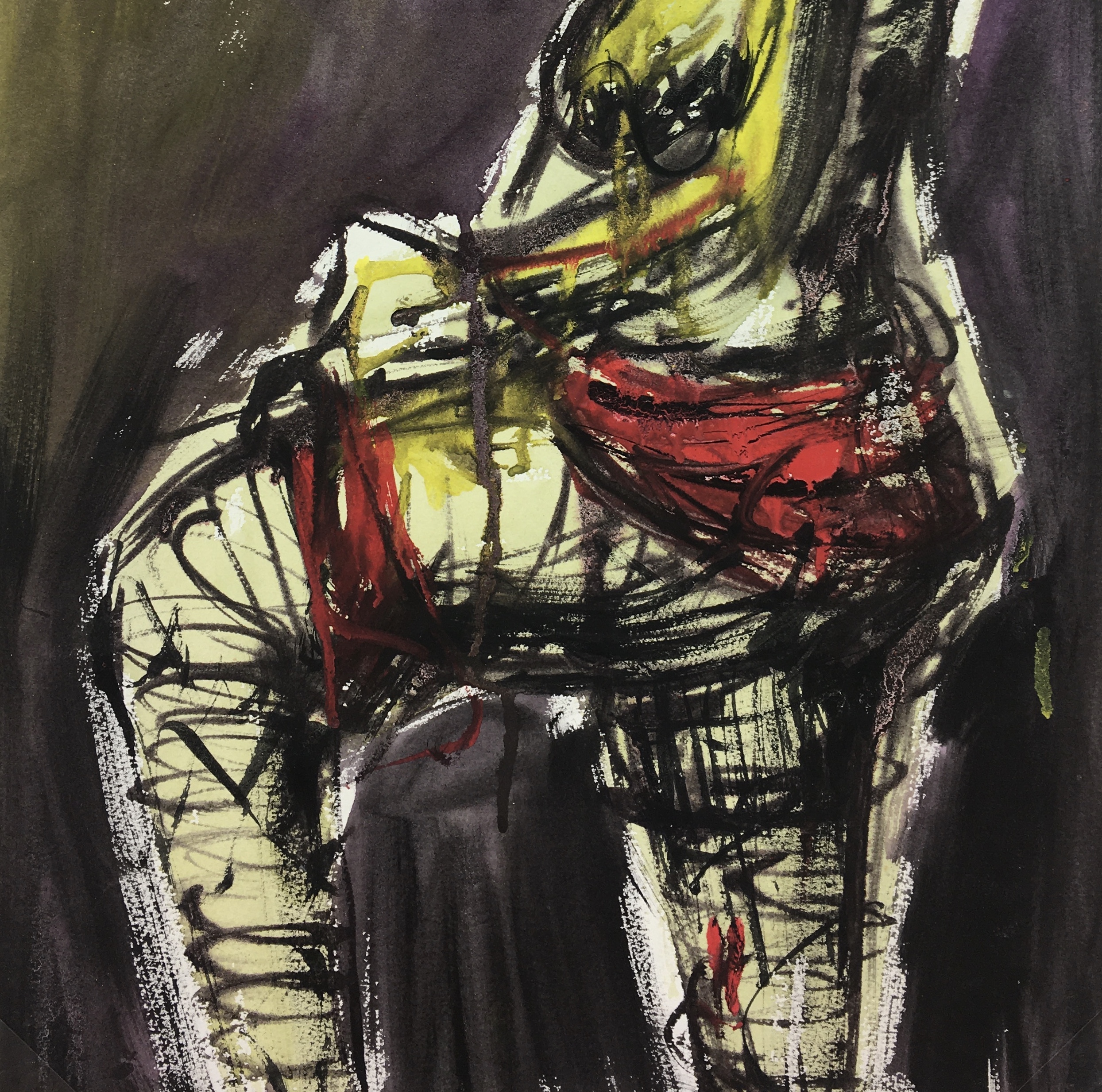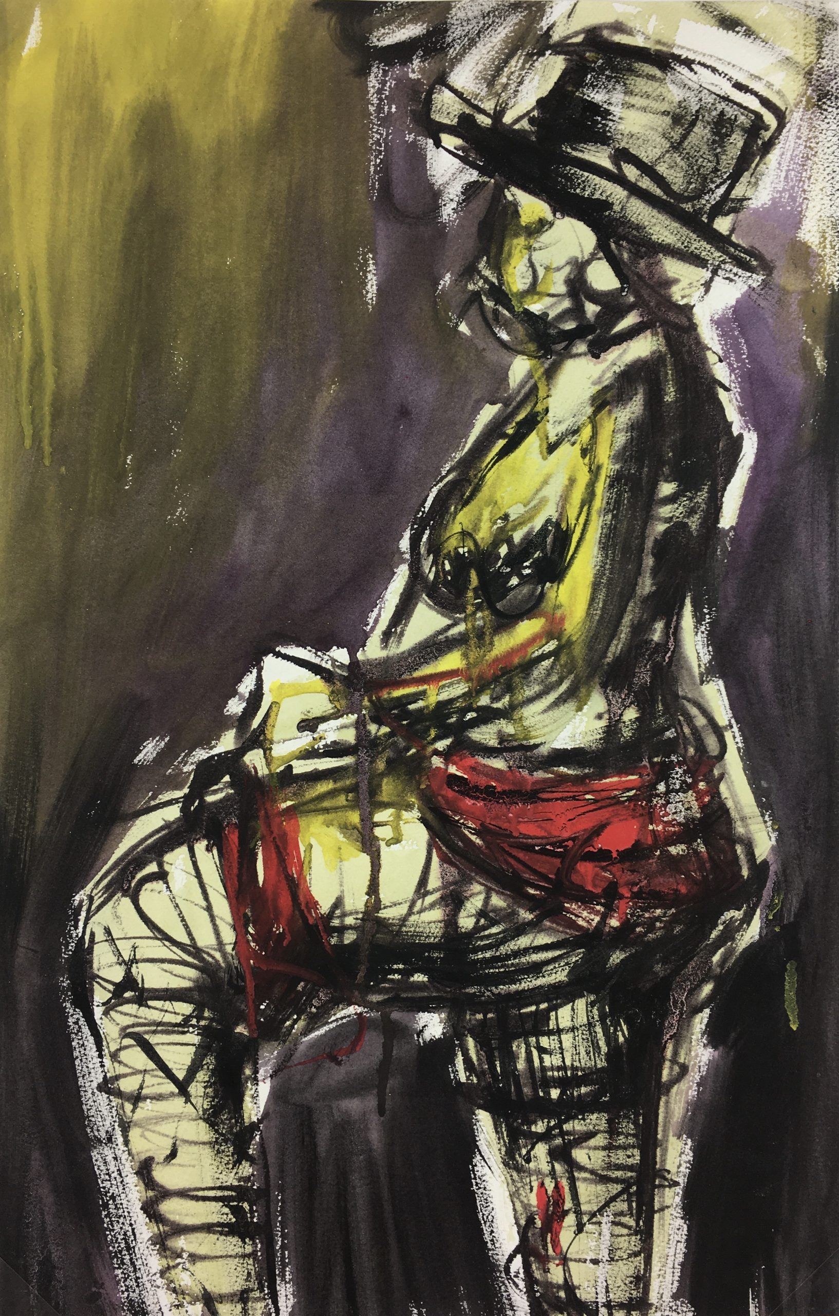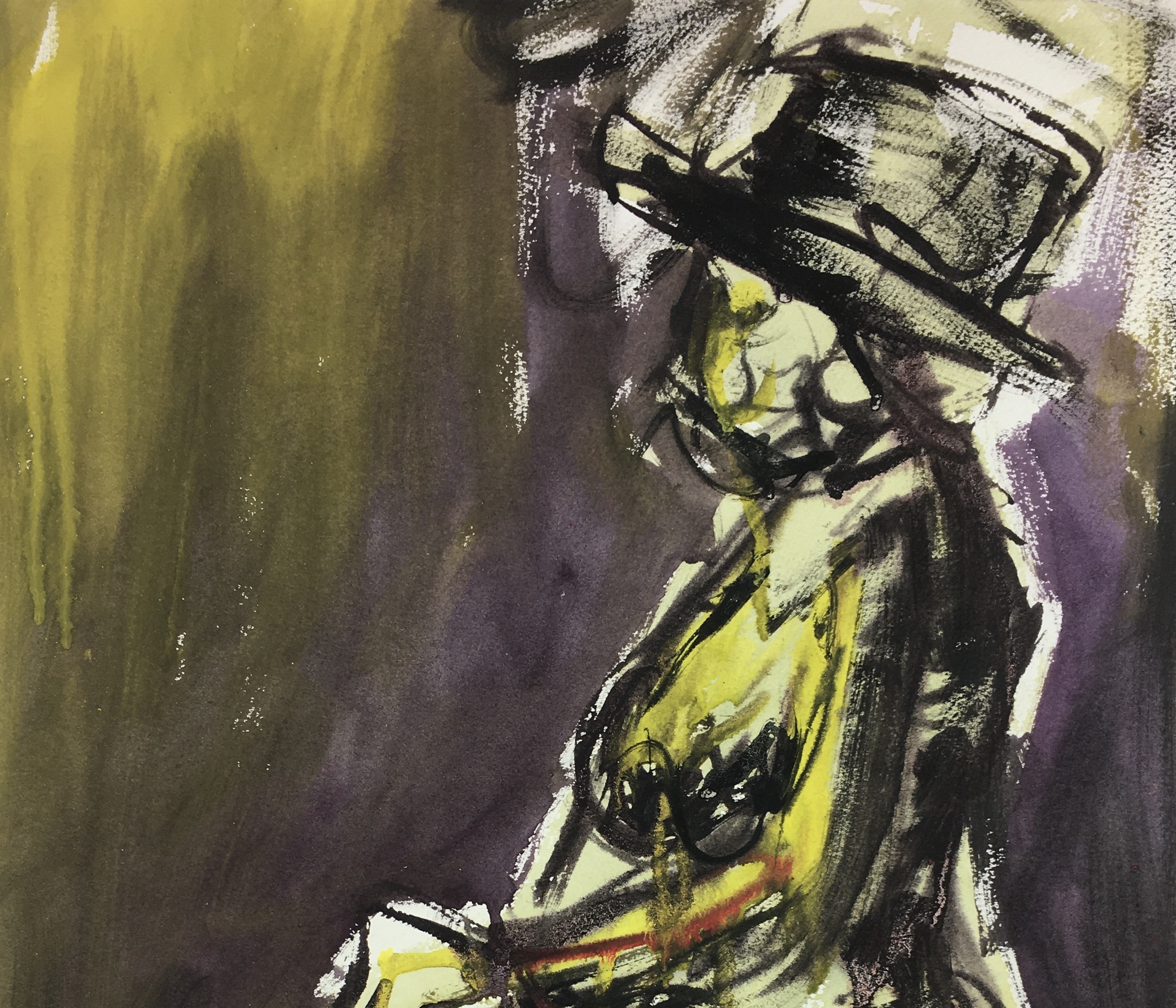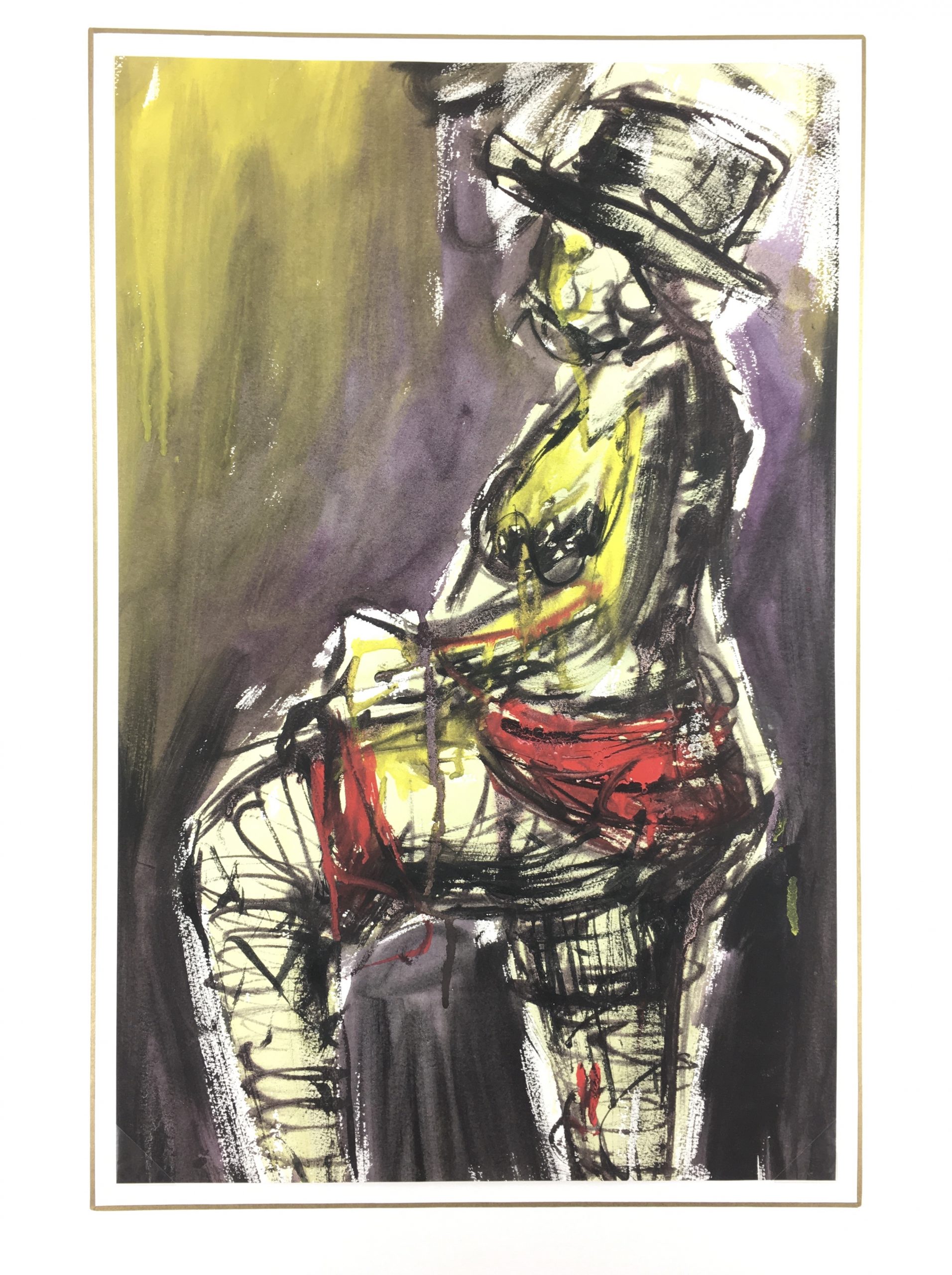 Original Art on paper displayed on a white mat with a gold border. Mat fits a standard-size frame. Archival plastic sleeve and Certificate of Authenticity included. Original Art, 13.5″W x 20.75″H; mat, 18″W x 24″H.