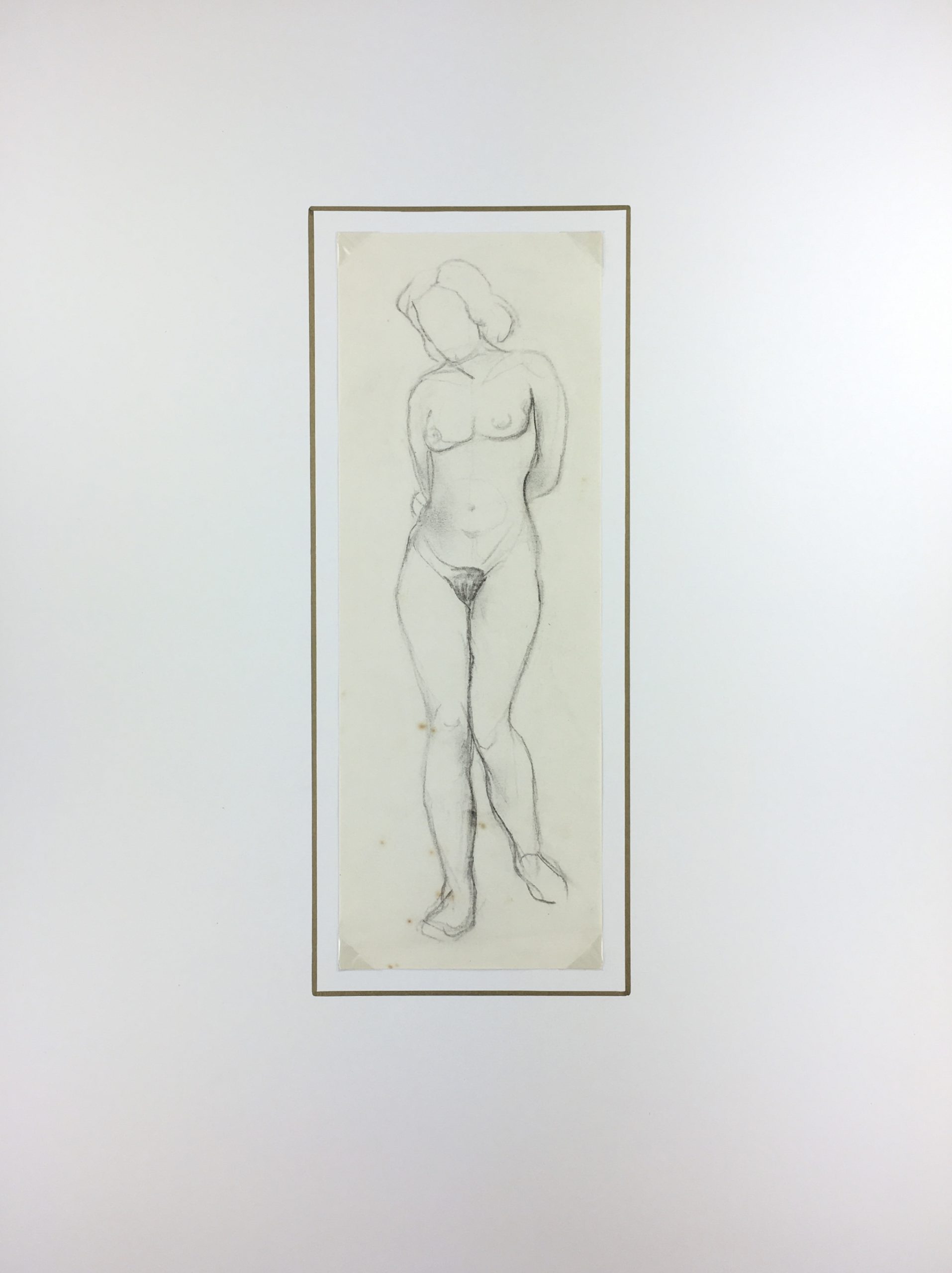 Original Art on paper displayed on a white mat with a gold border. Mat fits a standard-size frame. Archival plastic sleeve and Certificate of Authenticity included. Original Art, 5″W x 13.75″H; mat, 18″W x 24″H.