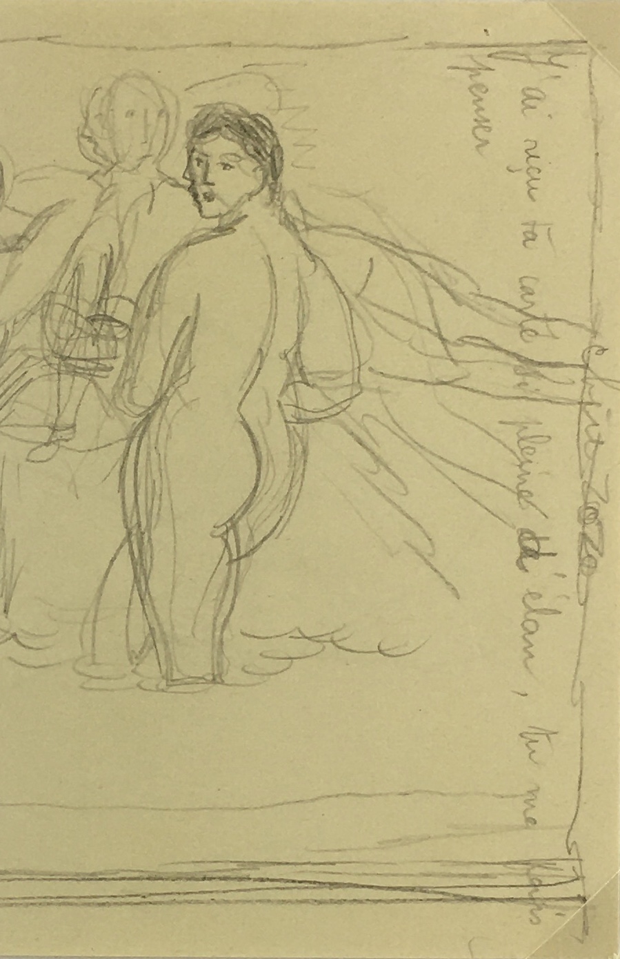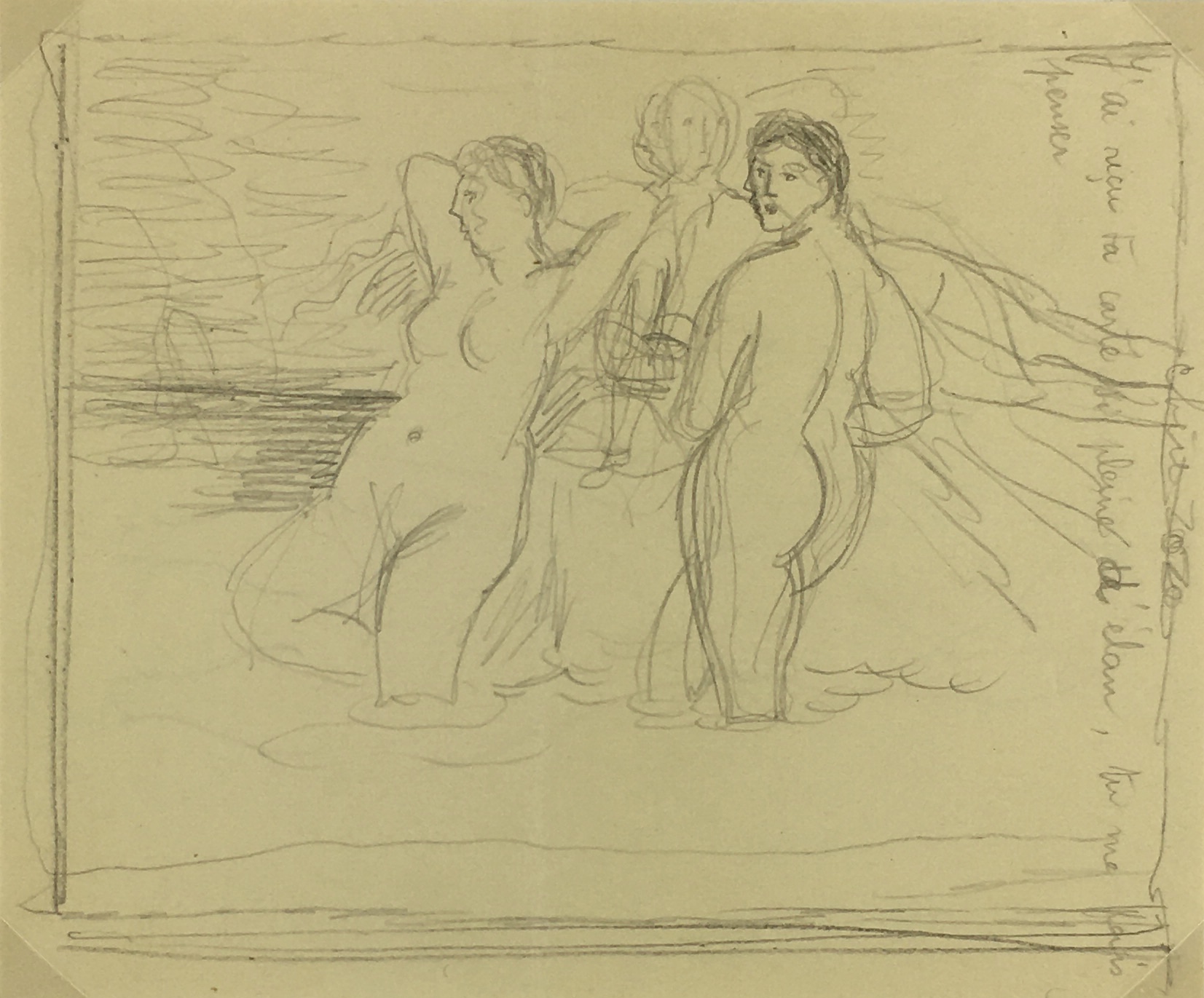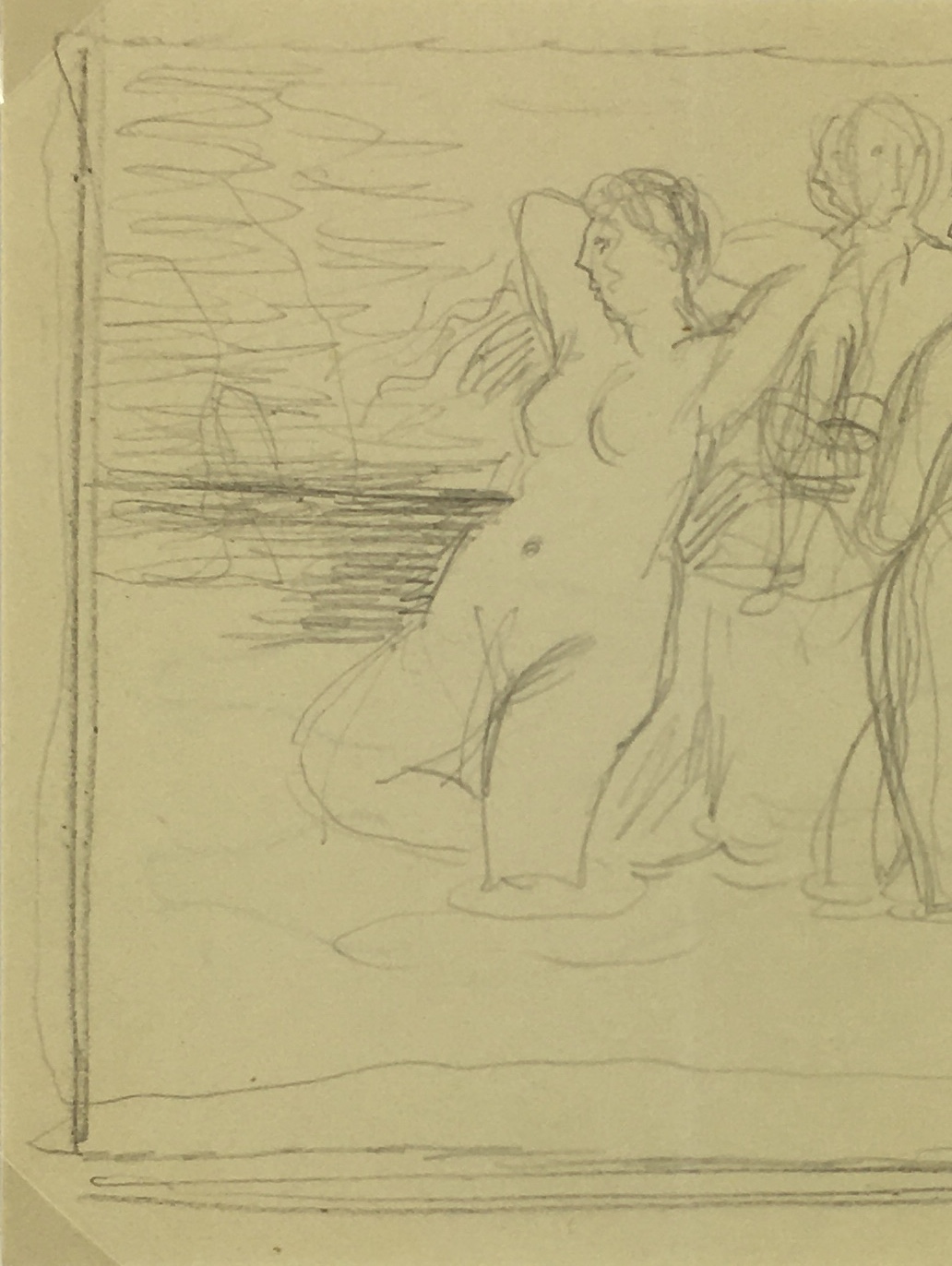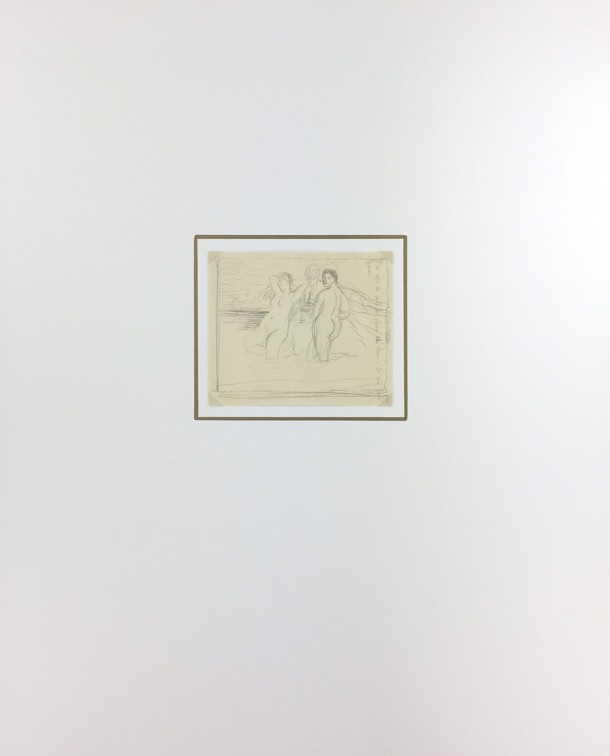 Original Art on paper displayed on a white mat with a gold border. Mat fits a standard-size frame. Archival plastic sleeve and Certificate of Authenticity included. Original Art, 4.75″W x 4″H; mat, 16″W x 20″H.