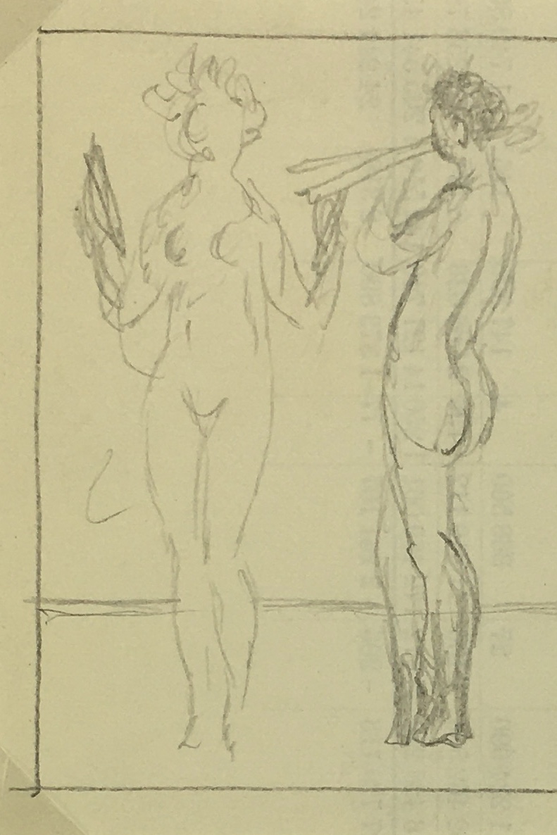 Original Art on paper displayed on a white mat with a gold border. Mat fits a standard-size frame. Archival plastic sleeve and Certificate of Authenticity included. Original Art, 4.5″W x 3.5″H; mat, 16″W x 20″H.