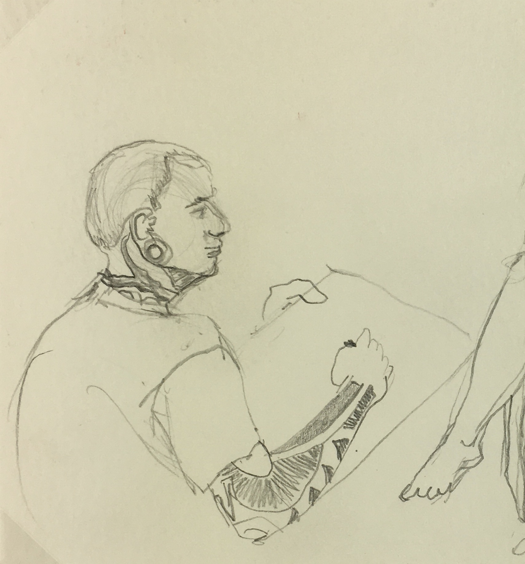Original Art on paper displayed on a white mat with a gold border. Mat fits a standard-size frame. Archival plastic sleeve and Certificate of Authenticity included. Original Art, 8.5″W x 5.25″H; mat, 16″W x 20″H.