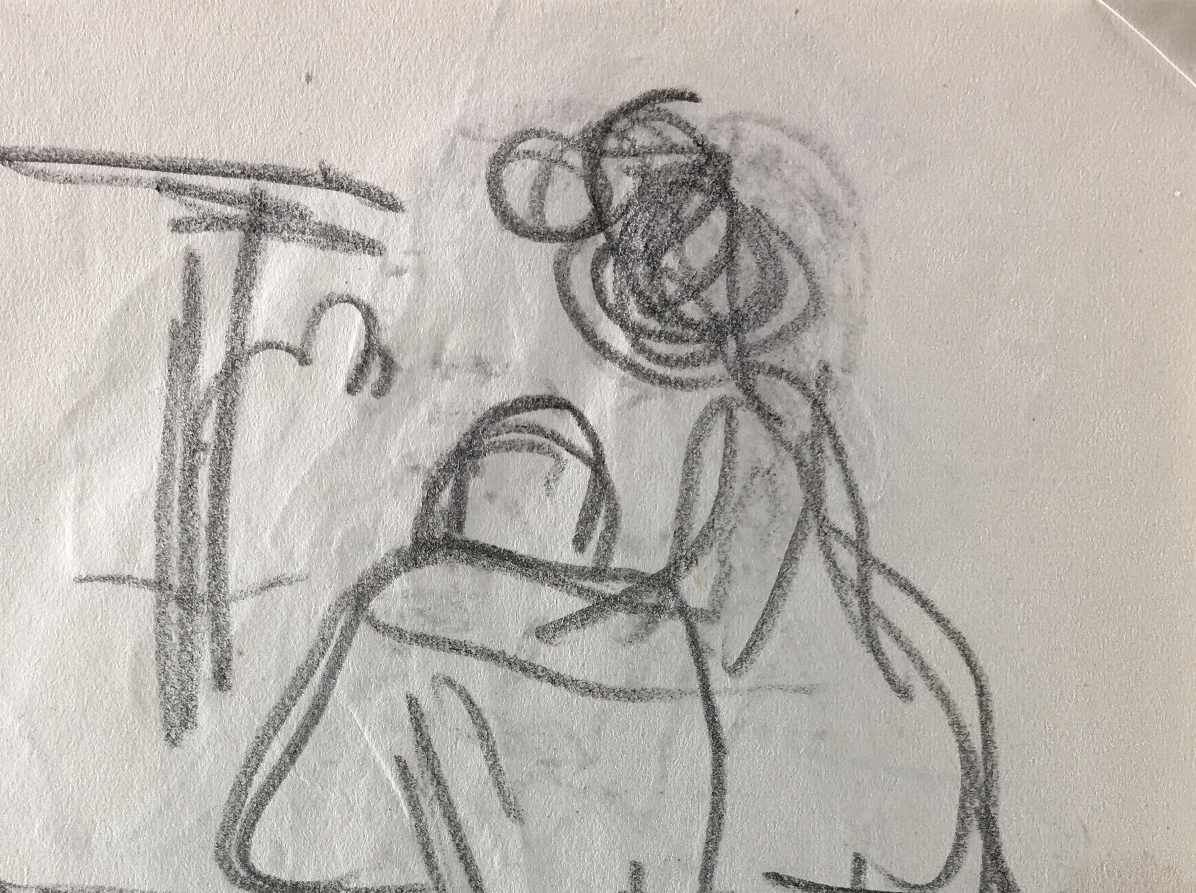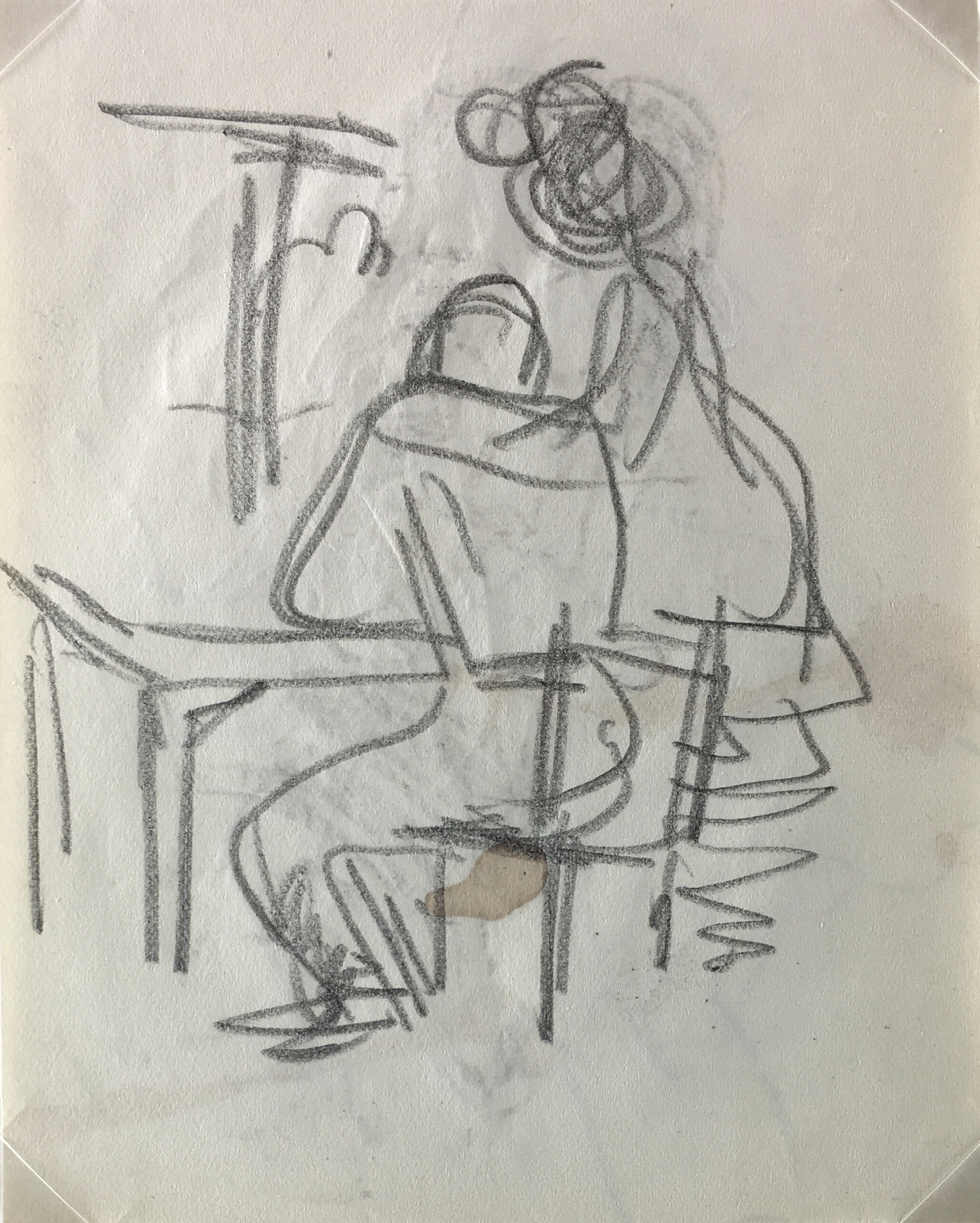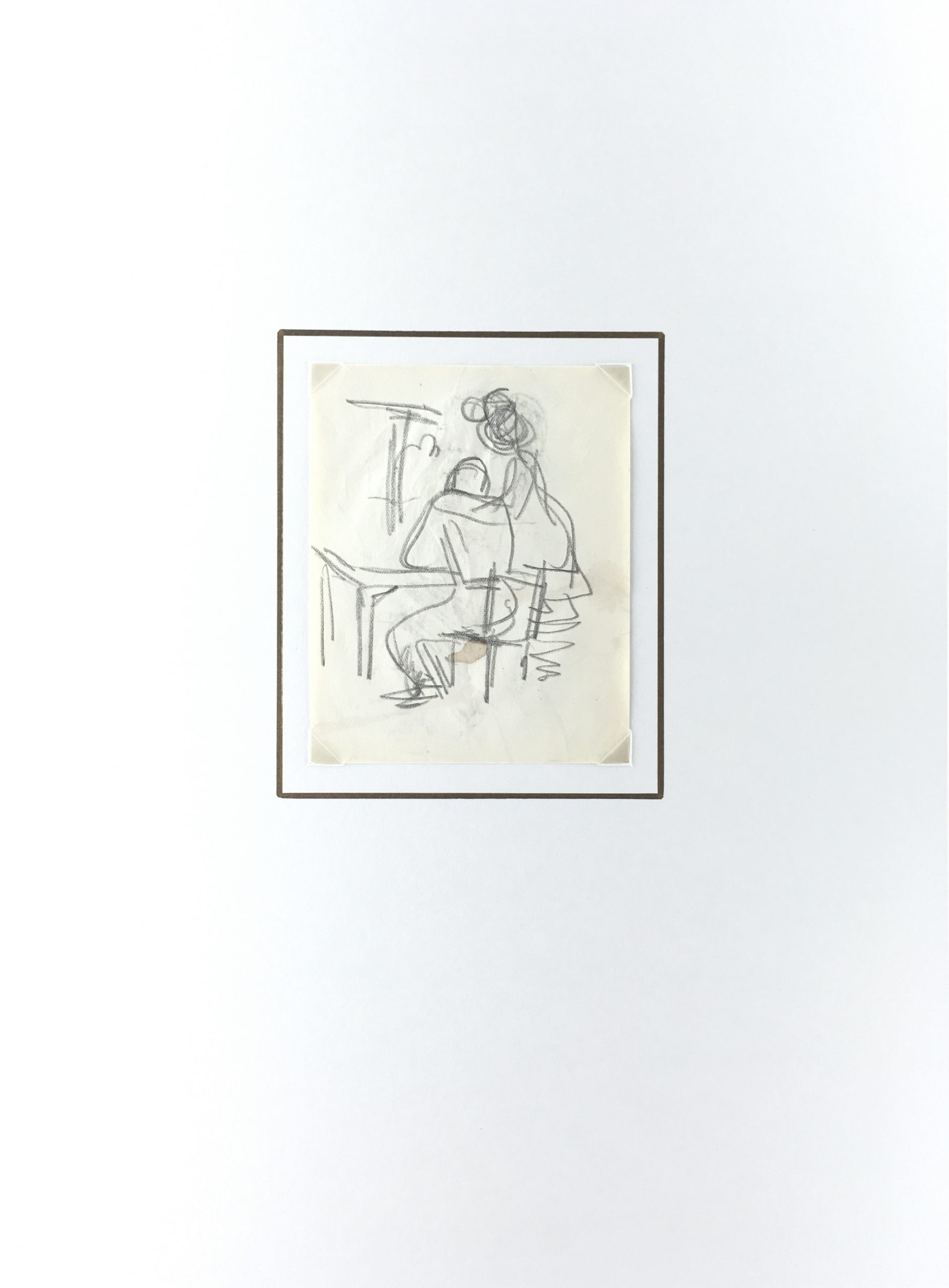 Original Art on paper displayed on a white mat with a gold border. Mat fits a standard-size frame. Archival plastic sleeve and Certificate of Authenticity included. Original Art, 4″W x 5″H; mat, 12″W x 16″H.