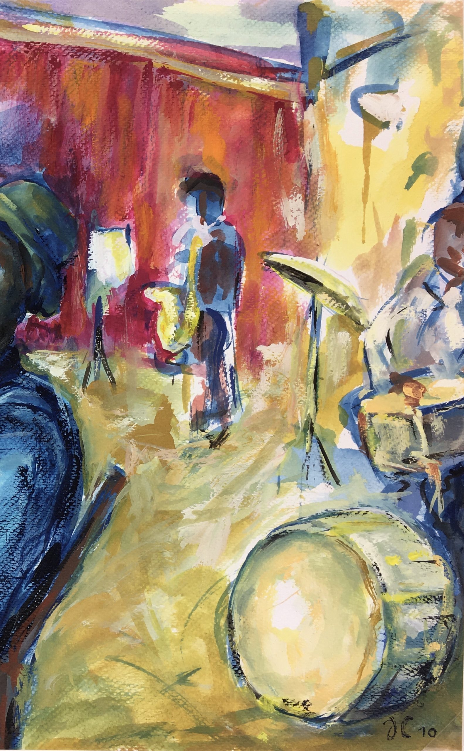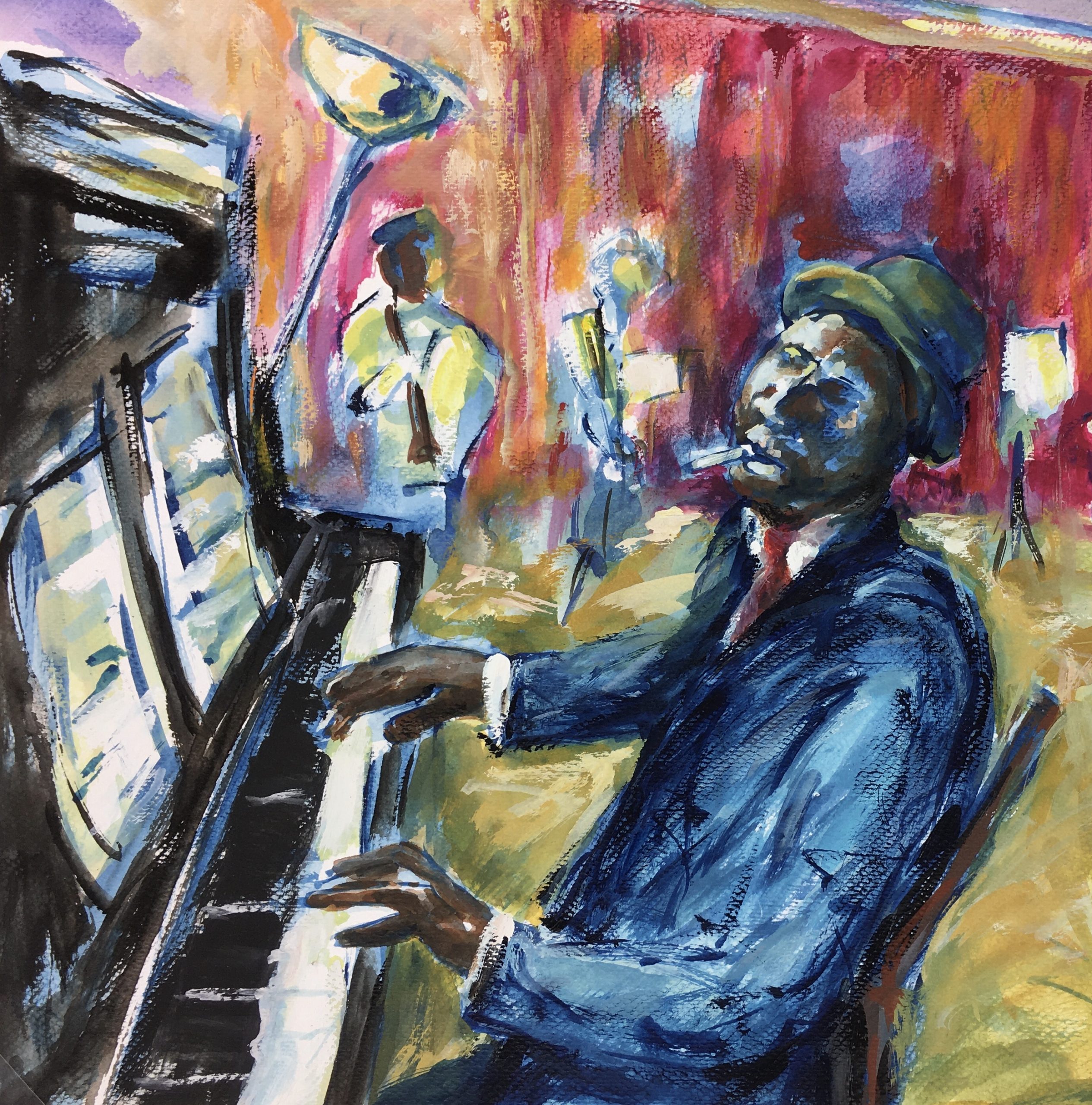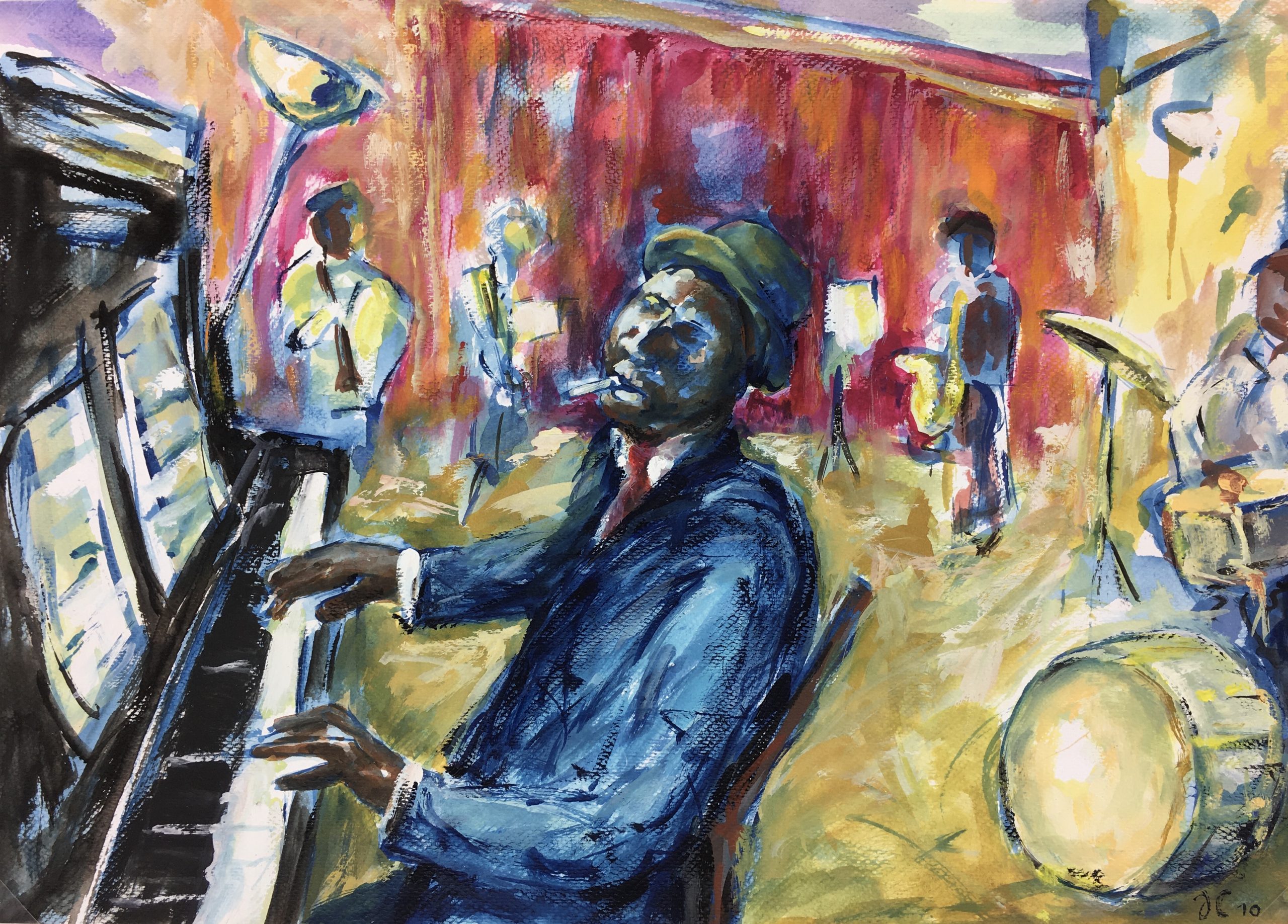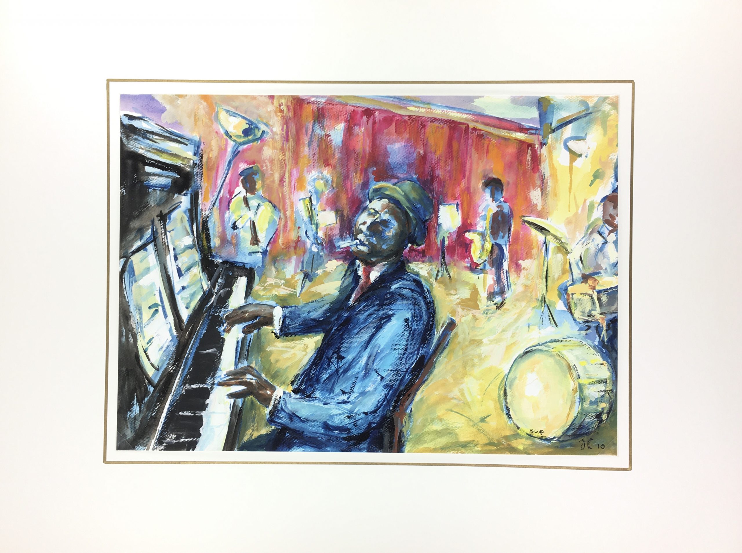 Original Art on paper displayed on a white mat with a gold border. Mat fits a standard-size frame. Archival plastic sleeve and Certificate of Authenticity included. Original Art, 16″W x 11.5″H; mat, 24″W x 18″H.