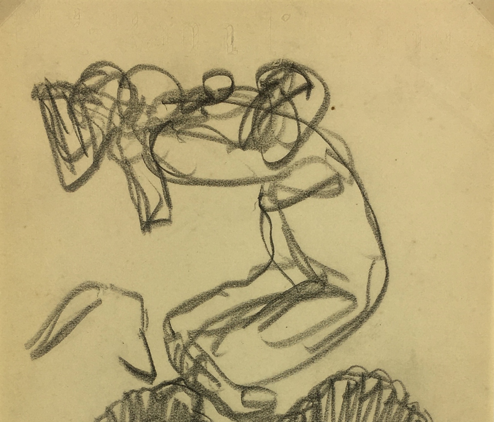 Original Art on paper displayed on a white mat with a gold border. Mat fits a standard-size frame. Archival plastic sleeve and Certificate of Authenticity included. Original Art, 5″W x 7.75″H; mat, 16″W x 20″H.