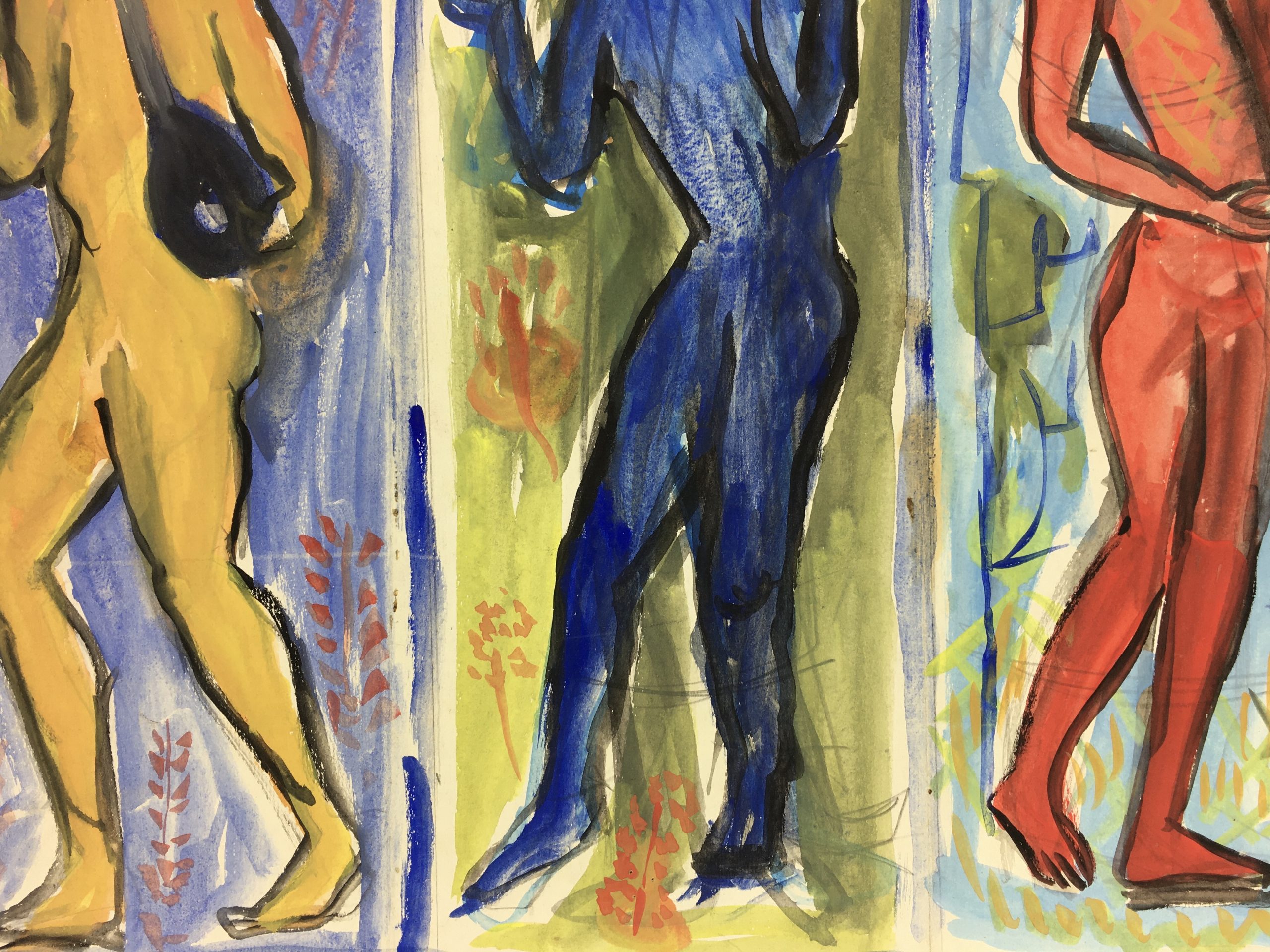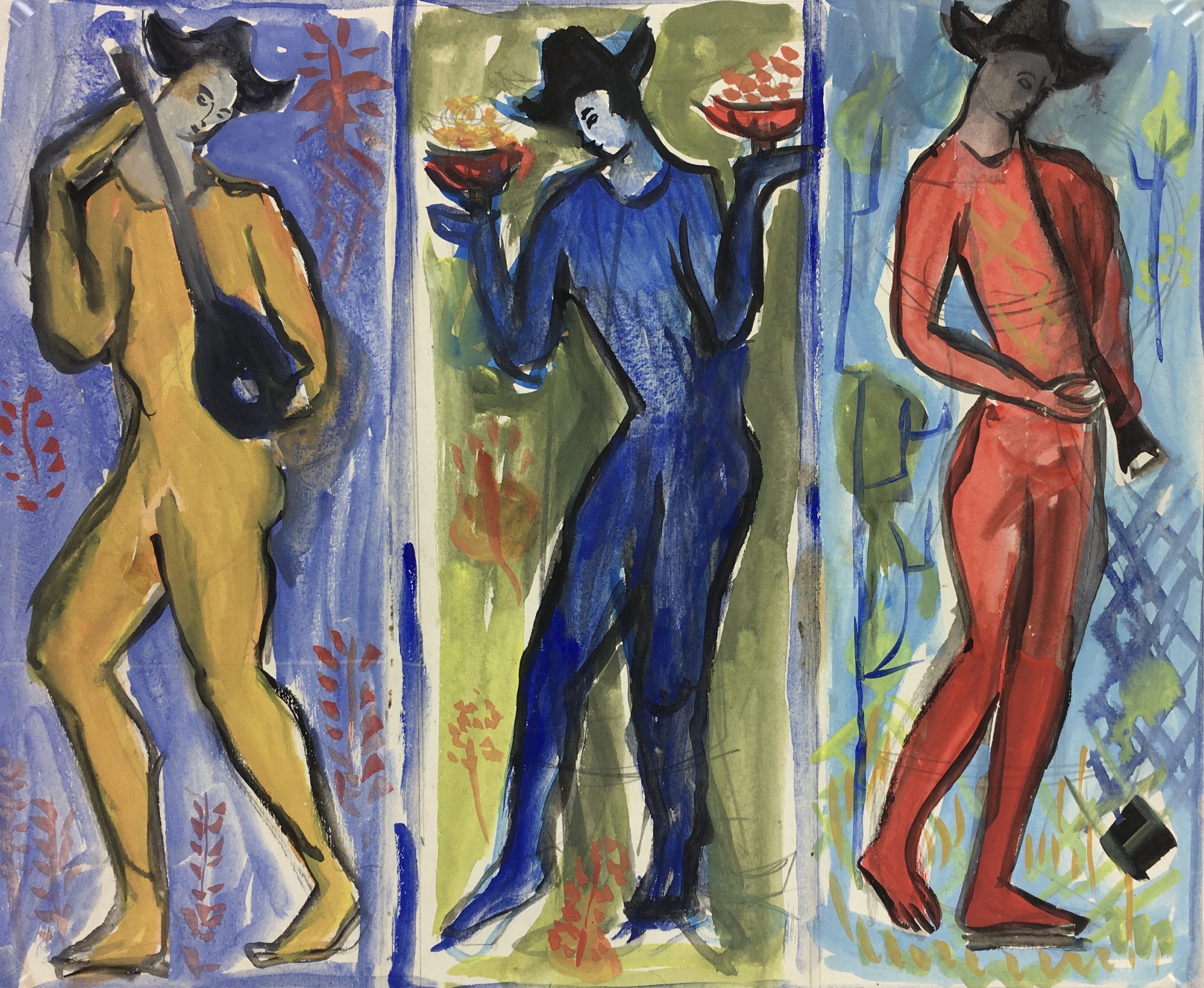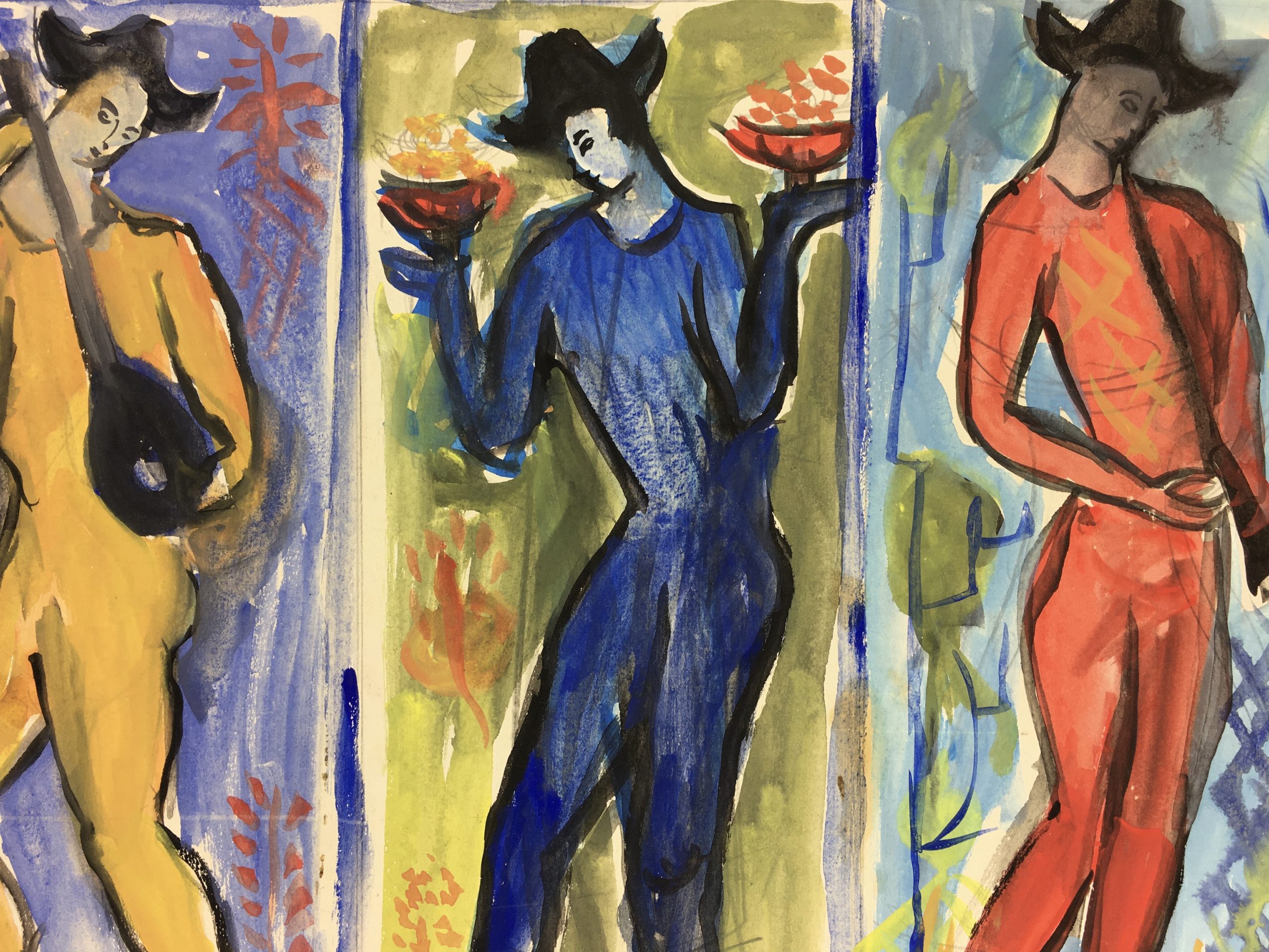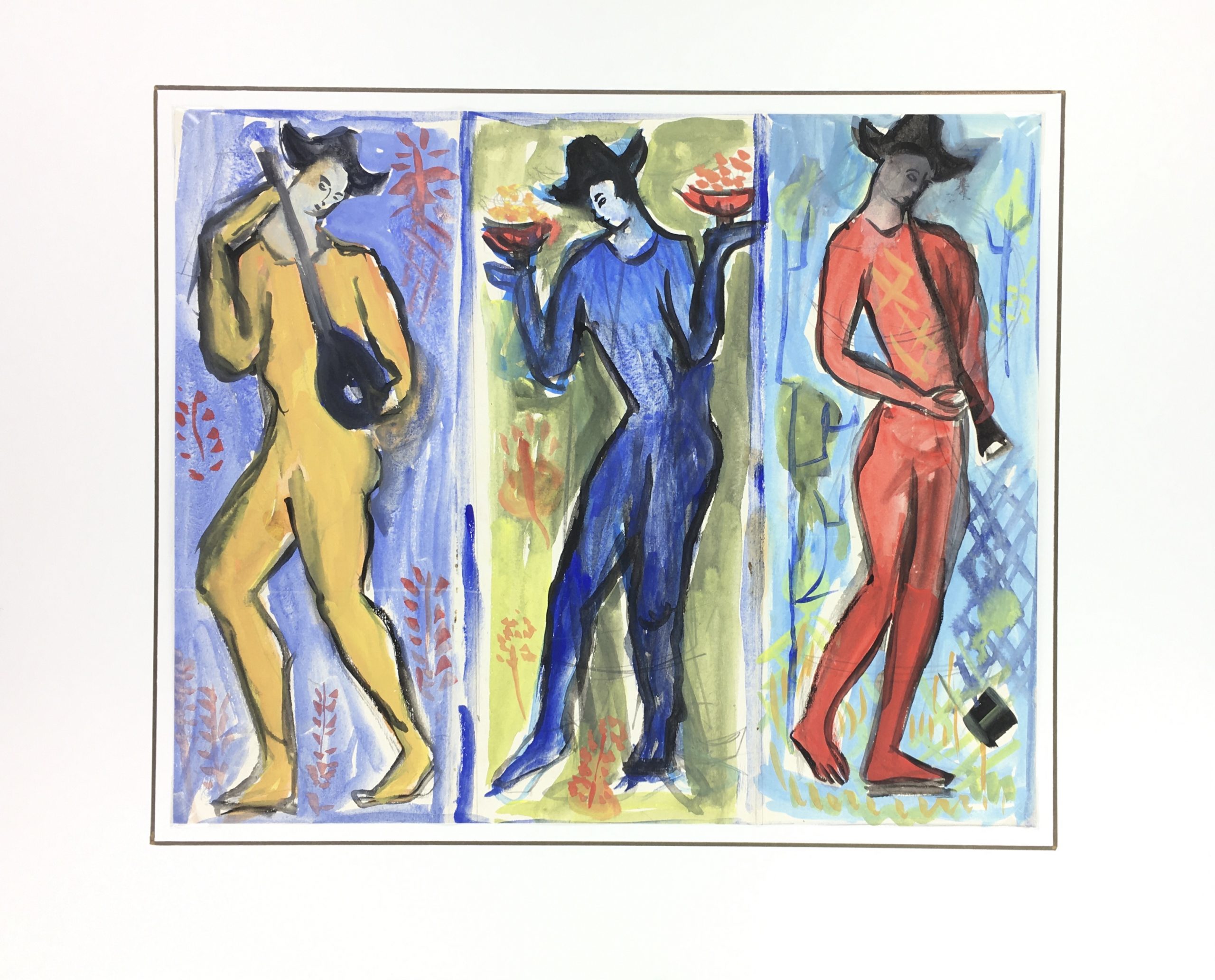 Original Art on paper displayed on a white mat with a gold border. Mat fits a standard-size frame. Archival plastic sleeve and Certificate of Authenticity included. Original Art, 14″W x 11.75″H; mat, 20″W x 16″H.