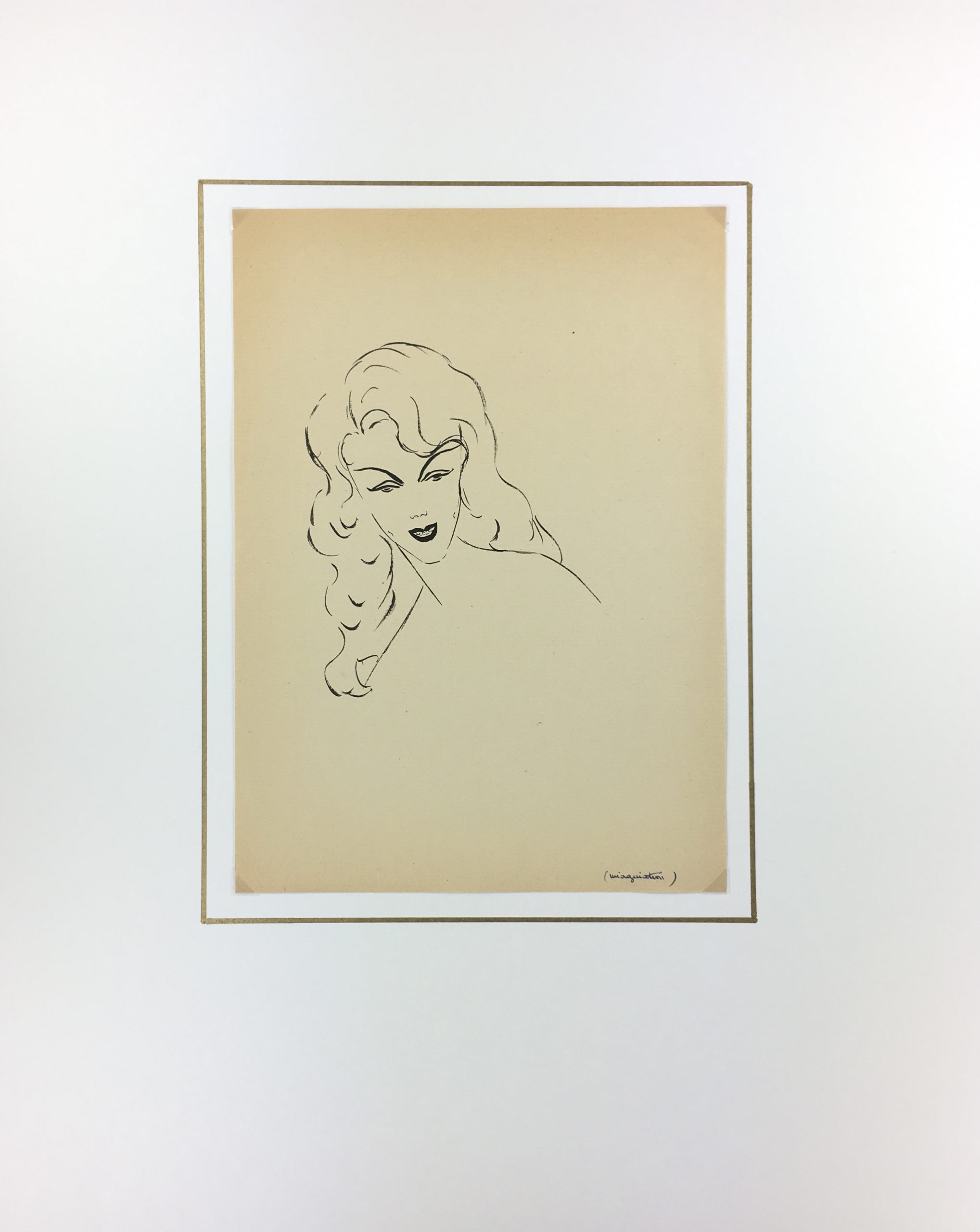 Original Art on paper displayed on a white mat with a gold border. Mat fits a standard-size frame. Archival plastic sleeve and Certificate of Authenticity included. Original Art, 8″W x 11″H; mat, 16″W x 20″H.