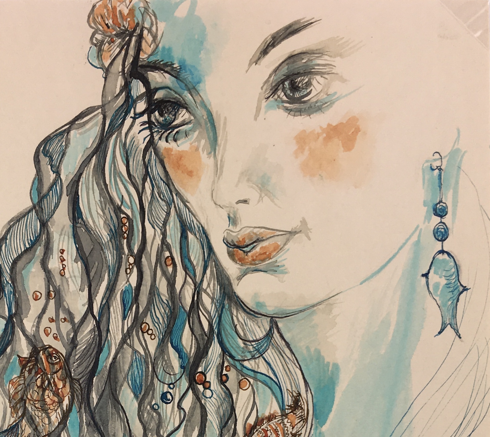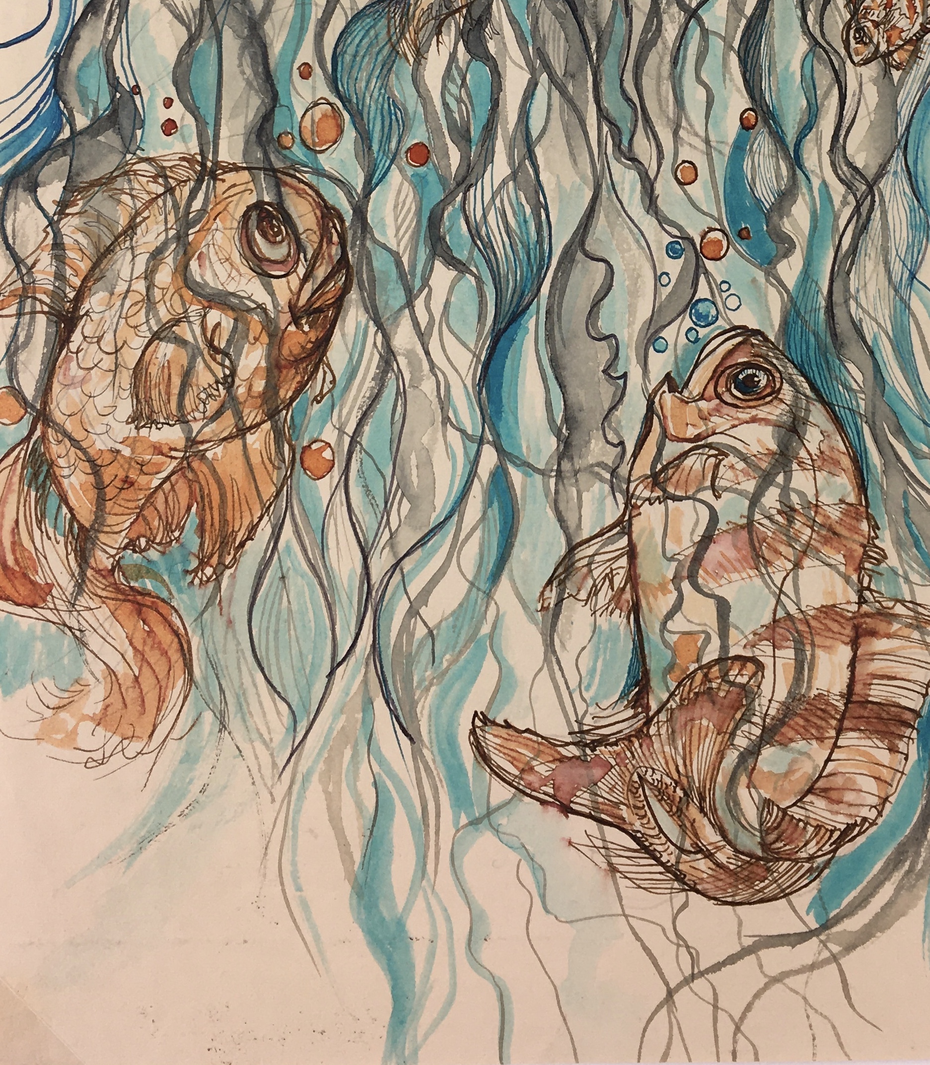 Original Art on paper displayed on a white mat with a gold border. Mat fits a standard-size frame. Archival plastic sleeve and Certificate of Authenticity included. Original Art, 7.75″W x 11″H; mat, 16″W x 20″H.