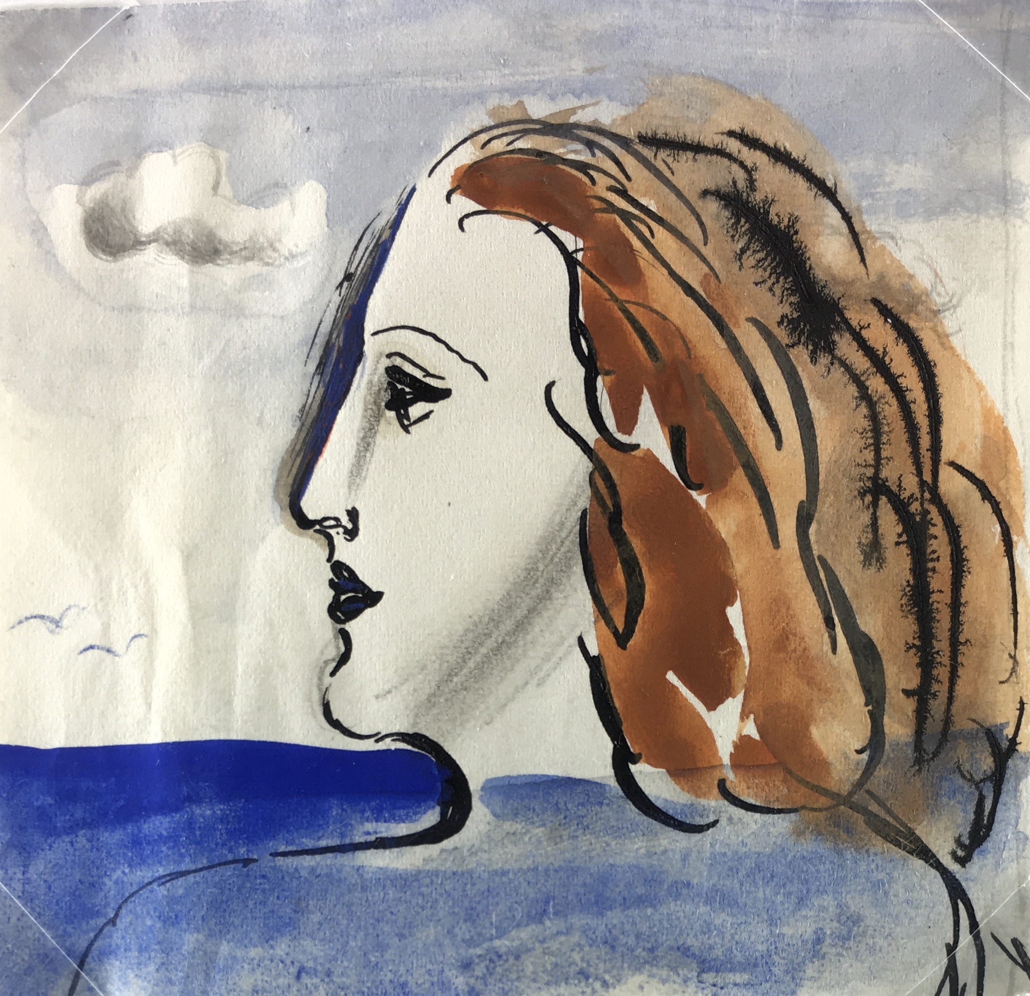 Portraits Original Art – Seascape Woman, Albert Viale, C.1940