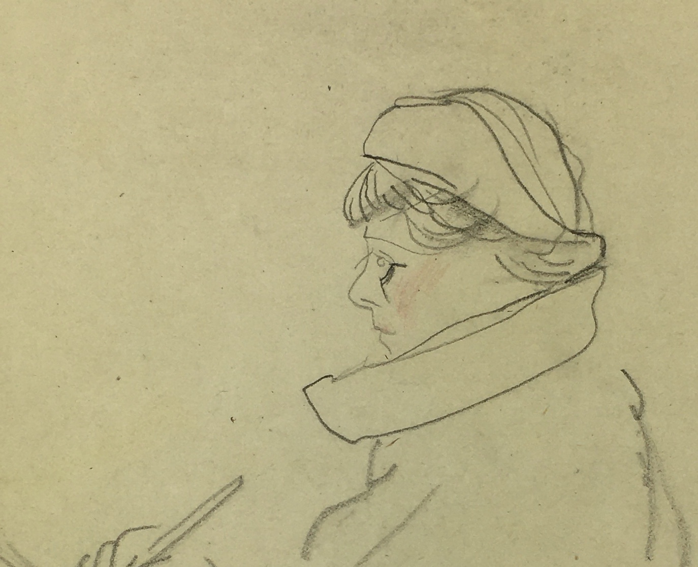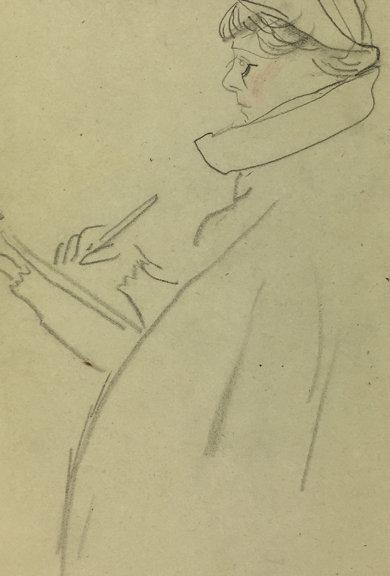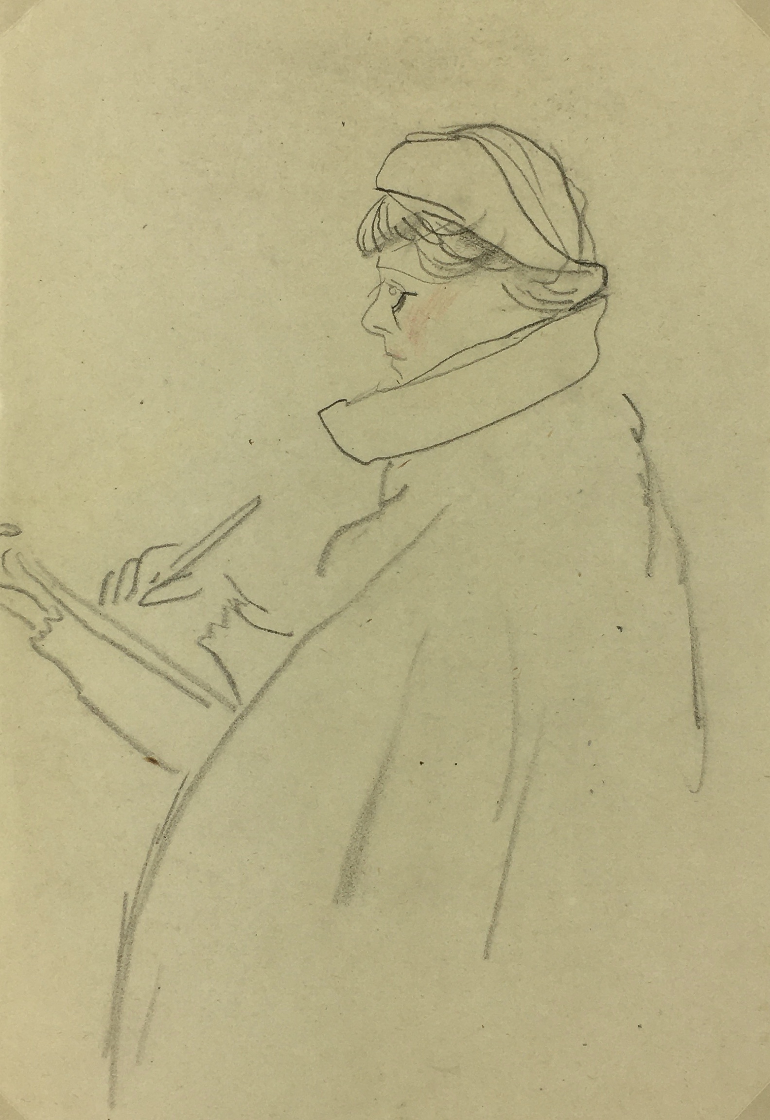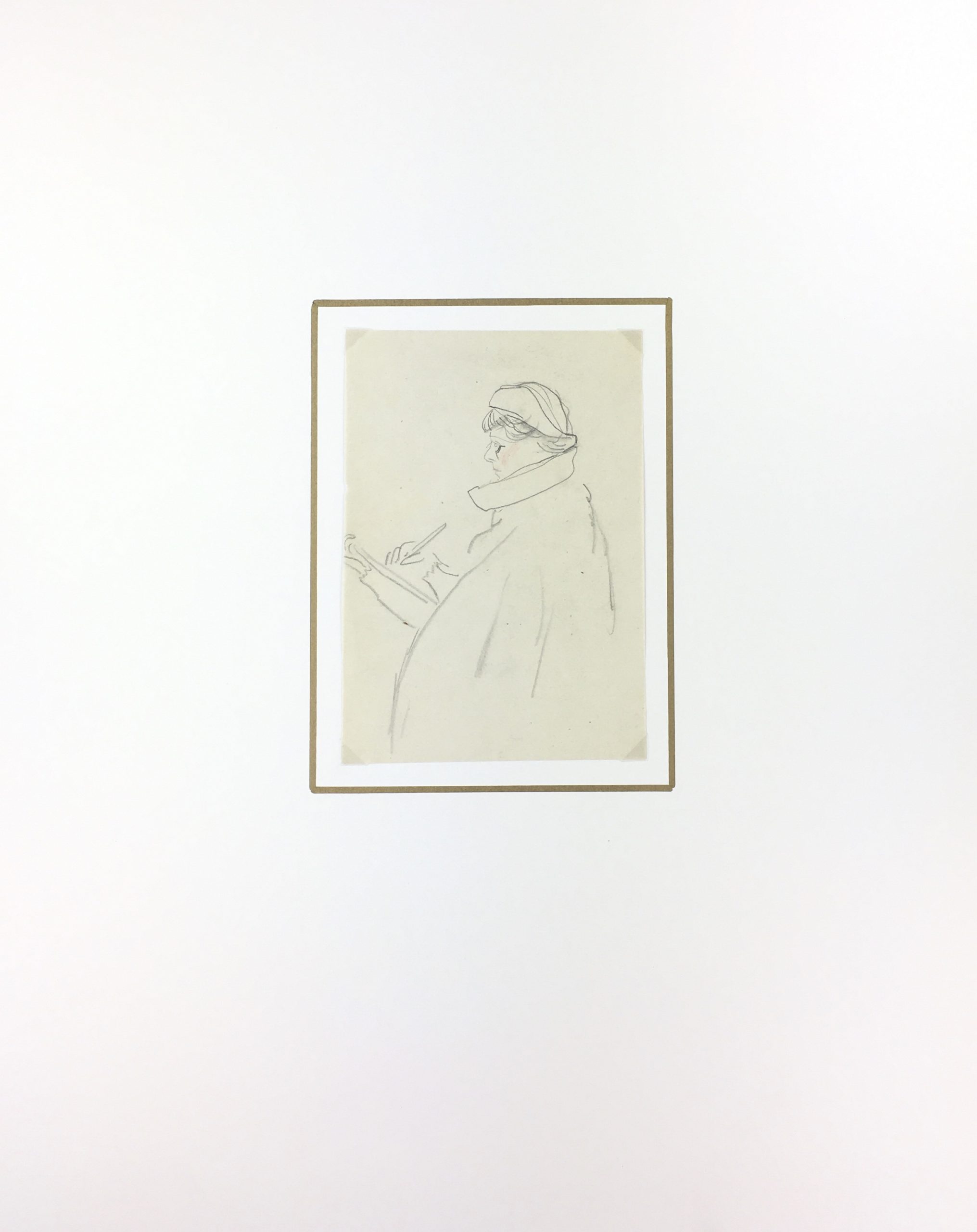 Original Art on paper displayed on a white mat with a gold border. Mat fits a standard-size frame. Archival plastic sleeve and Certificate of Authenticity included. Original Art, 5″W x 7″H; mat, 16″W x 20″H.