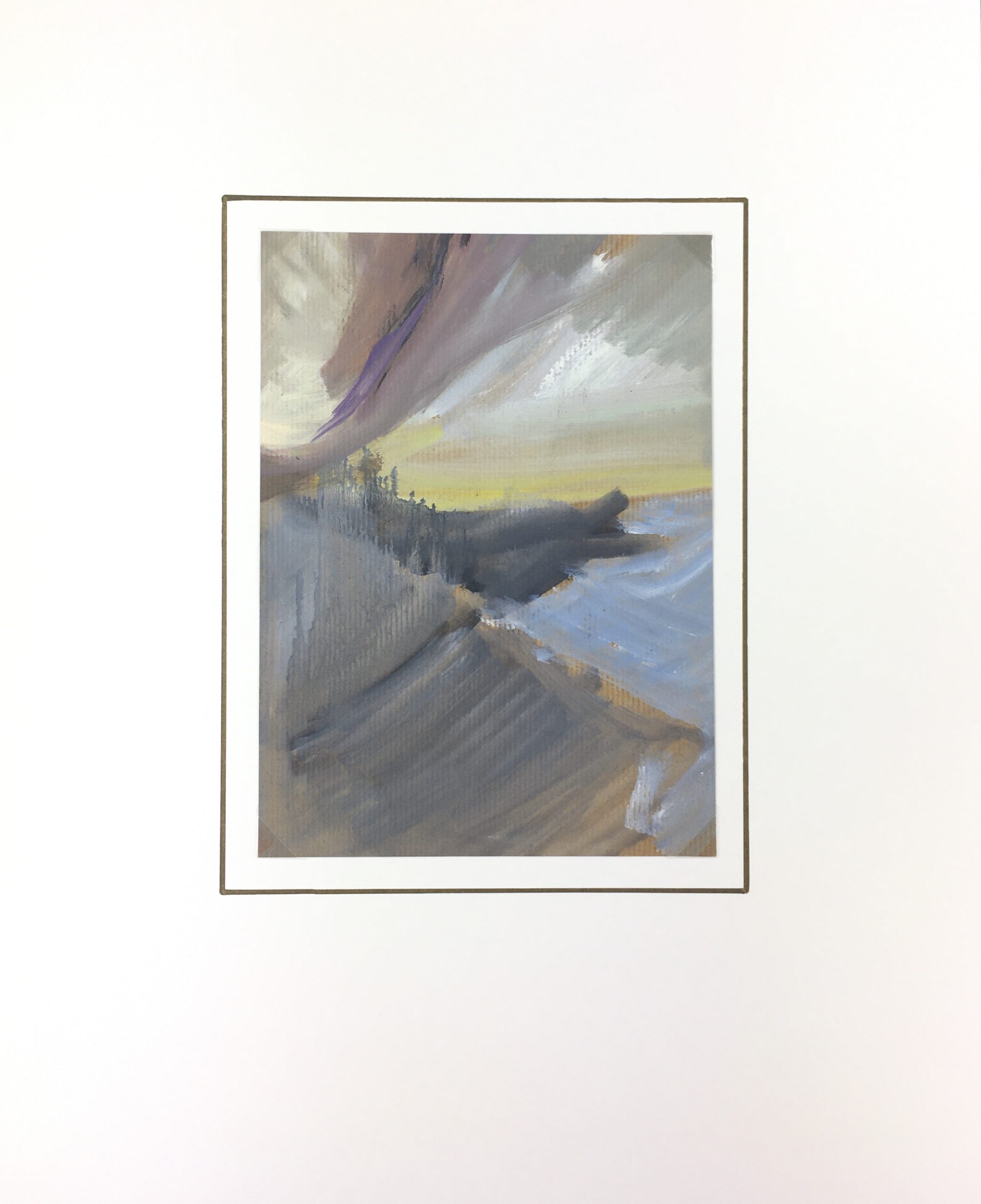 Original Art on paper displayed on a white mat with a gold border. Mat fits a standard-size frame. Archival plastic sleeve and Certificate of Authenticity included. Original Art, 7.5″W x 10″H; mat, 16″W x 20″H.