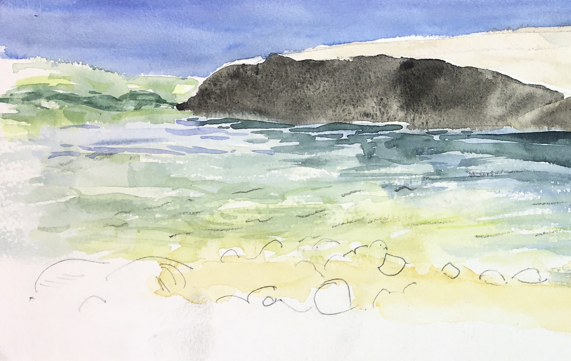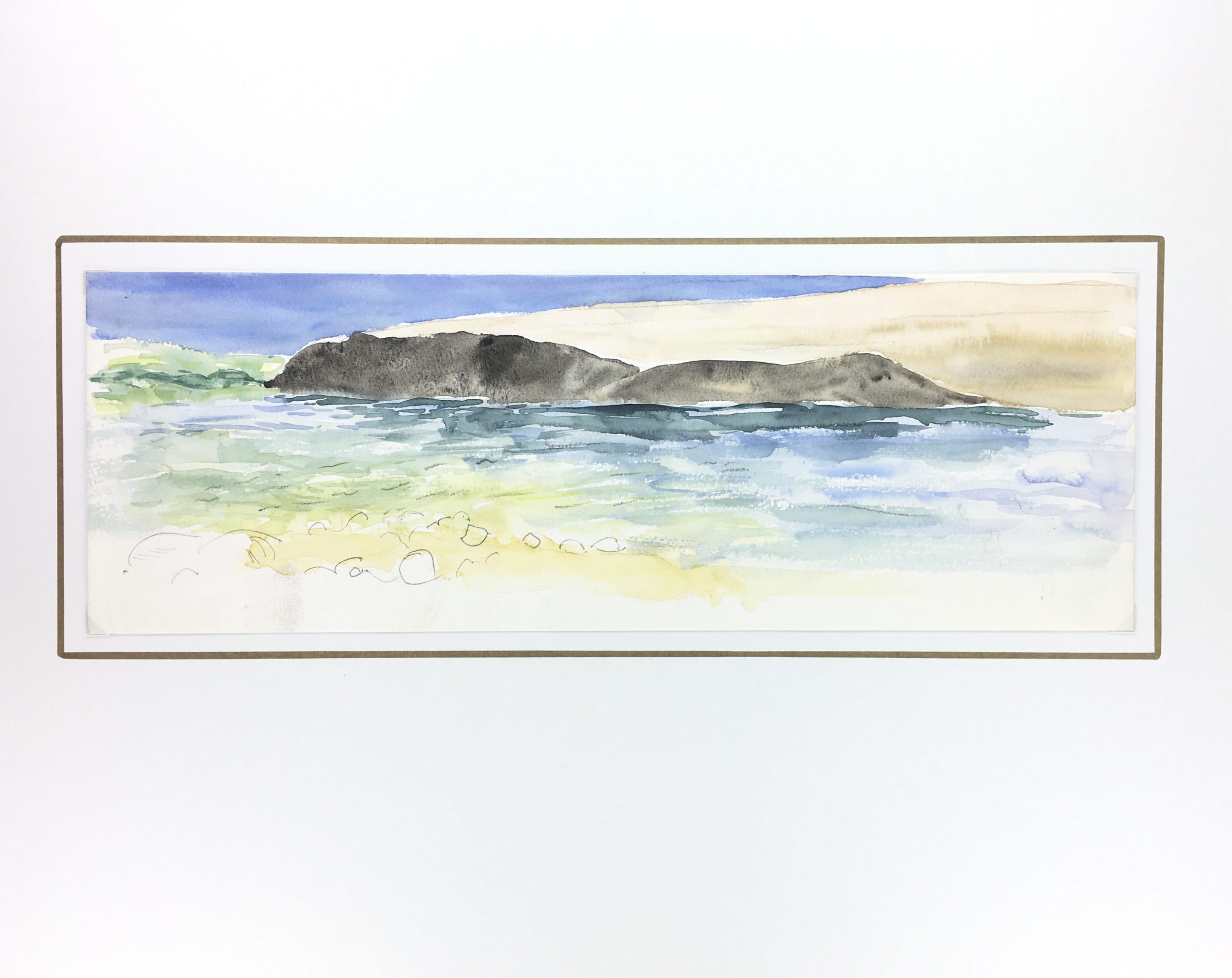 Original Art on paper displayed on a white mat with a gold border. Mat fits a standard-size frame. Archival plastic sleeve and Certificate of Authenticity included. Original Art, 16.25″W x 5.5″H; mat, 16″W x 20″H.