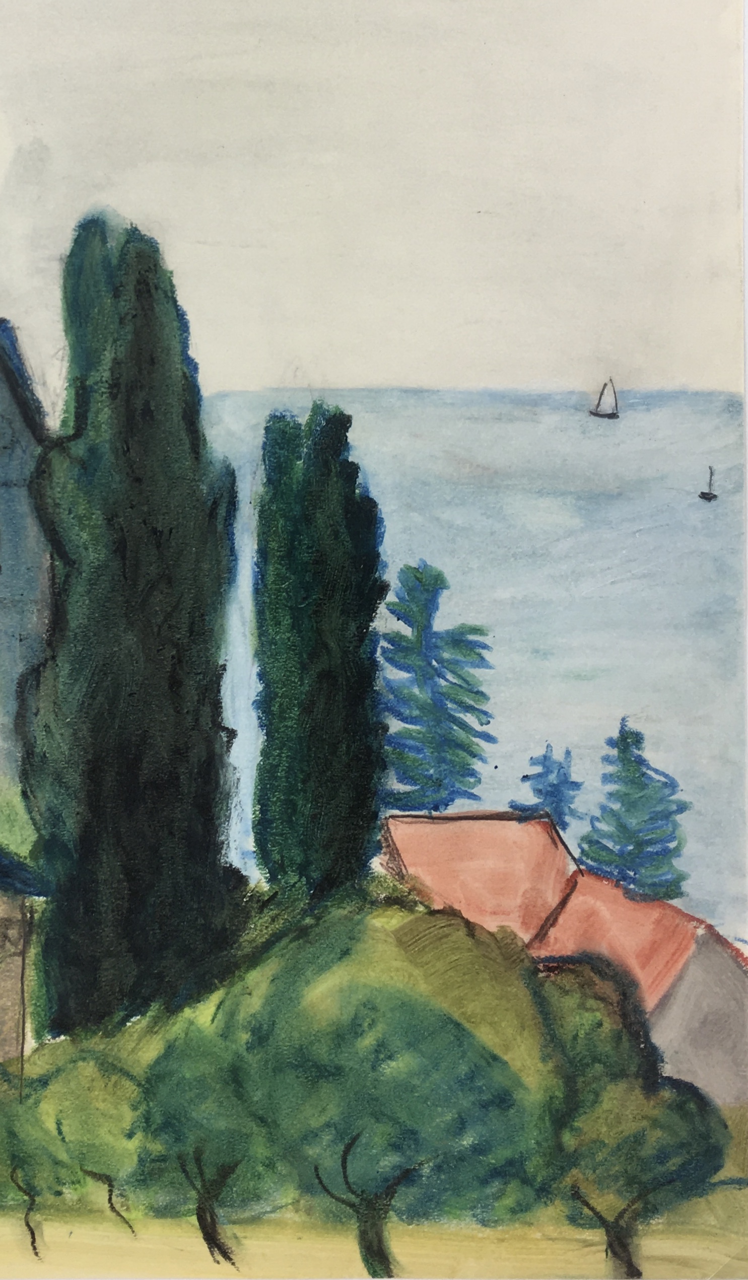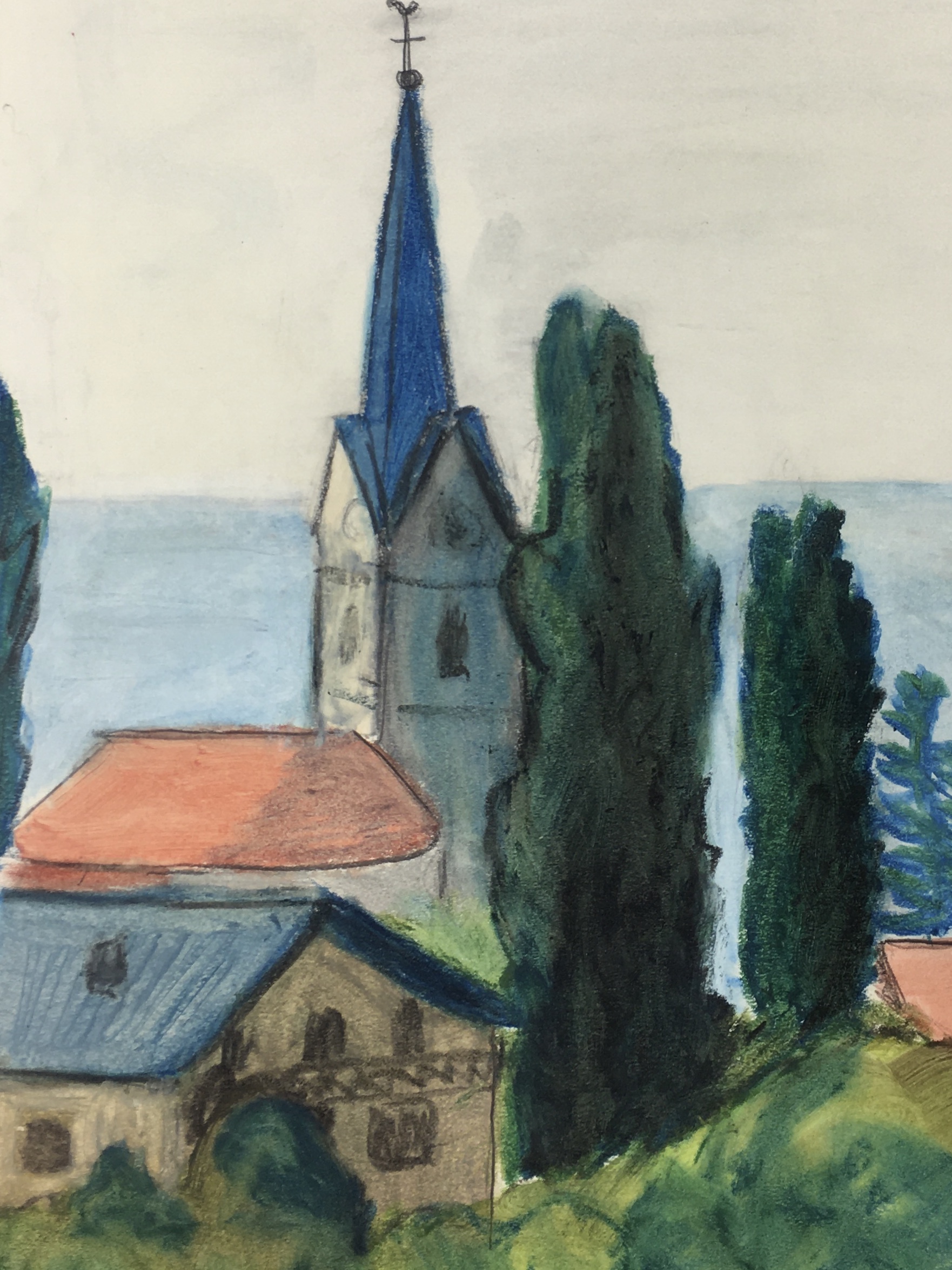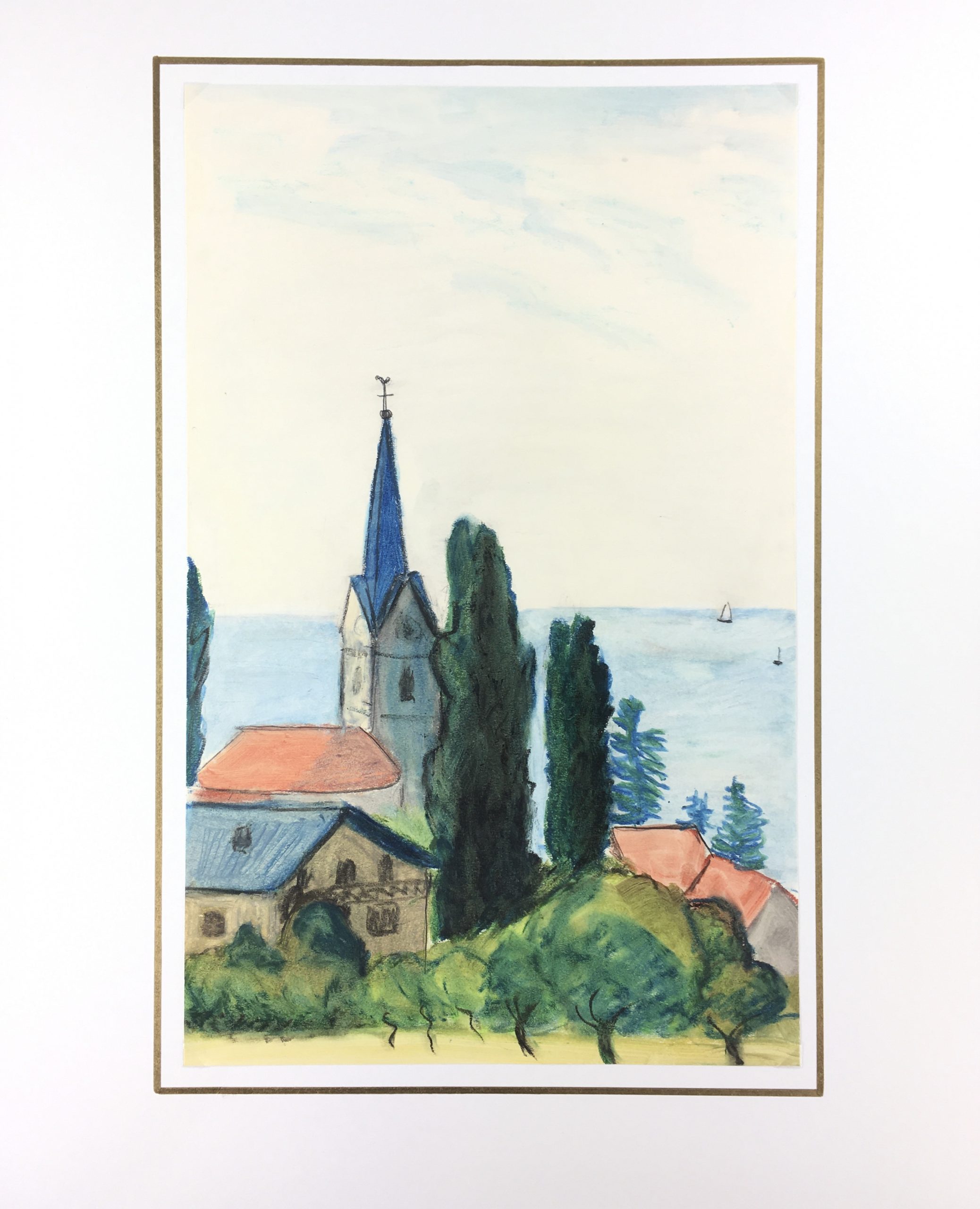 Original Art on paper displayed on a white mat with a gold border. Mat fits a standard-size frame. Archival plastic sleeve and Certificate of Authenticity included. Original Art, 10″W x 15.75″H; mat, 16″W x 20″H.