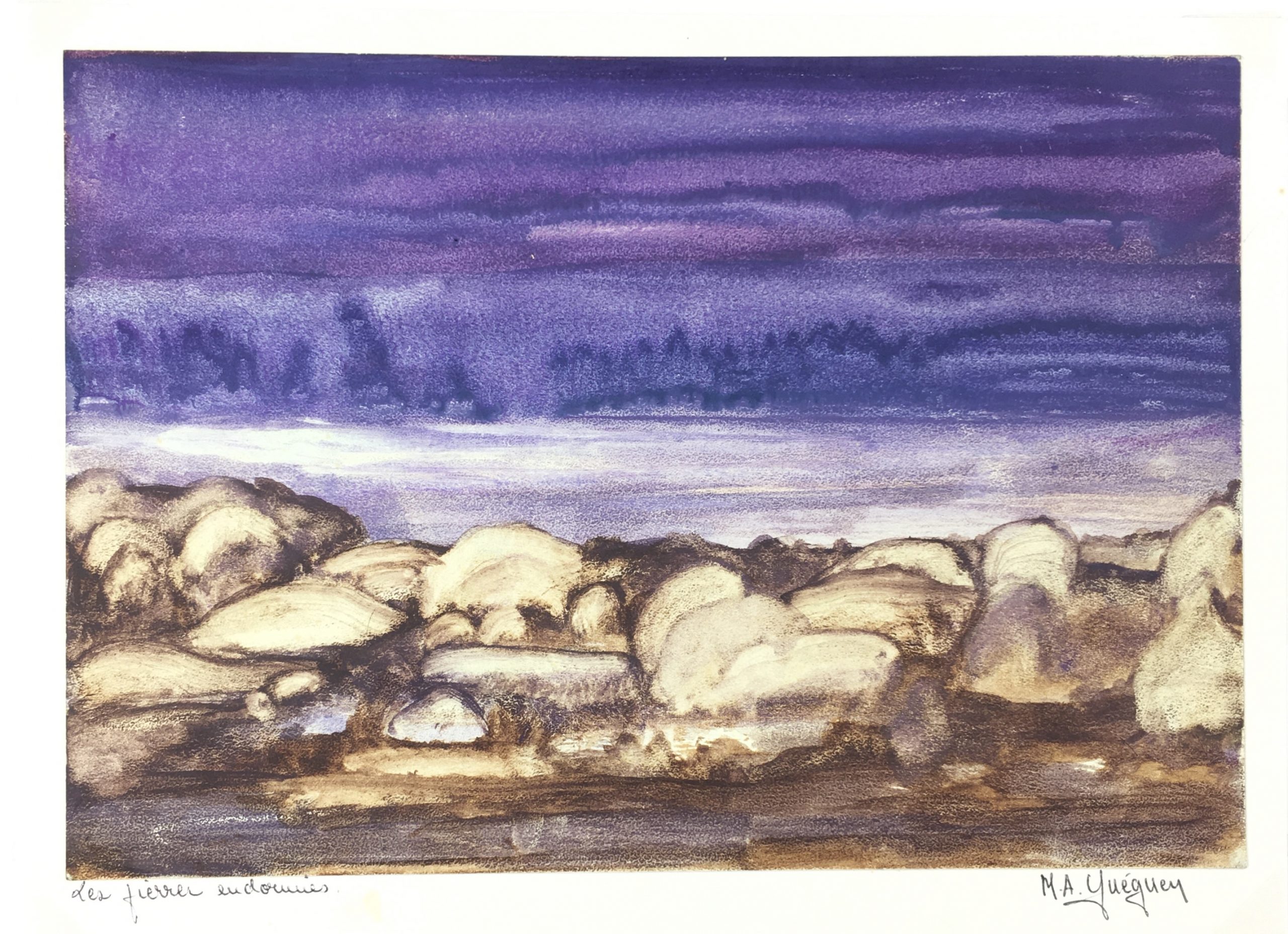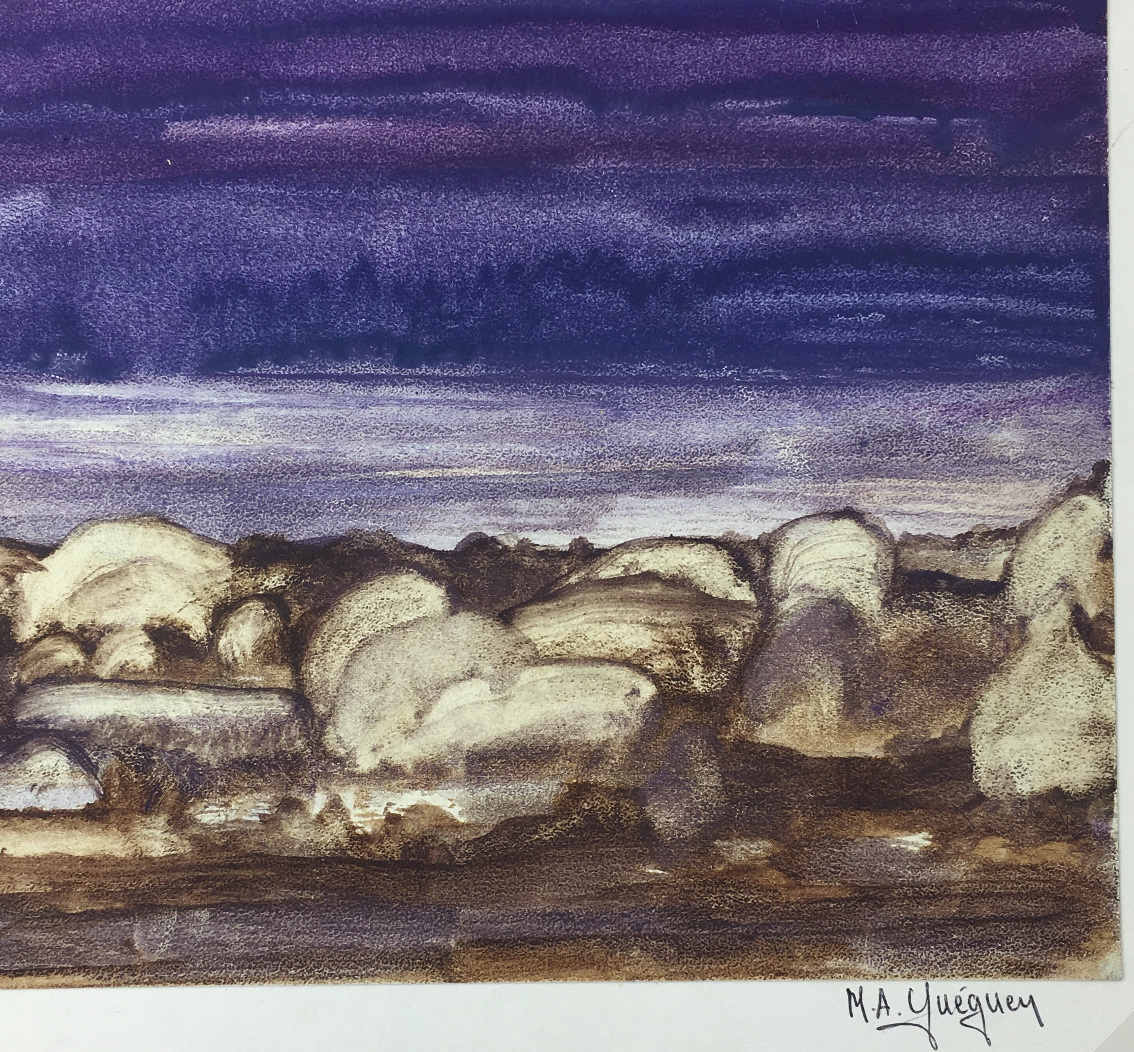 Original Art on paper displayed on a white mat with a gold border. Mat fits a standard-size frame. Archival plastic sleeve and Certificate of Authenticity included. Original Art, 9.75″W x 7.25″H; mat, 16″W x 20″H.