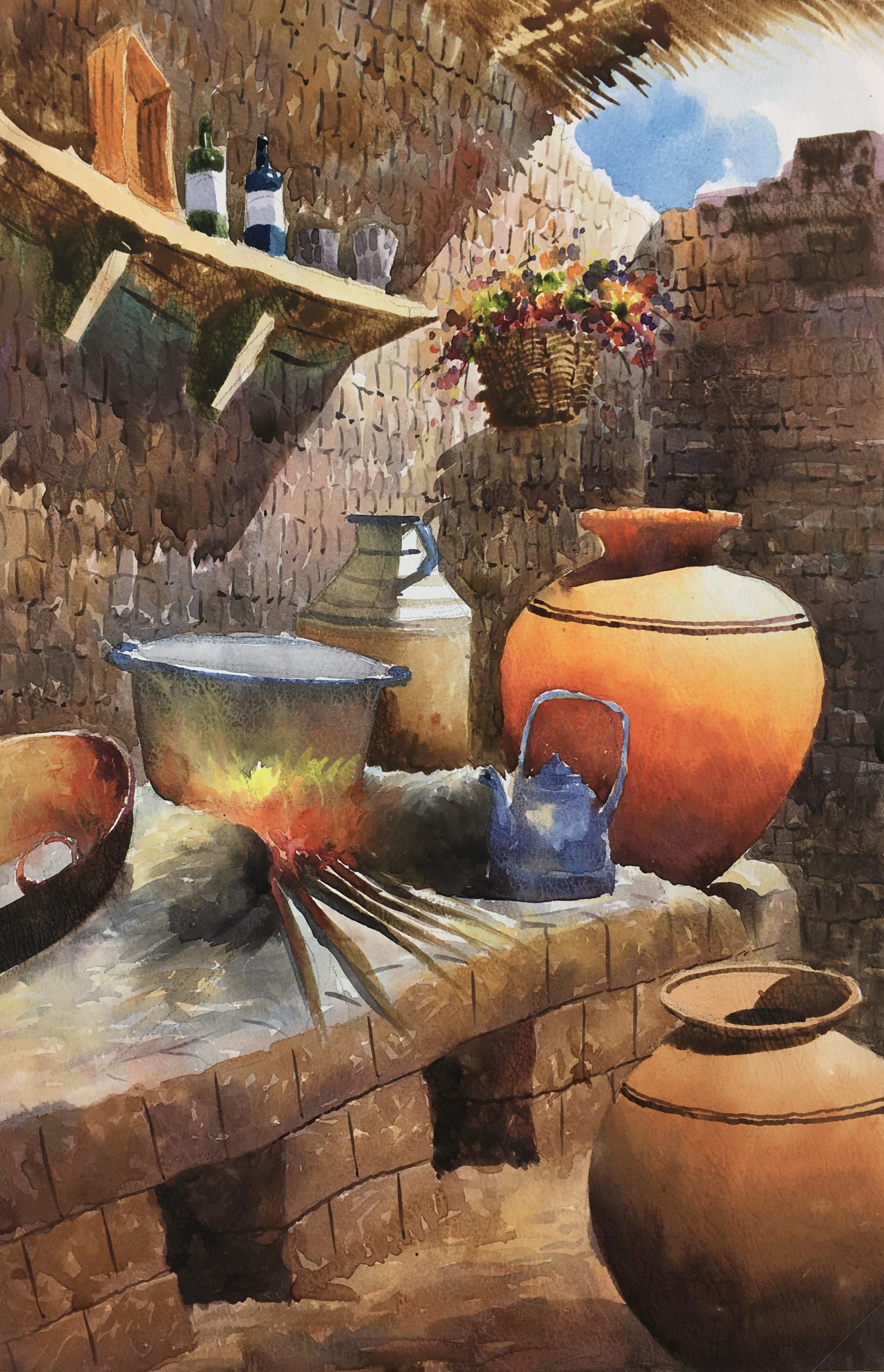 Original Art on paper displayed on a white mat with a gold border. Mat fits a standard-size frame. Archival plastic sleeve and Certificate of Authenticity included. Original Art, 12.5″W x 19.5″H; mat, 18″W x 24″H.