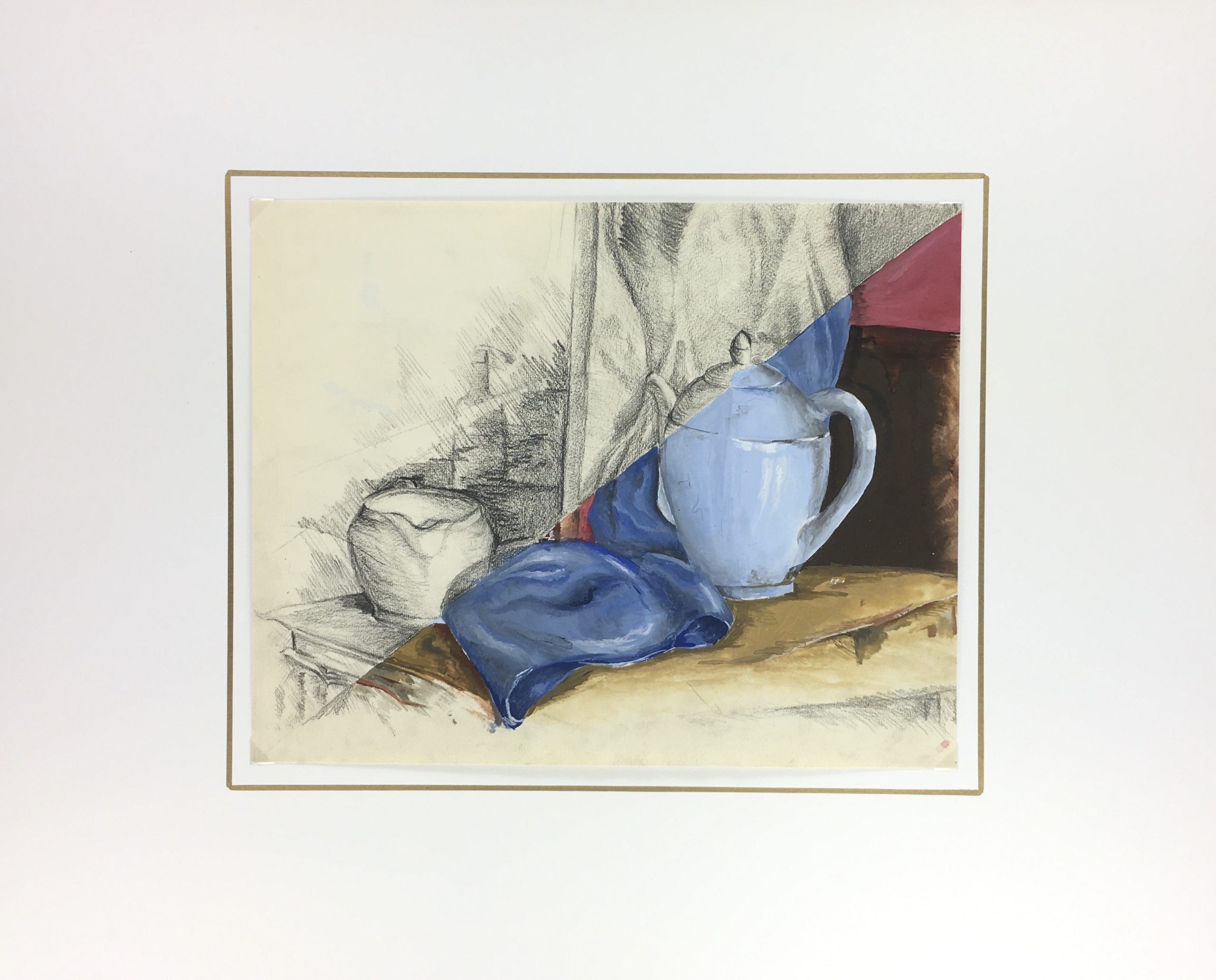 Original Art on paper displayed on a white mat with a gold border. Mat fits a standard-size frame. Archival plastic sleeve and Certificate of Authenticity included. Original Art, 11.5″W x 9″H; mat, 20″W x 16″H.