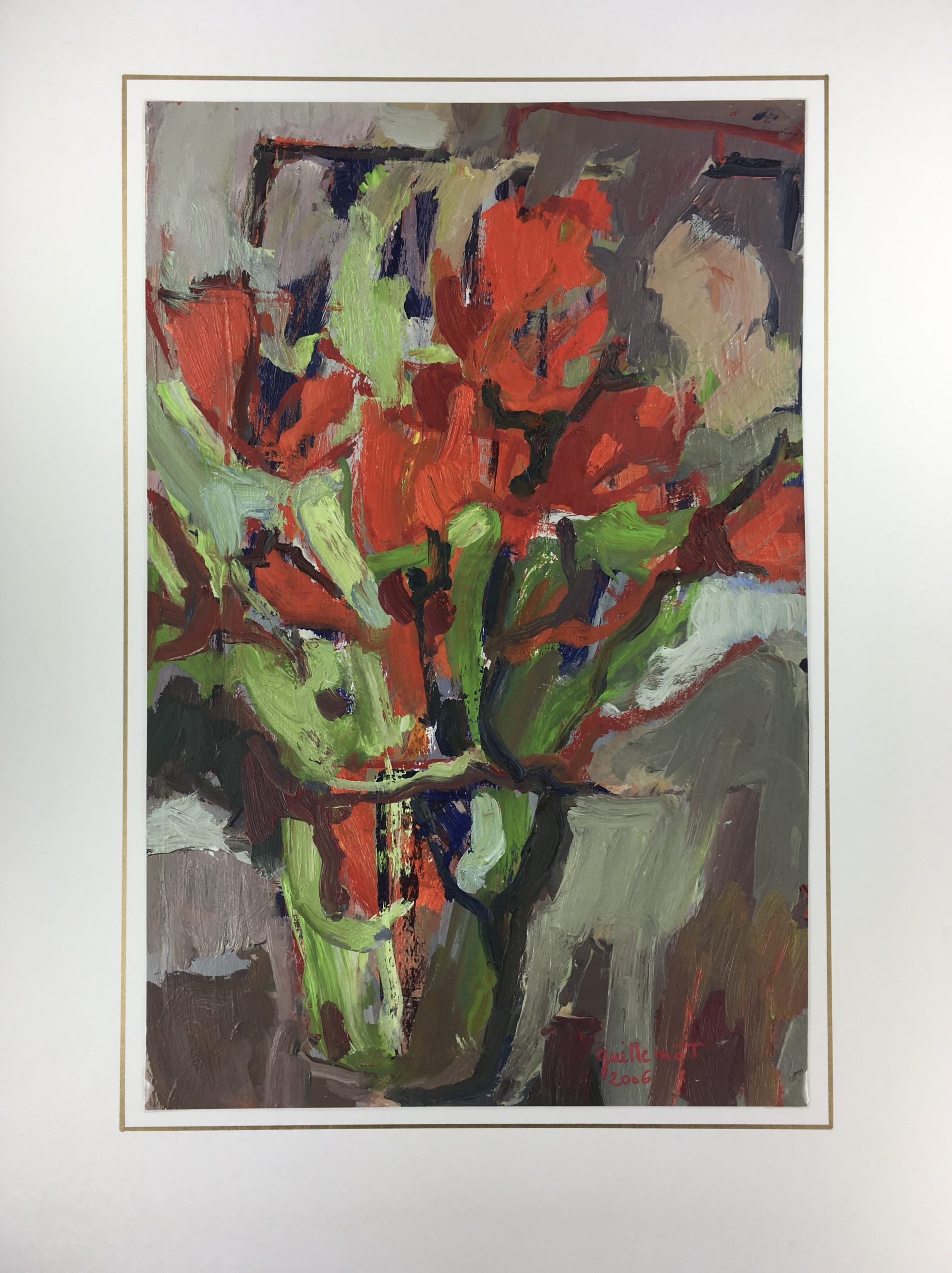 Original Art on paper displayed on a white mat with a gold border. Mat fits a standard-size frame. Archival plastic sleeve and Certificate of Authenticity included. Original Art, 12.5″W x 18.5″H; mat, 18″W x 24″H.