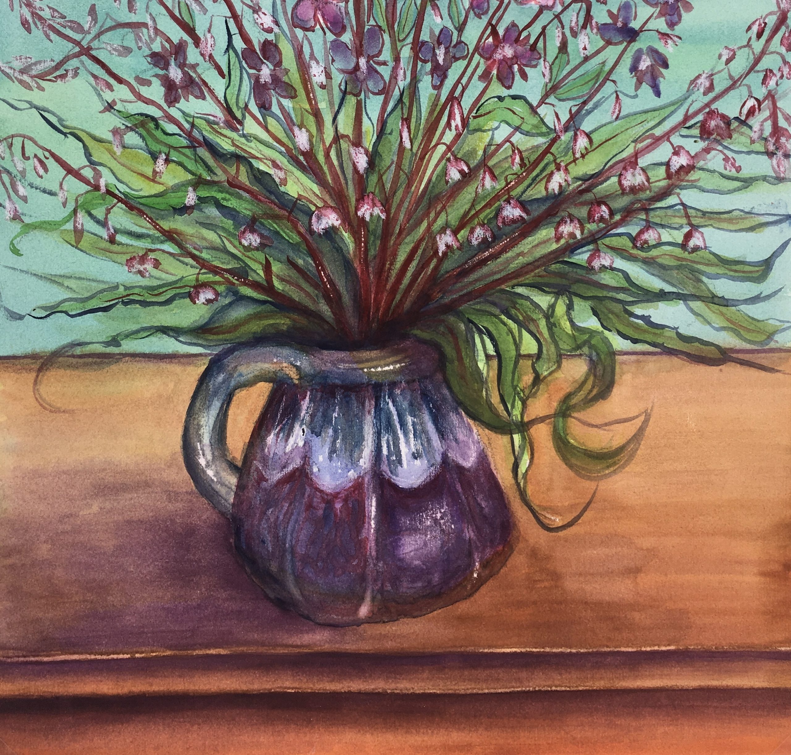 Original Art on paper displayed on a white mat with a gold border. Mat fits a standard-size frame. Archival plastic sleeve and Certificate of Authenticity included. Original Art, 12″W x 17.75″H; mat, 18″W x 24″H.