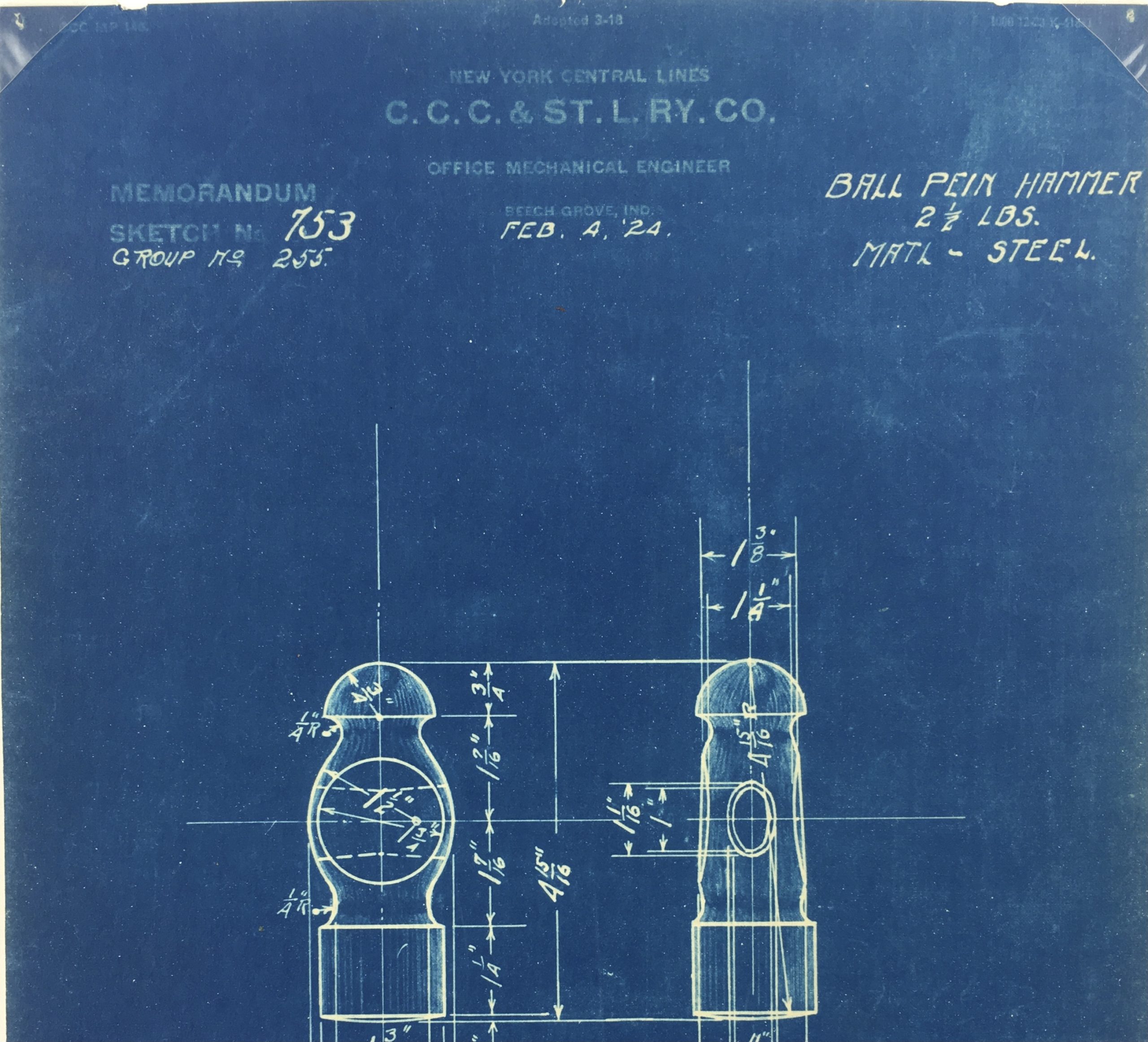 Technical Drawing Original Art – Blueprint, New York Central Rail, 1924