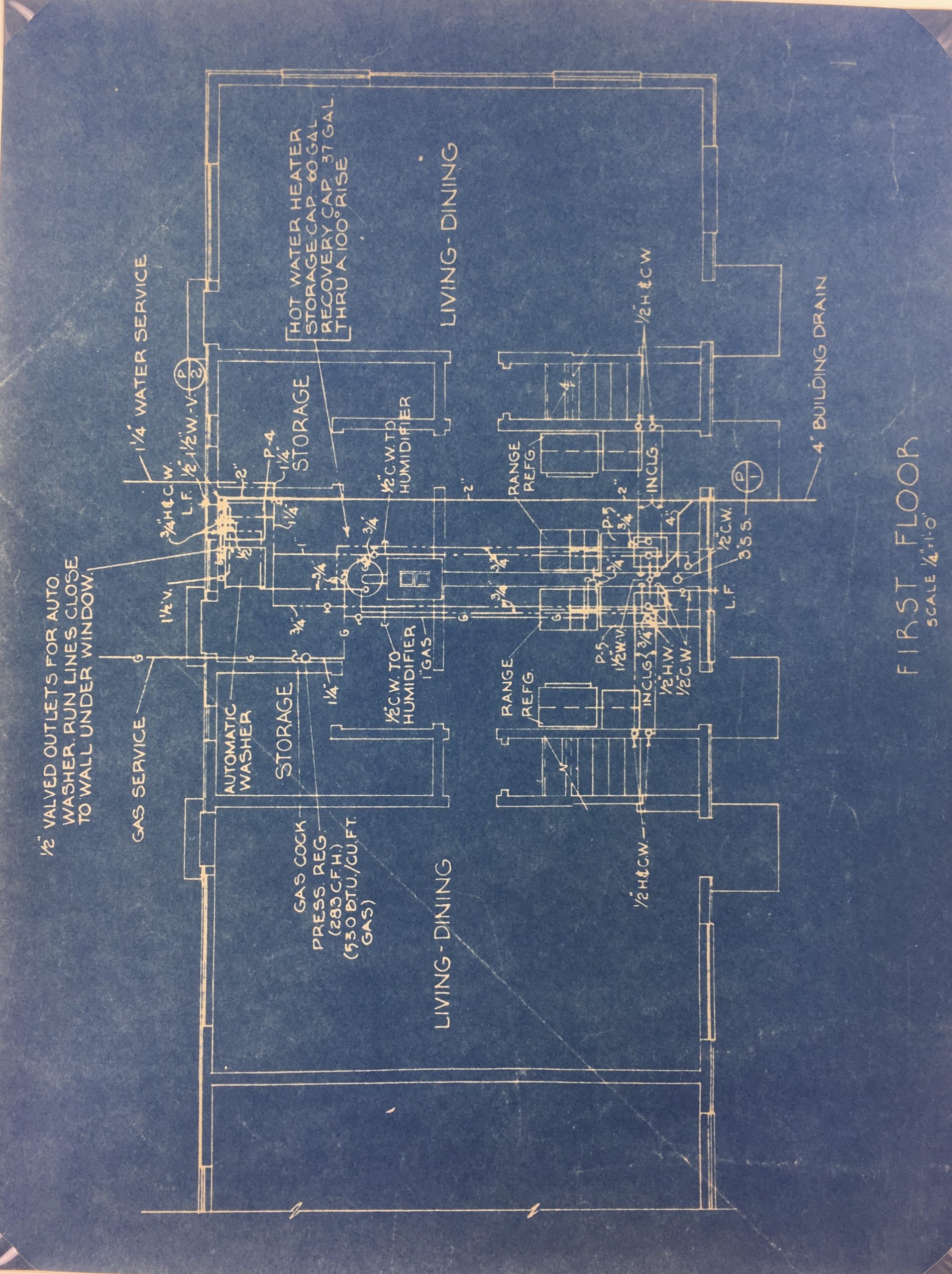 Technical Drawing Original Art – Living Quarters, USACE, 1950