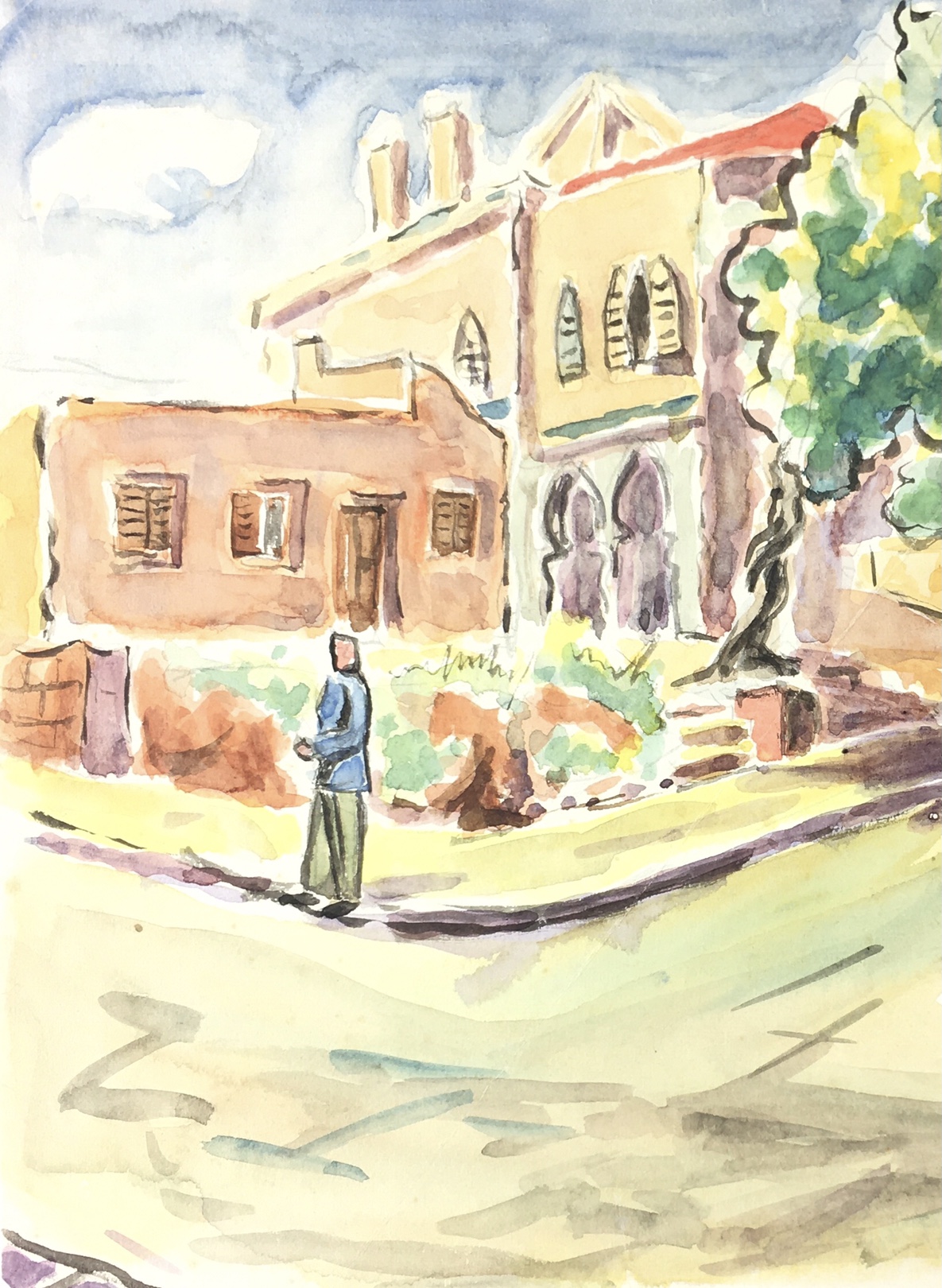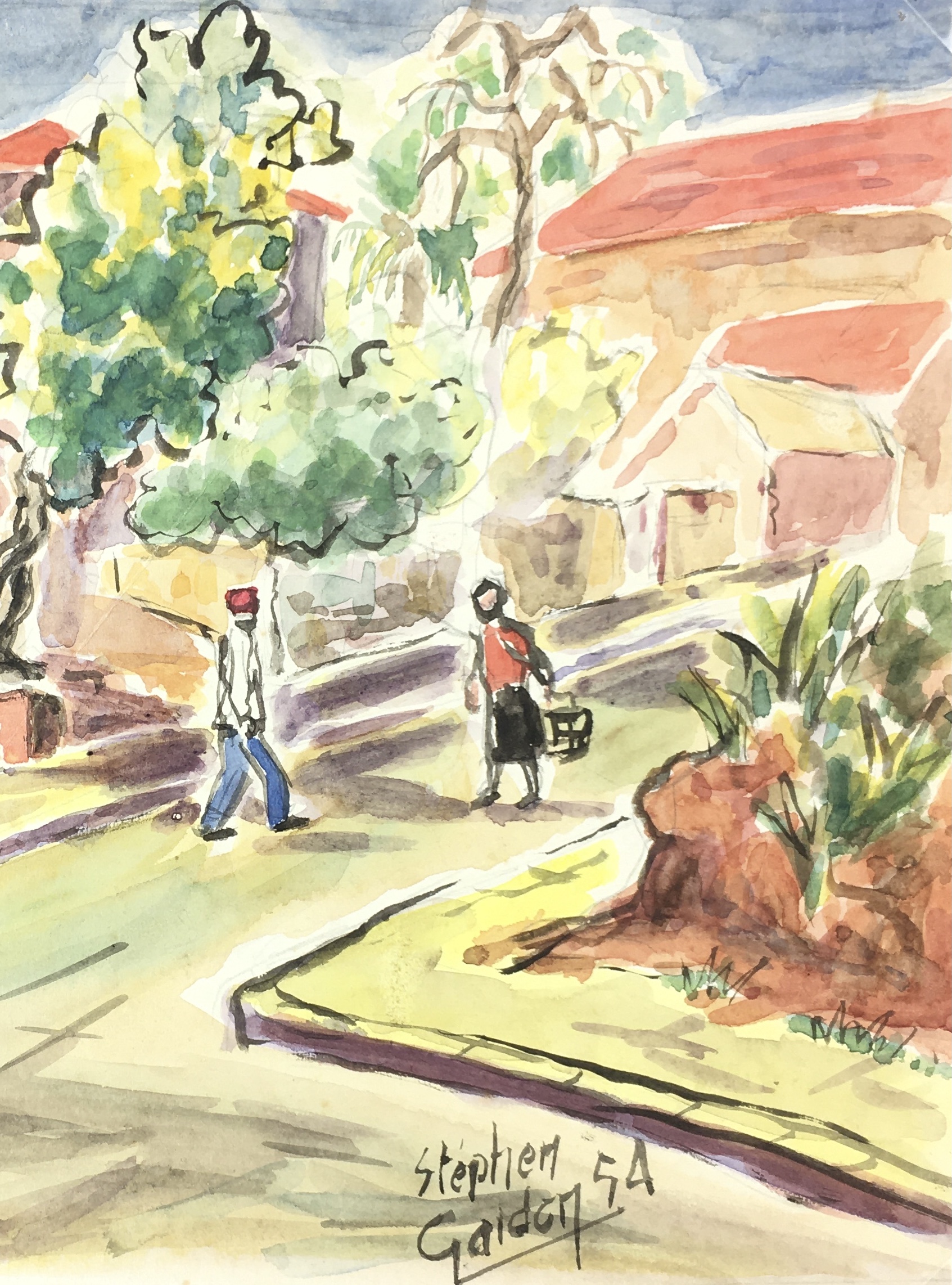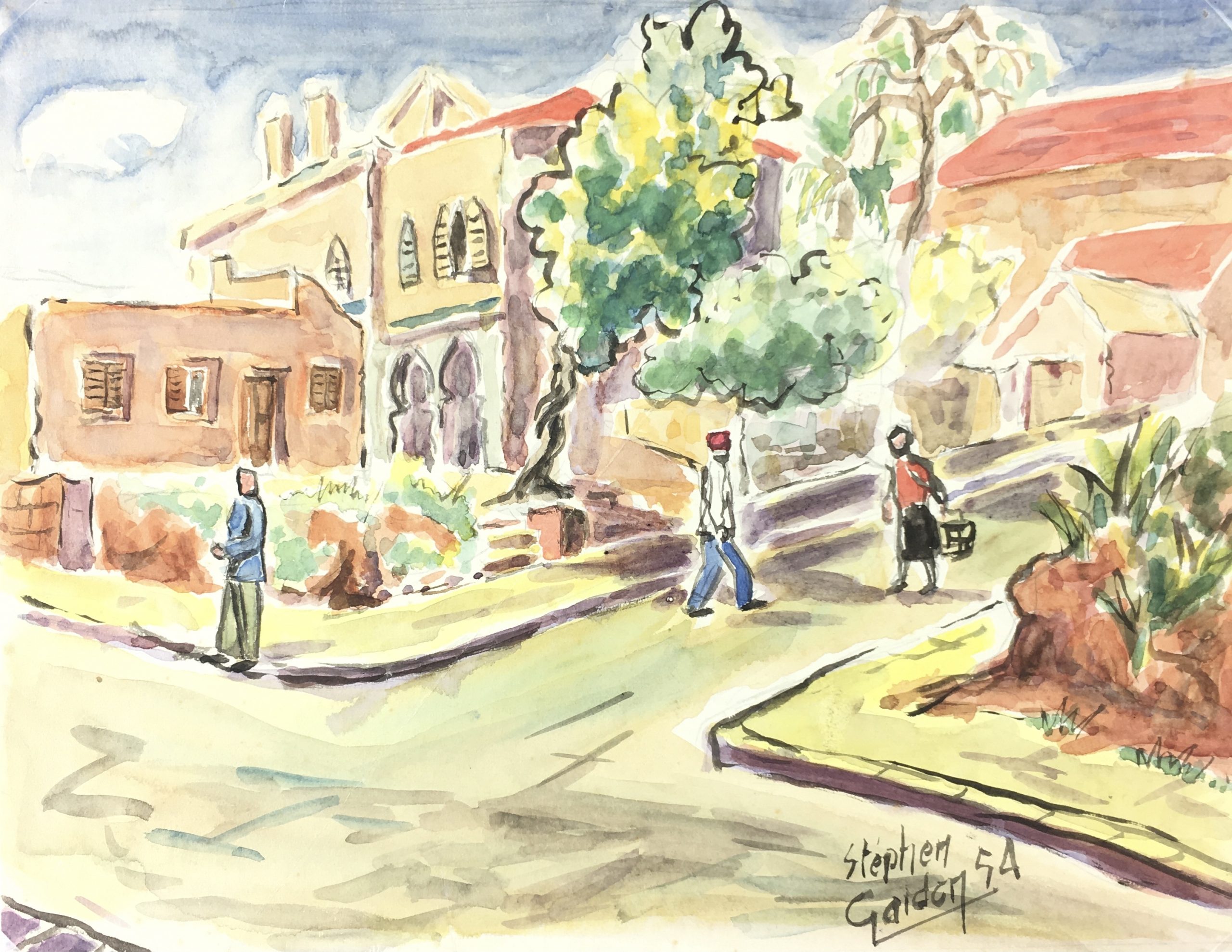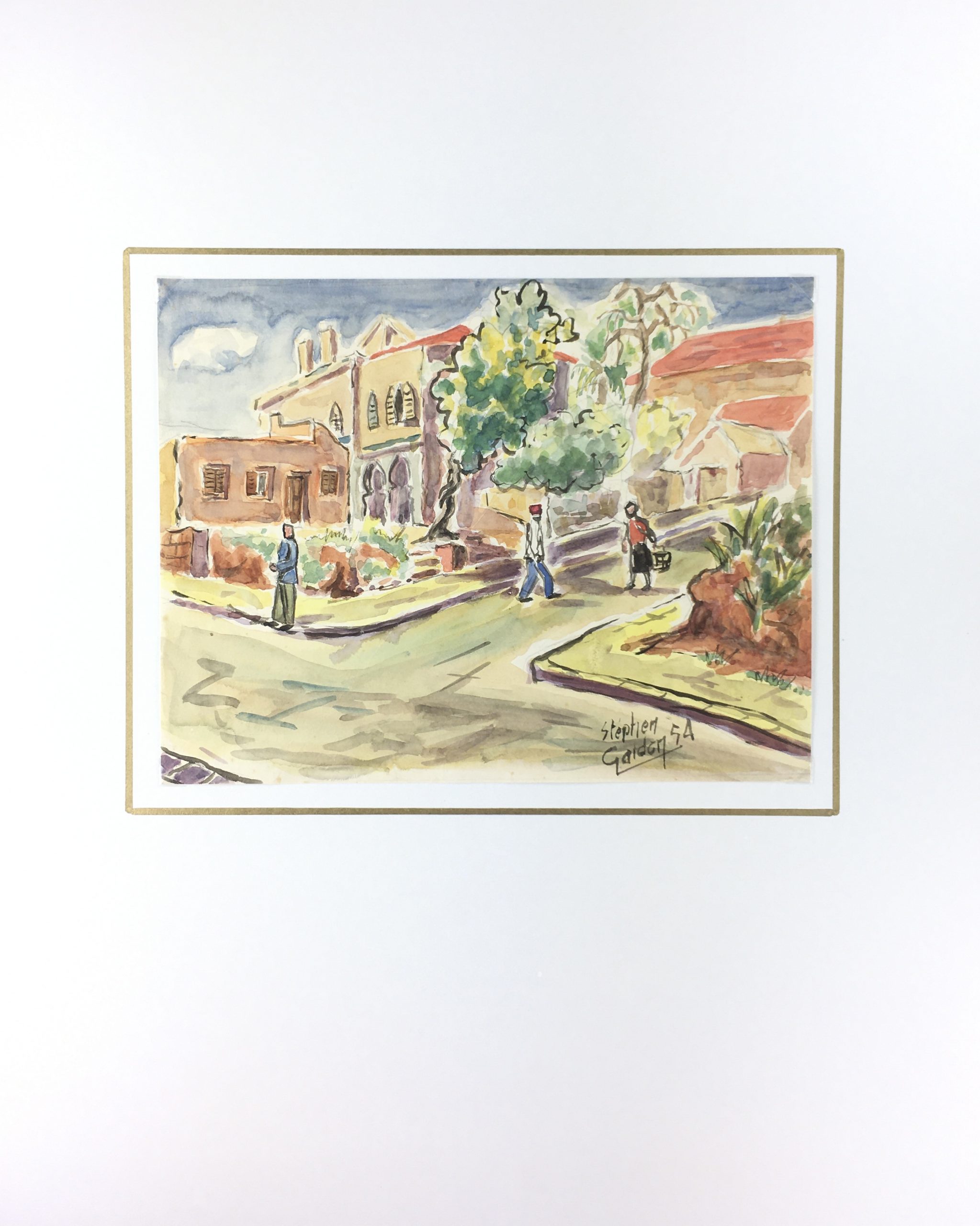 Original Art on paper displayed on a white mat with a gold border. Mat fits a standard-size frame. Archival plastic sleeve and Certificate of Authenticity included. Original Art, 10.25″W x 7.75″H; mat, 16″W x 20″H.