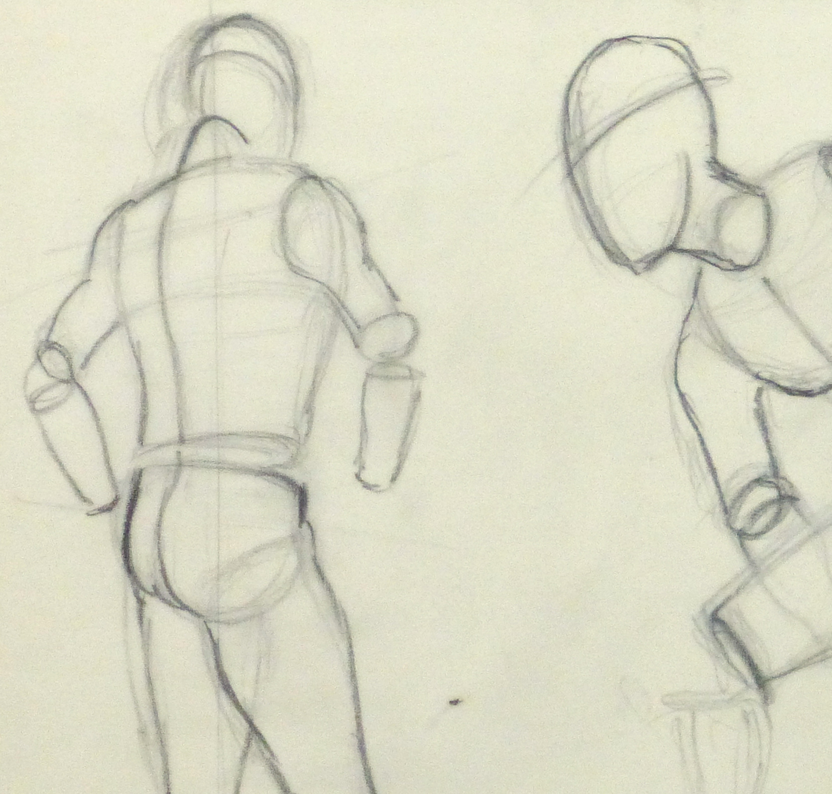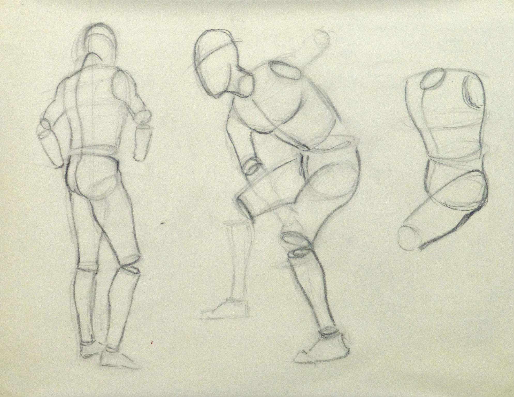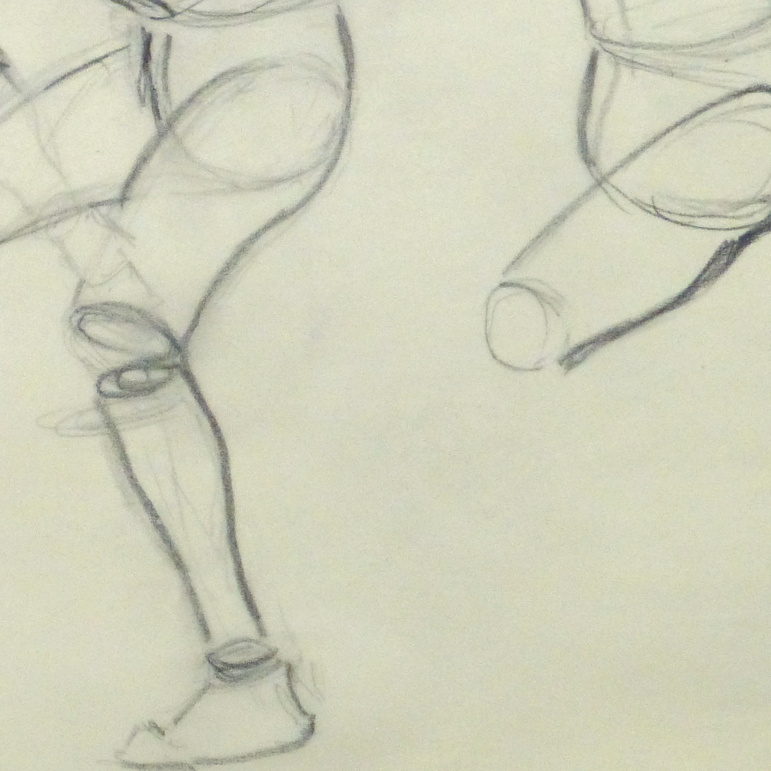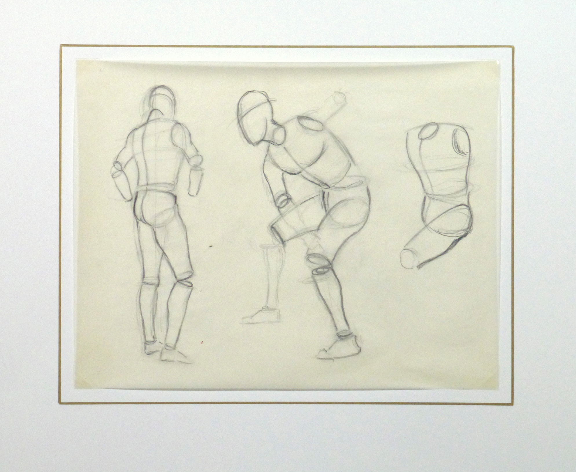Excellent pencil sketch of figures in different poses of motion by Werner Bell (1895-1976), circa 1960. Unsigned.