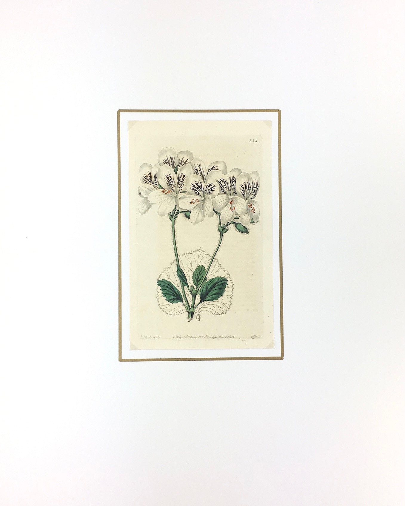 Vintage Print on paper displayed on a white mat with a gold border. Mat fits a standard-size frame. Archival plastic sleeve and Certificate of Authenticity included. Vintage Print, 5.25″W x 8.75″H; mat, 16″W x 20″H.