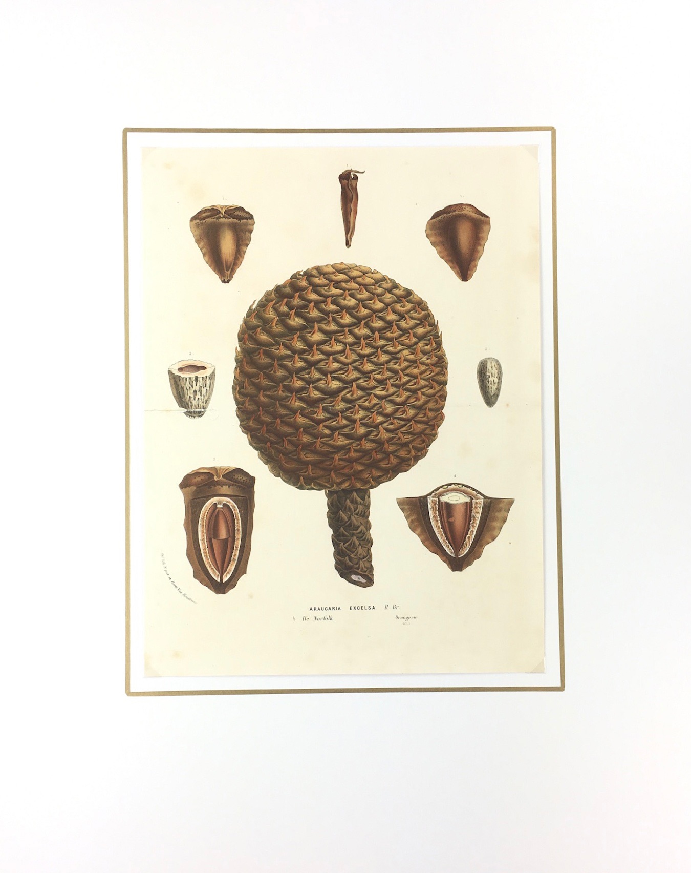 Vintage Print on paper displayed on a white mat with a gold border. Mat fits a standard-size frame. Archival plastic sleeve and Certificate of Authenticity included. Vintage Print, 8.75″W x 11.75″H; mat, 16″W x 20″H.