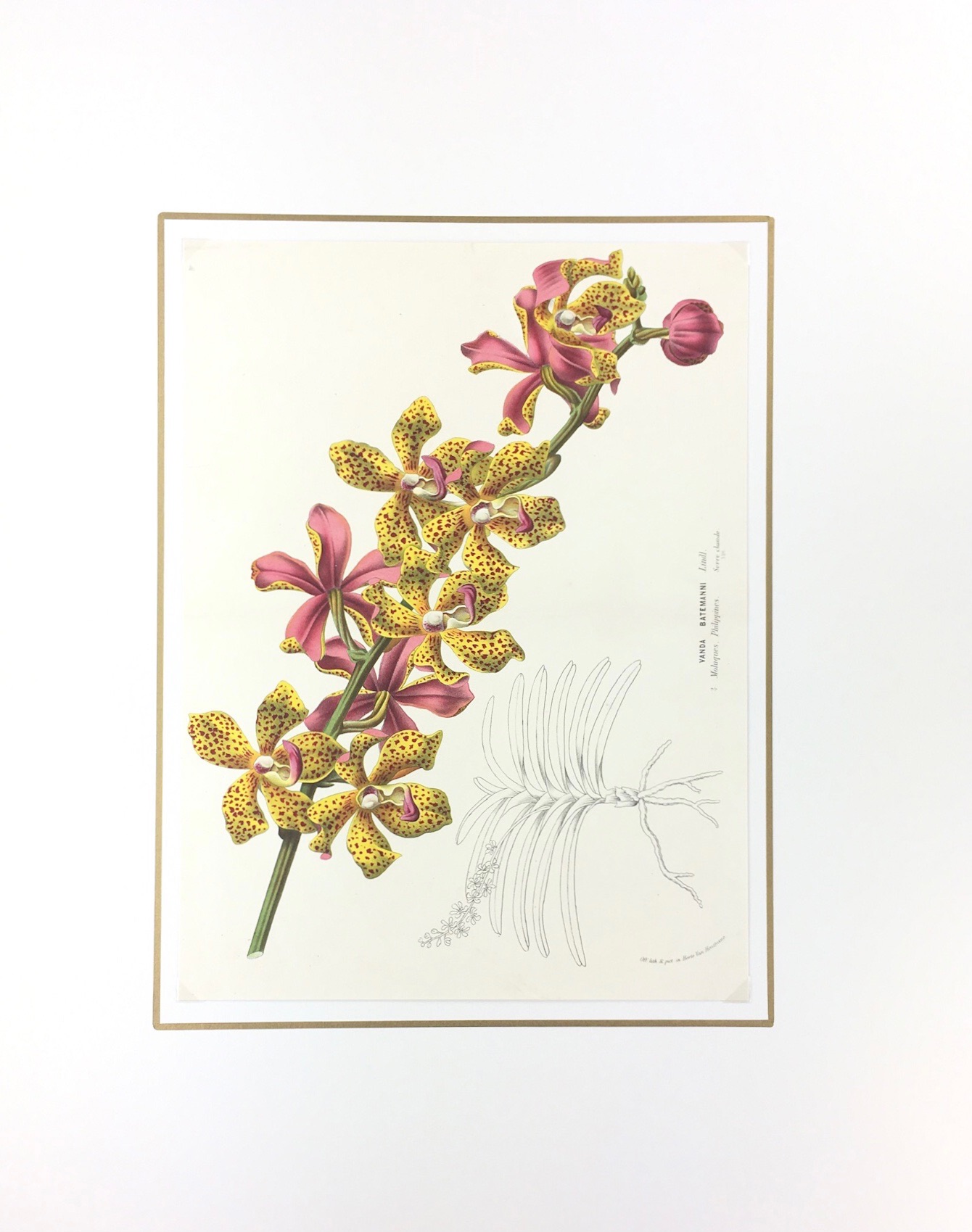 Vintage Print on paper displayed on a white mat with a gold border. Mat fits a standard-size frame. Archival plastic sleeve and Certificate of Authenticity included. Vintage Print, 12″W x 9″H; mat, 16″W x 20″H.