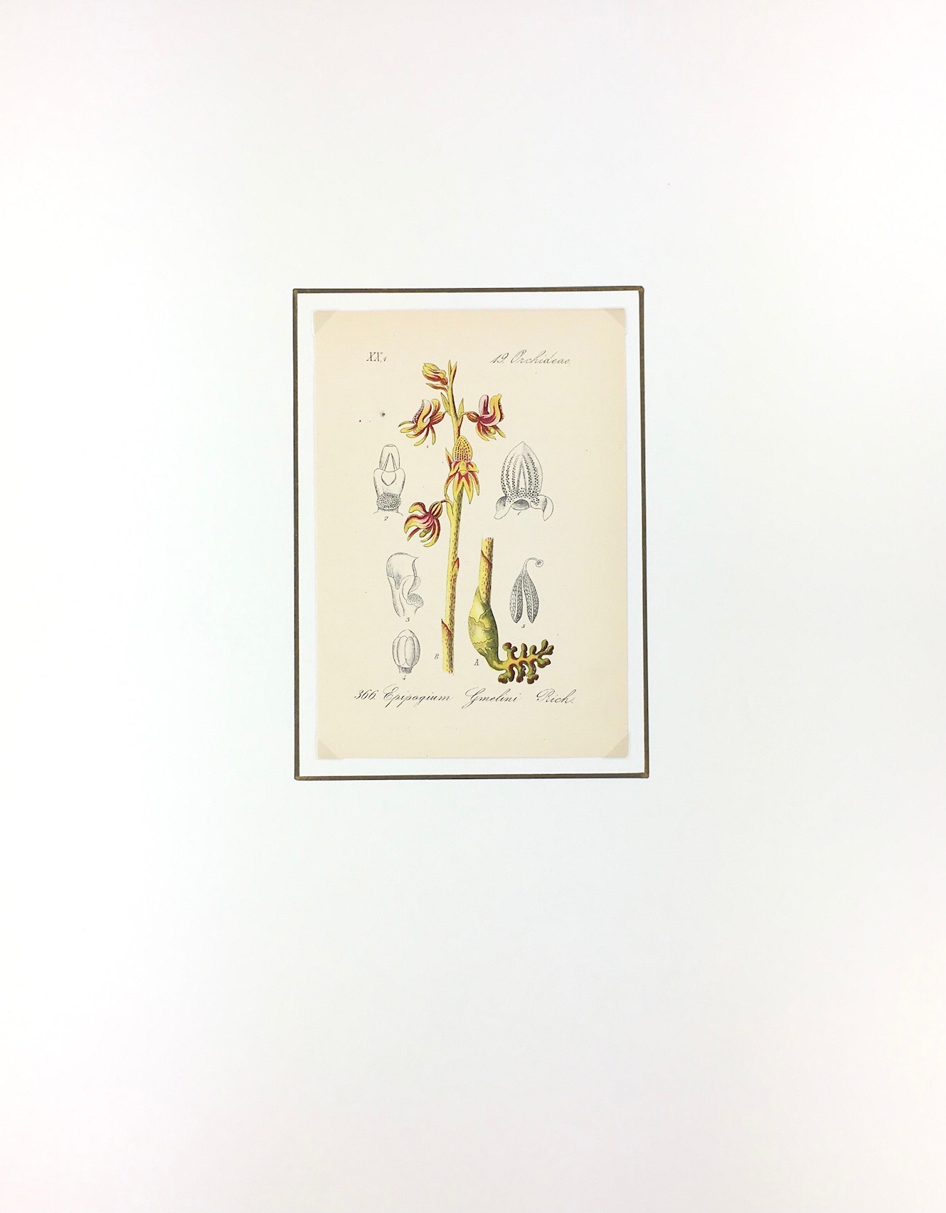Vintage Print on paper displayed on a white mat with a gold border. Mat fits a standard-size frame. Archival plastic sleeve and Certificate of Authenticity included. Vintage Print, 4.75″W x 7″H; mat, 16″W x 20″H.