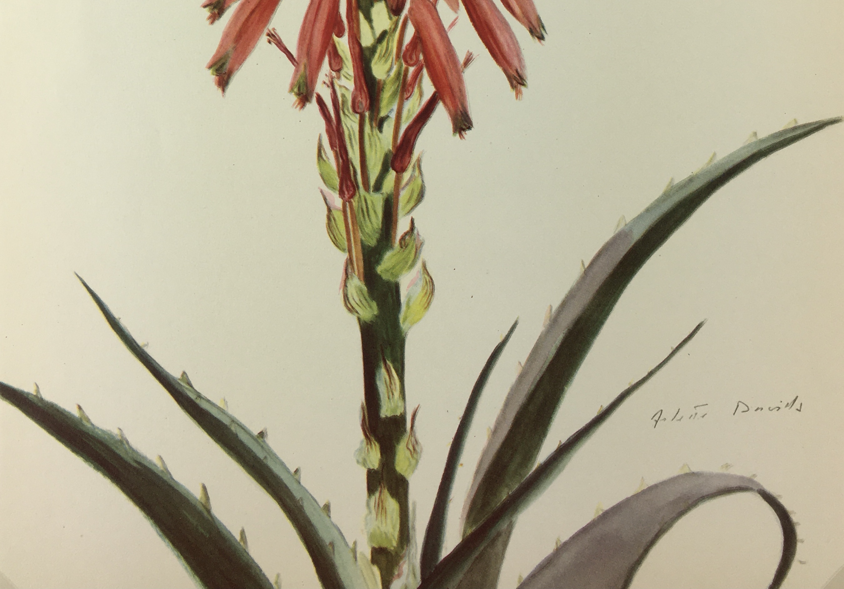 Botanical Cactus Print – Lithograph – Aloe Spinosissima, A. Davis, 1948