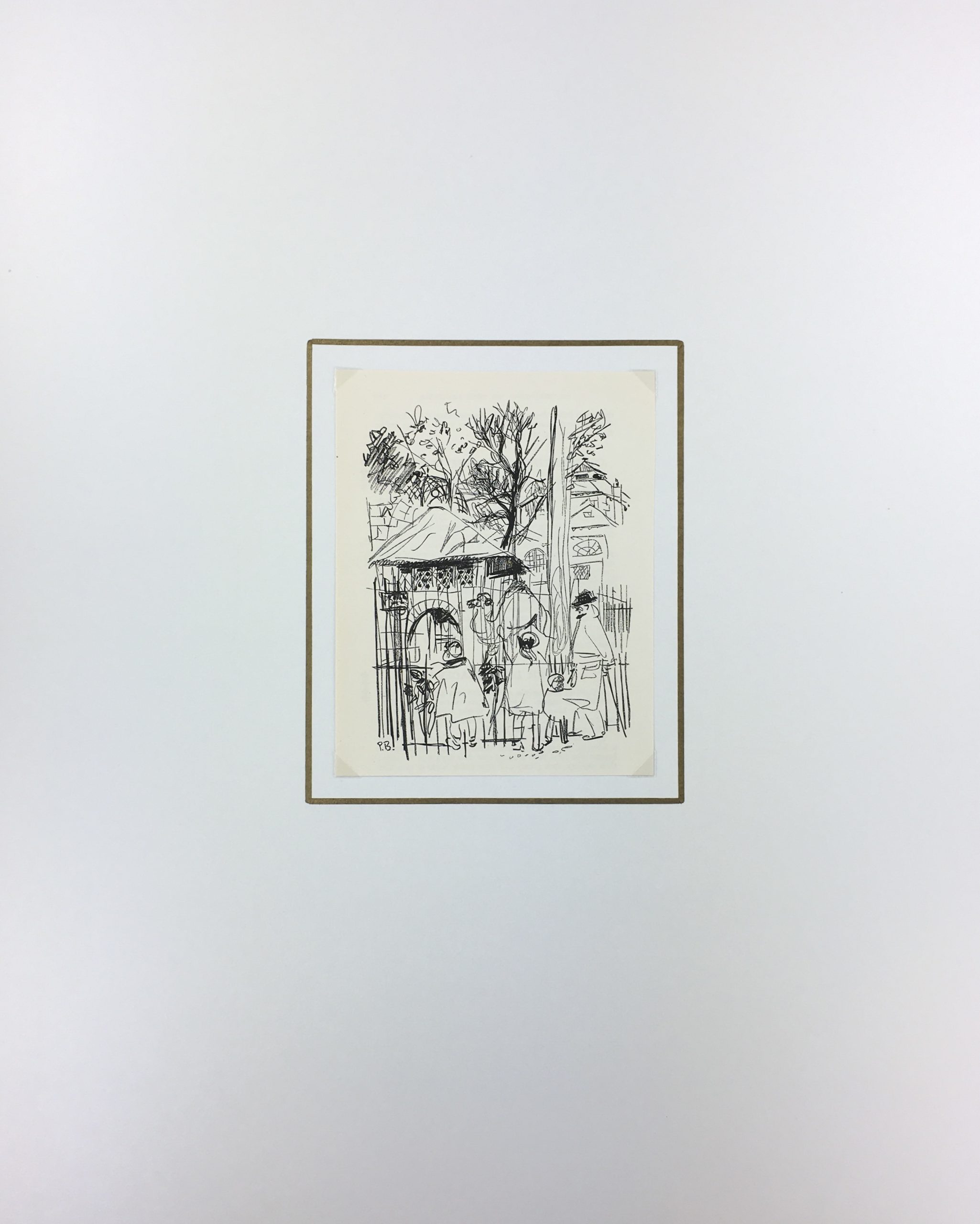 Vintage Print on paper displayed on a white mat with a gold border. Mat fits a standard-size frame. Archival plastic sleeve and Certificate of Authenticity included. Please note we may have more than one of these pieces available for sale, each one varying slightly in the tone of its paper, color tint, and overall condition. As such, the piece you receive may not match this photograph exactly. Vintage Print, 5.25″W x 6.75″H; mat, 16″W x 20″H.