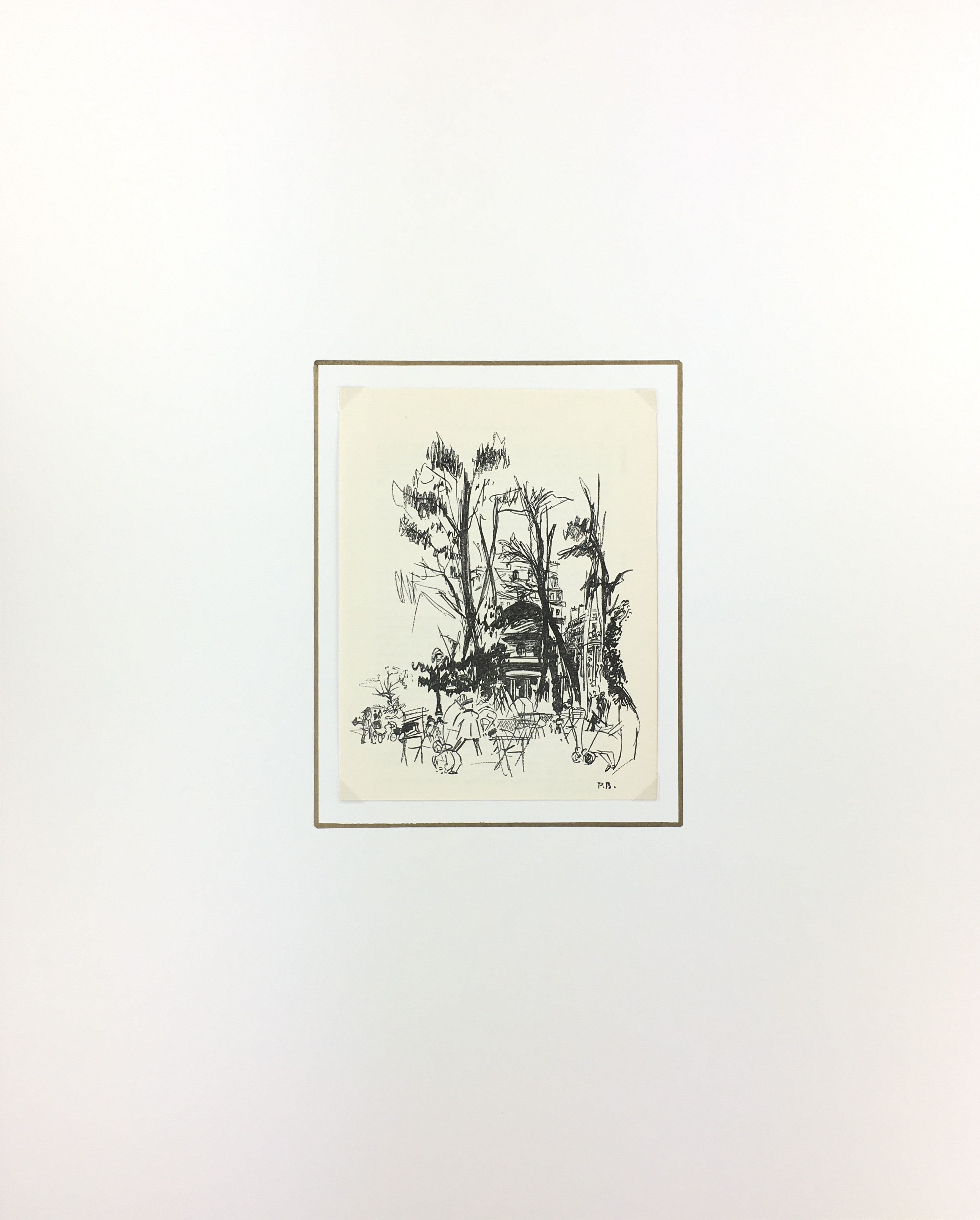 Vintage Print on paper displayed on a white mat with a gold border. Mat fits a standard-size frame. Archival plastic sleeve and Certificate of Authenticity included. Please note we may have more than one of these pieces available for sale, each one varying slightly in the tone of its paper, color tint, and overall condition. As such, the piece you receive may not match this photograph exactly. Vintage Print, 5.25″W x 6.75″H; mat, 16″W x 20″H.