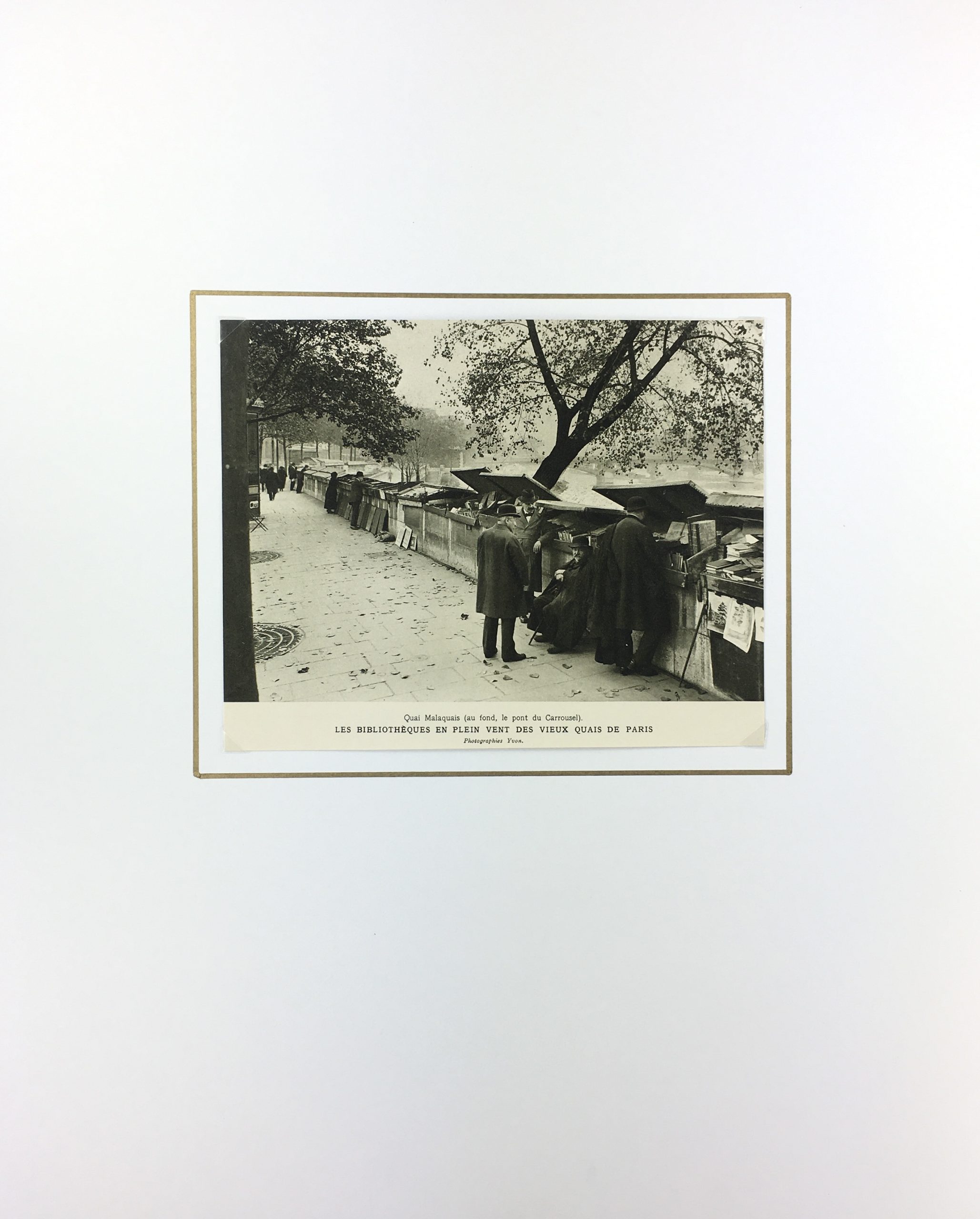 Vintage Print on paper displayed on a white mat with a gold border. Mat fits a standard-size frame. Archival plastic sleeve and Certificate of Authenticity included. Vintage Print, 8.5″W x 9″H; mat, 16″W x 20″H.