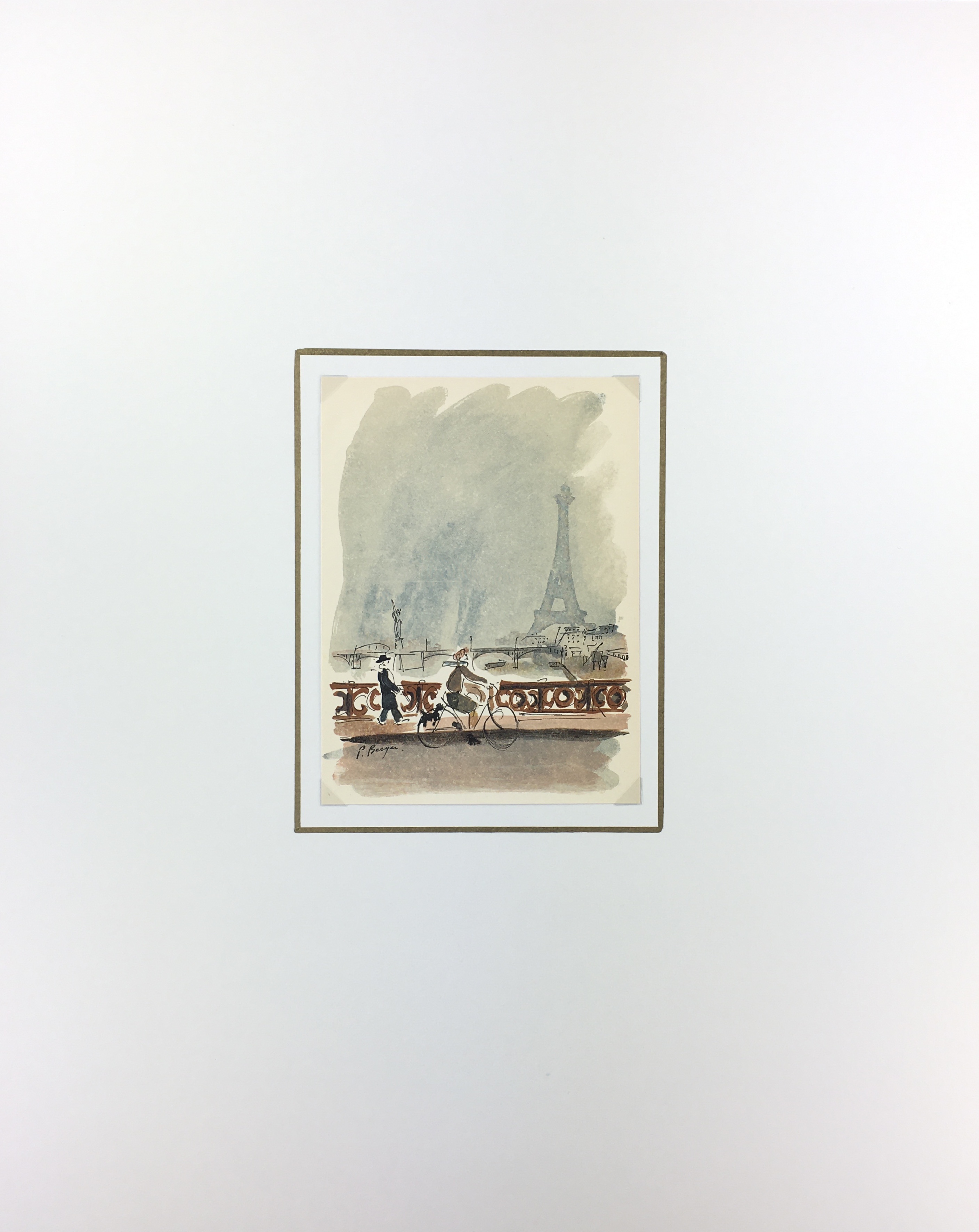 Vintage Print on paper displayed on a white mat with a gold border. Mat fits a standard-size frame. Archival plastic sleeve and Certificate of Authenticity included. Please note we may have more than one of these pieces available for sale, each one varying slightly in the tone of its paper, color tint, and overall condition. As such, the piece you receive may not match this photograph exactly. Vintage Print, 5.25″W x 6.75″H; mat, 16″W x 20″H.