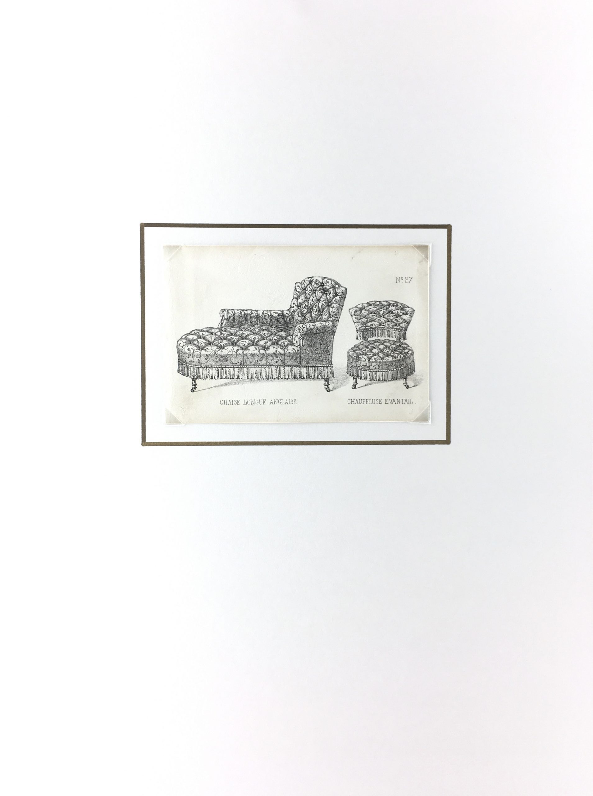 Vintage Print on paper displayed on a white mat with a gold border. Mat fits a standard-size frame. Archival plastic sleeve and Certificate of Authenticity included. Vintage Print, 5.25″W x 3.5″H; mat, 12″W x 16″H.