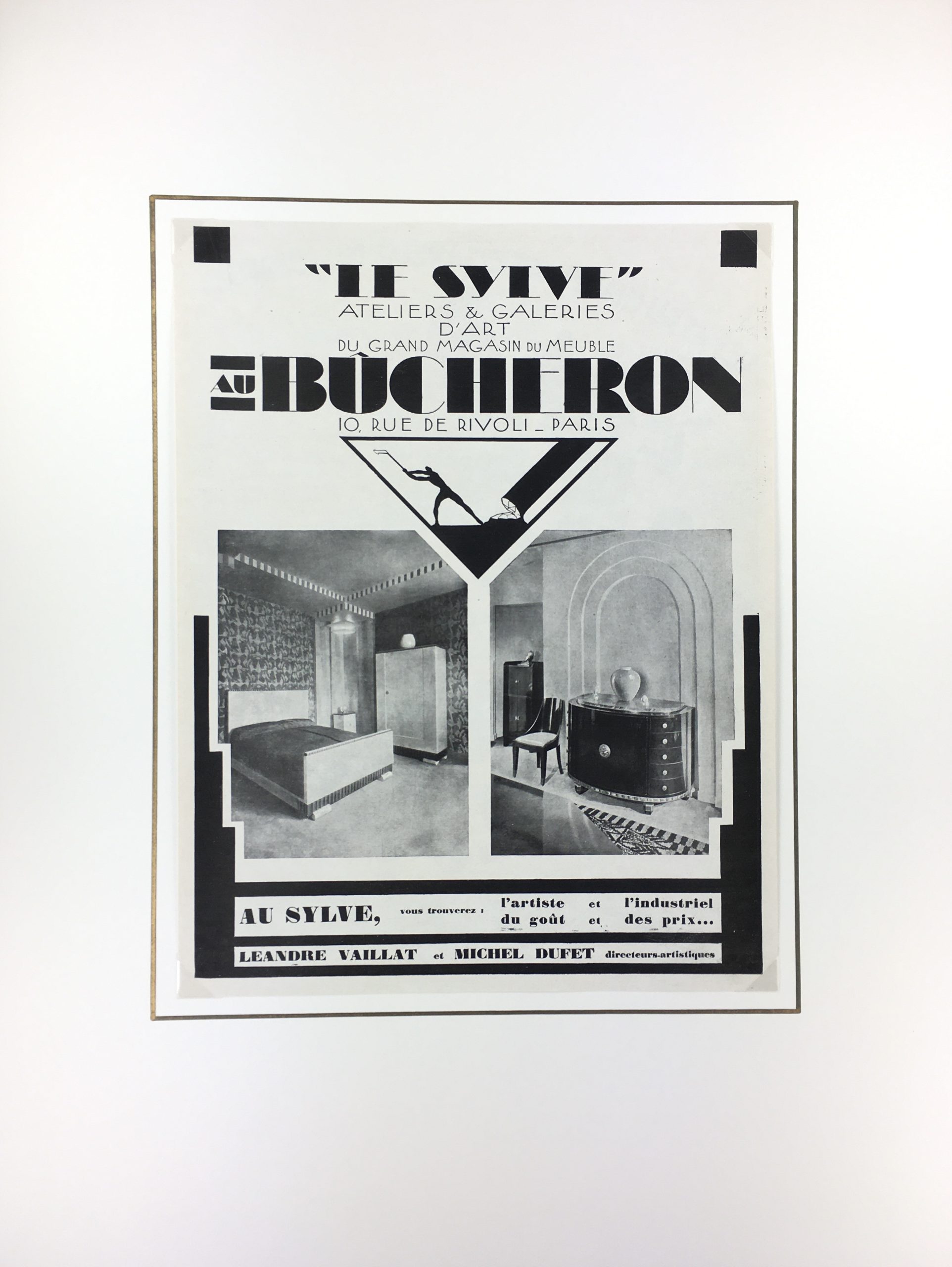 Vintage Print on paper displayed on a white mat with a gold border. Mat fits a standard-size frame. Archival plastic sleeve and Certificate of Authenticity included. Vintage Print, 11″W x 14.5″H; mat, 18″W x 24″H.